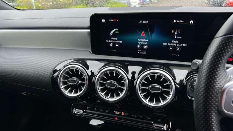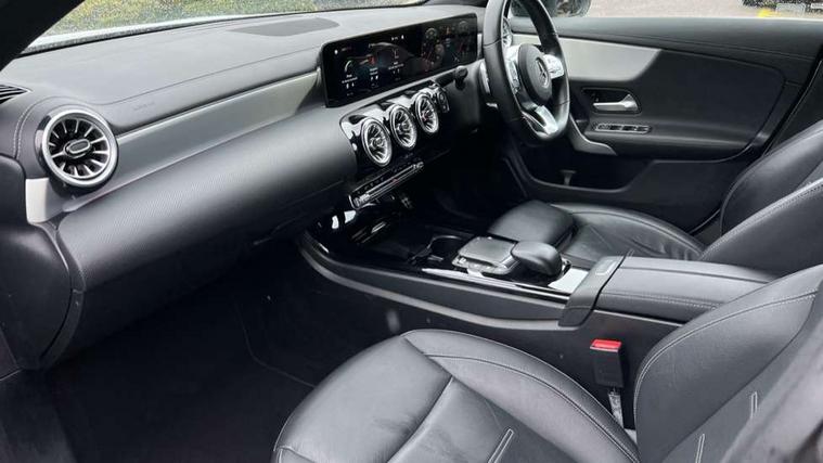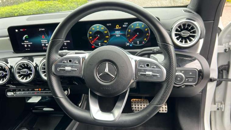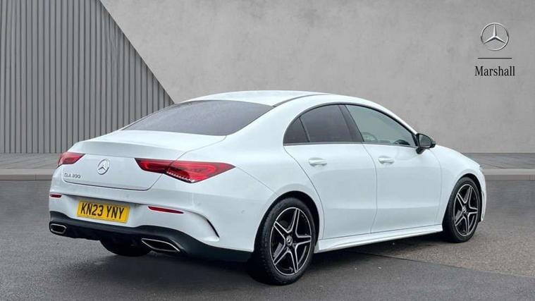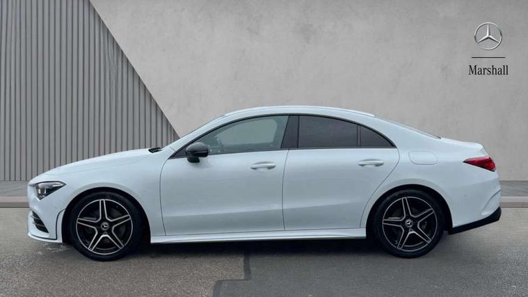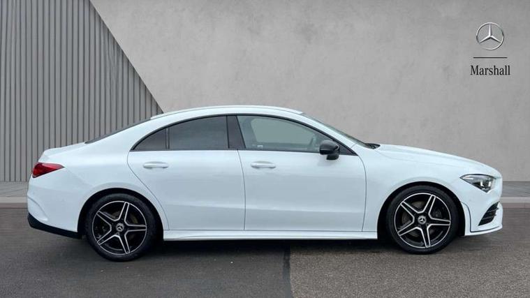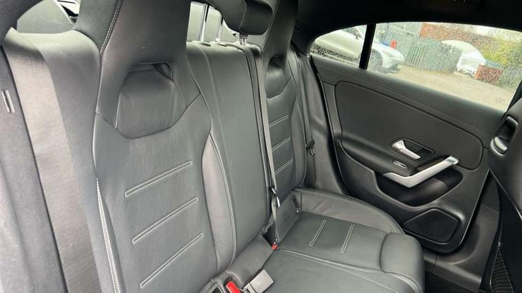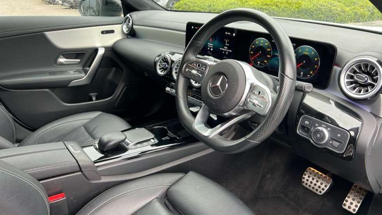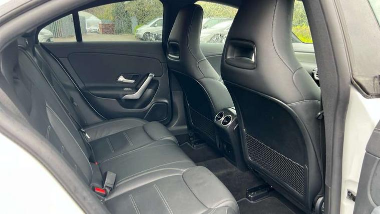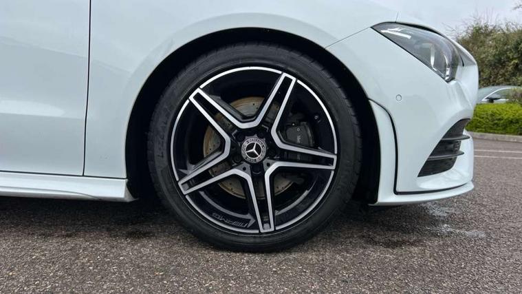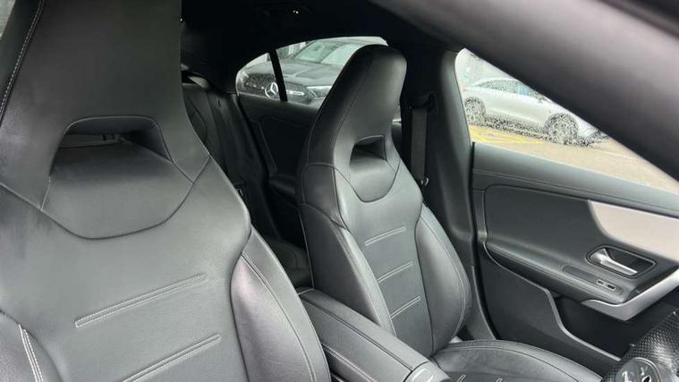 10.25 inch Instrument display with digital cockpit, 10.25 inch touchscreen central media display, Active lane keeping assist, Attention assist - Monitors steering behaviour and long journey fatigue, Bluetooth connection, Car wash mode, Cruise control with limiter, Direct steer system with speed sensitive power steering, DYNAMIC SELECT with a choice of driving modes (ECO, Comfort, Sport and Individual), ECO start/stop function, Fluid level warning indicator for fuel, oil, coolant and washer fluid, Hard-disk navigation, Hey Mercedes Voice activation, Lamp failure indicator, Mercedes me connect including emergency call system, accident recovery, breakdown and maintenance management, Mercedes me remote services, Outside temperature gauge, Owners manual and service booklet in English, Pre-installation of private car share, Preinstallation for Mercedes Benz link, Radio aerial integrated into front and rear windshields, Service indicator (ASSYST), Smartphone integration with Apple CarPlay and Android auto, Speed limit assist, Trip computer in multifunction display with current consumption indicator, Lowered comfort suspension, Rear axle multi-link, DAB digital radio tuner, MBUX multimedia system, Mercedes Benz sound system (100 W) with 6 speakers, USB (type C) ports (2) in stowage compartment and 1 in front of centre console, Adaptive brake lights, AMG body styling with AMG front apron and rear apron and visible exhaust tailpipe in chrome trim elements, AMG bodystyling side skirts, Body colour bumpers, Body colour door handles, Chrome beltline strips, Diamond radiator grille pins in chrome, Electric windows, Electrically adjustable and heated door mirrors with integrated LED indicators, Exhaust system with 2 Visible tailpipe trim elements and rear apron with trim in chrome, Headlamp assist automatic headlamp activation, Heated glass rear windscreen + timer control, High level LED third brake light, Interior mirror with black reading lamps and frameless, LED high performance headlamps with integrated LED daytime running lights, LED tail lamp, Privacy glass with dark tinting on rear side windows and rear window, Rain sensing windscreen wipers with two sensitivity settings, Rear boot, Rear fog lamp, Rear side wing doors, Variable front intermittent wipers, Window line trim strip in chrome, 3 seat bench in 2nd row, 3 spoke flattened bottom nappa leather multifunction steering wheel with perforated leather in grip area, 40:20:40 split folding rear seat backrests, Air conditioning - Two zone thermotronic luxury automatic climate control with display, Air vents with surround in silver chrome, Artico man-made leather upholstery, Automatic child seat recognition sensor, Black roof lining, Brushed stainless steel sports pedals with rubber studs, Floor mats with stitched AMG lettering, Front centre armrest with stowage, Front door sills with Mercedes Benz lettering, Galvanished gear shift paddles on steering wheel, Heated front seats, Illuminated glove compartment stowage, Interior lighting - 64 colour Ambient lighting, Luggage net on driver/front passenger seat backrest, Manually adjustable front seats, Manually height and reach adjustable steering column, Rear head restraints, Single front passenger seat, Sport seats with fixed head restraints, Stowage compartment in centre console with retractable cover, Sunvisors with illuminated vanity mirrors, Touchpad on center console, Twin front cupholders, Two outer rear seat isofix and top tether child seat fixing points, Light and sight pack - CLA, Mirror pack - CLA, Night package - CLA, Parking package - CLA, Seat comfort pack - CLA, Active bonnet pedestrain safety measure which detects an impact and raises bonnet by 65mm, Active brake assist includes forward collision warning system with autonomous braking, Adaptive brake assist with hold function and hill start assist, Anti lock braking system (ABS) with brake assist, Black seat belts, Bonnet with power domes, Brake pad wear warning indicator, Childproof locks manually operated for rear doors and electrically operated for rear power windows, Crash responsive emergency lighting, Driver and front passenger head and sidebags, Driver and front passenger windowbags, Drivers knee airbag, Dual stage driver and front passenger airbags, Electric parking brake, Electronic stability programme with acceleration skid control, ESP curve dynamic assist, Front and rear seatbelt reminder, Front passenger seat occupancy sensor, Three point rear seat belts, Tyre pressure monitoring system, Warning triangle and first aid kit, Guard 360 degree guard vehicle protection system with immobiliser and interior protection, Keyless Go starting function, Remote central locking and crash sensor with emergency opening function, Light aluminium with longitudinal grain interior trim, 18" AMG 5 twin spoke light alloy wheels painted in black with high sheen finish, Summer tyres, Tirefit tyre sealant kit,