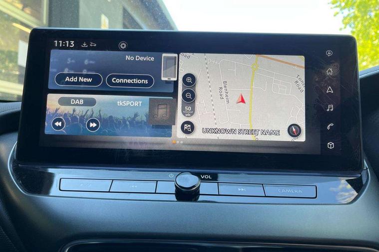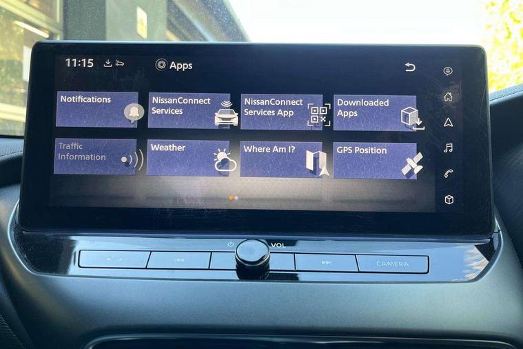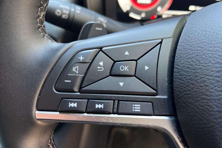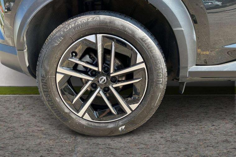 12.3" full colour TFT screen combimeter, Drive modes select (Eco, normal and sport), Emergency and breakdown call, Front parking sensor, Idle start/stop system, Intelligent driver alert system, Intelligent lane intervention, Lane departure warning system, Nissan connect 12.3" touch screen entertainment system, Nissan connect nav with TomTom traffic, Nissan connect services, Outside temperature sensor, Power Steering, Rear parking sensor, Stop/start button, Traffic sign recognition, Trip computer, Voice recognition, WiFi connectivity, Wireless Apple CarPlay and Google Android auto, Wireless Smartphone charger, 2 X Rear console USB port, 6 speakers, Bluetooth system, USB, Aux-in and 12V socket, DAB Digital radio, Auto dimming frameless rear view mirror, Automatic hazard signal with emergency stop signal, Body colour door handles, Electrically adjustable door mirrors with integrated indicators, Follow me home headlights, Front and rear electric window with one touch driver window, Heated and auto folding door mirrors, High beam assist, LED 3rd brake light, LED daytime running lights, LED headlamps, LED rear fog lamp, LED rear lamps, One touch passenger window, Rain sensor windscreen wipers, Rear privacy glass, Rear side wing doors, Rear wiper, Roof spoiler, Shark fin roof antenna in solid Black, Three blink turn signal, 3 height adjustable rear headrests, 3 seat bench in 2nd row, 60/40 split folding rear seat, Automatic climate control, Card holder on driver sunvisor, Cloth/Synthetic leather with melange fabric inserts, Driver side rear coat hanger, Driver/passenger sunvisors and vanity mirrors, Front and rear cabin lights, Front armrest, Front door pockets with bottle holders, Front head restraints, Front/rear passenger grab handles, Height adjustable driver's seat, Internal chrome door handles, Leather gearshift knob, Luggage board, Luggage space lighting, Monoform sporty seats, Multifunction steering wheel, Rear door bottle holders, Single front passenger seat, Smooth synthetic leather steering wheel, Steering wheel mounted gearshift paddles, Synthetic leather kneepad, Telescopic steering wheel adjustment, Two cupholders in front centre console, Two rear isofix child seat anchorage points with top tether, Welcome light and console tray ambient lighting, ABS with EBD and brake assist, Active ride control, Active Trace Control, Driver and passenger airbags, Driver and passenger side airbags, Electric handbrake with auto hold function, Electronic Stability Programme (ESP), Front and rear curtain airbags, Height adjustable seatbelts, Hill start assist, Intelligent emergency braking with pedestrian and cyclist recognition, Rear door child safety locks, Seatbelt reminder for driver/front passenger and rear seats, Three 3 point rear seatbelts, Traction control, Tyre pressure monitoring system, VDC Dynamic Vehicle Control, Alarm, Immobiliser, Intelligent key and start push button with walk away lock and approach unlock functions, Remote central locking, 17" Alloy wheels, Tyre puncture repair kit,