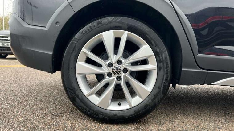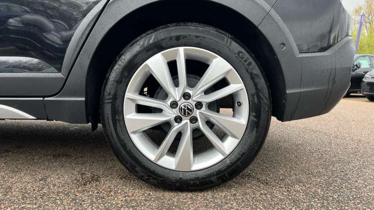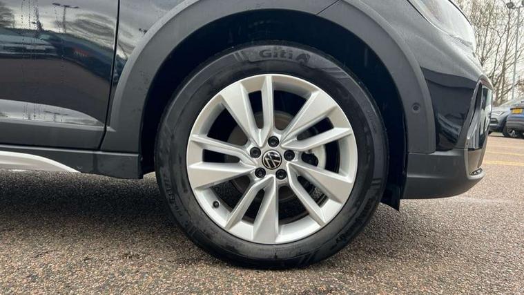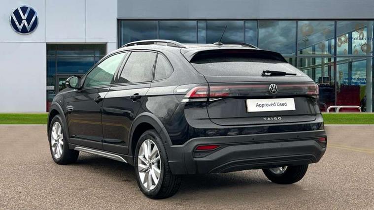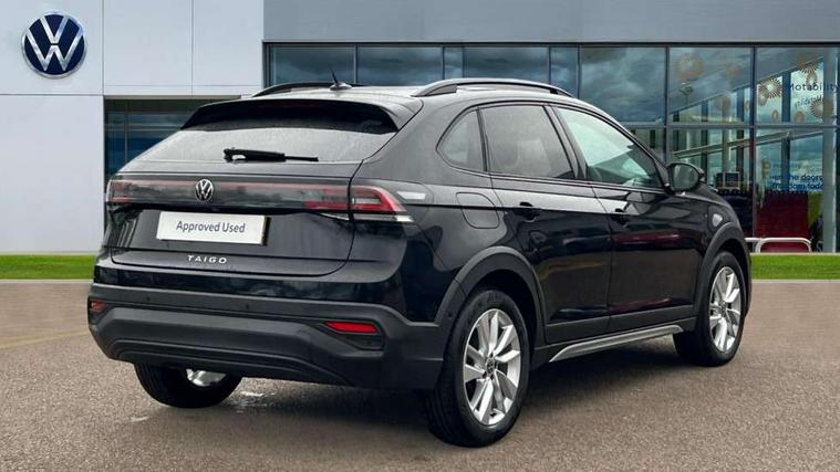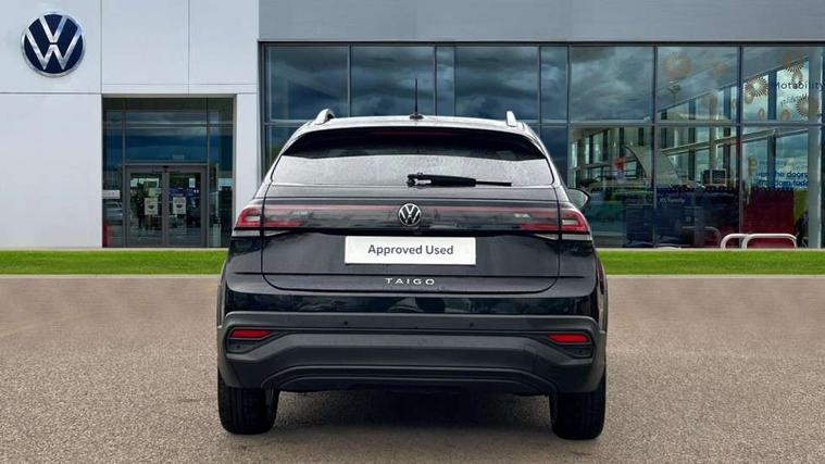 Advanced driver attention and drowsiness monitor, Dynamic road sign display, e-Call (emergency call), Power Steering, Predictive adaptive cruise control, Rear view camera, Travel assist including emergency assist, Washer fluid level indicator, Wireless Charging including Bluetooth, Start-stop system with battery regeneration (recuperation - energy recovery during braking), WeConnect plus, Ambient lighting with logo projection, Aspherical driver's exterior mirror, Body coloured bumpers, Body coloured exterior mirror housings and door handles, Electric windows, External USB type C socket and charging sockets, Heat insulating glass windscreen, LED rear combination lamp, LED third brake light, Left convex exterior mirror, Power folding adjustable/heated exterior mirrors and front passenger exterior mirror lowering function, Rear fog light on one side, reversing light on both sides, Rear side wing doors, Rear wash/wipe with intermittent wipe setting, Side windows in heat-insulating glass, from B-pillar and rear window dark tinted, 'Slash/ Austin' Cloth upholstery, 12V socket in centre console, 2 front reading lights, 3 rear head restraints, 3 seat bench in 2nd row, Black carpets, Ceramique headliner, Child seat anchor for child seat system i-Size, 2x top tether and child seat anchor in front on front passenger side, Door and side trim panels in titan black, Driver and front passenger seat height adjustment, Front centre armrest, Handbrake lever handle in leather, Height and reach adjustable steering wheel, Leather trimmed gear knob, Leather wrapped multifunction steering wheel, Luggage compartment floor, Luggage compartment light, Lumbar support for driver's and front passengers seat, Seat covers in titanium black, Single front passenger seat, Split folding backrest with centre armrest and unsplit rear seat bench, Storage compartment under front seats, Sun visors with illuminated vanity mirrors, Titanium black instrument panel, Chrome Package - Taigo, Drivers assistance package - Taigo, Light and sight pack - Taigo, 2 x 3-point seatbelts/outer rear seats with ECE label, 3-point seat belts in front with pretensioner and height adjustment, 3-point seatbelt for centre rear seat, Driver and front passenger airbag with front passenger airbag deactivation, Driver and front passenger safety-optimised head restraints, Electronic stability control, Extended and predictive pedestrian/ cyclist protection, Front and rear disc brakes, Front curtain and side airbags with center airbag, Hill start assist, Manual rear child locks, Single tone horn, Tyre pressure loss indicator, Anti-theft alarm system with interior monitoring, backup horn, and towing protection, Keyless locking and starting system keyless access with safelock, Black (slush) Dashboard, Lava stone black gloss/matt decorative inserts in dash and front door panels, Low rolling resistance tyres,