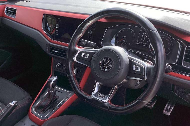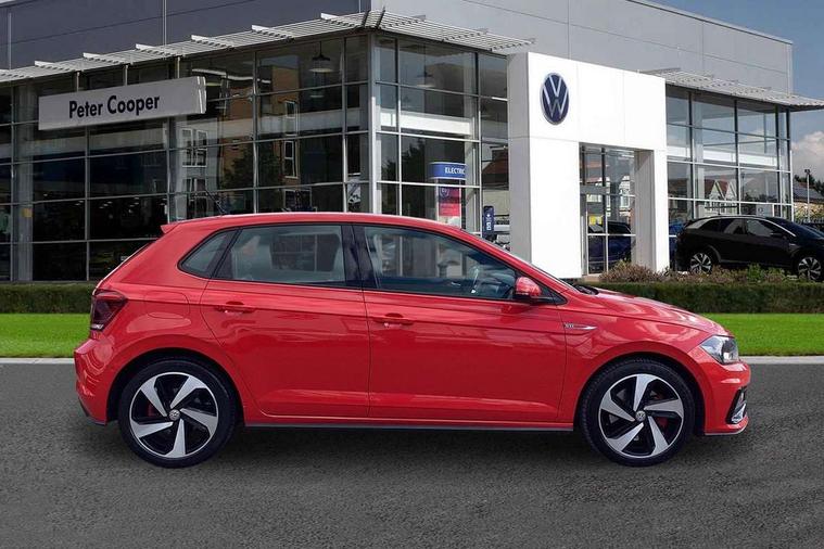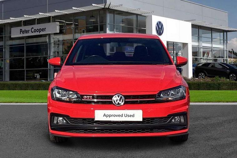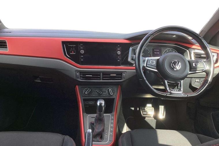 App-Connect, Digital clock, Driver alert system, Driving Mode Selection with four preset modes - Eco, normal, sport or individual modes, Lights on warning, Multifunction computer plus, Power assisted speed sensitive steering, Speedo and rev counter, electronic odometer, trip, service interval display and fuel gauge, Start/stop system, Volkswagen connect, Warning buzzer and light for front seatbelts unfastened, Battery regeneration during braking, Galvanished body, Lowered sports suspension, XDS electronic differential lock, Body colour door handles, Body coloured side sills, Electric front windows, Extended sill strips flared in black, Front fog lights including static cornering, Front windscreen washers and wipers with 4 speed intermittent delay, Gloss black rear spoiler (roof), Heat insulating tinted glass, Heated rear window with auto timer, High level 3rd brake light, Honeycomb radiator grille with red stripe, LED darkened rear light clusters, LED daytime running lights, LED rear number plate lights, Rear electric windows, Rear windscreen washer and wiper with interval delay, reverse activated, Stainless steel door sill protections with GTI logo, Twin chrome exhaust tailpipes, Unique GTI badging, 2 bag hooks in luggage compartment, 2 front cupholders and 12 V socket with cover, 3 rear head restraints, 60/40 split folding rear seat, AlumInium look pedals, Ambient lighting in front foorwell, front/rear door and dashboard light strips, Black roof lining and sun visors, Centre console storage with open storage compartment, Chrome-plated electric mirror adjustment switch surround, Chrome-plated electric window button surround, Driver and front passenger sunvisors with illuminated vanity mirrors, Dust/pollen filter, Folding rear seat backrest, Front and rear carpet mats with red stitching, Front head restraints, Front seat backrest storage pockets, Gear change selection via paddle shift on steering wheel, Gear lever gaiter in black trim surround, Glovebox, Handbrake grip button in chrome effect, Height/reach adjustable steering column, Instrument lighting, adjustable panel illumination, Interior light with delay, Isofix Preparation 2 Rear child seats, Jack and tool kit, Leather gear knob and handbrake grip, LED interior lighting - 2 reading lights front and rear with interior delay and dimming function, Luggage compartment cover, removable, Luggage compartment lighting, Luggage compartment with variable load floor, Storage compartment in front doors, Storage compartment in rear doors, Storage compartment under front seats, Three spoke leather trimmed multifunction steering wheel with GTI logo and red contrast stitching, GTI styling pack - Polo, 3 point height adj front seatbelts + pretensioners, 3x3 point rear seatbelts, ABS, Automatic post collision braking, Driver/front passenger airbag, Drivers and front passengers safety optimised head restraints, ESP with EDL + ASR, Front and rear passenger curtain airbags, Front passenger airbag deactivation, Front seat side impact airbags, Front/rear disc brakes, Hill hold control, Hydraulic Brake Assist (HBA), Red brake calipers, Single tone horn, Tyre pressure monitoring system, Alarm with interior protection and deactivation via infotainment system, Electronic engine immobiliser, Remote central locking with 2 remote folding keys, Chrome instrument surround detailing, Chrome plated air vent surround, Gloss black instrument surrounds, Steel space saver spare wheel,