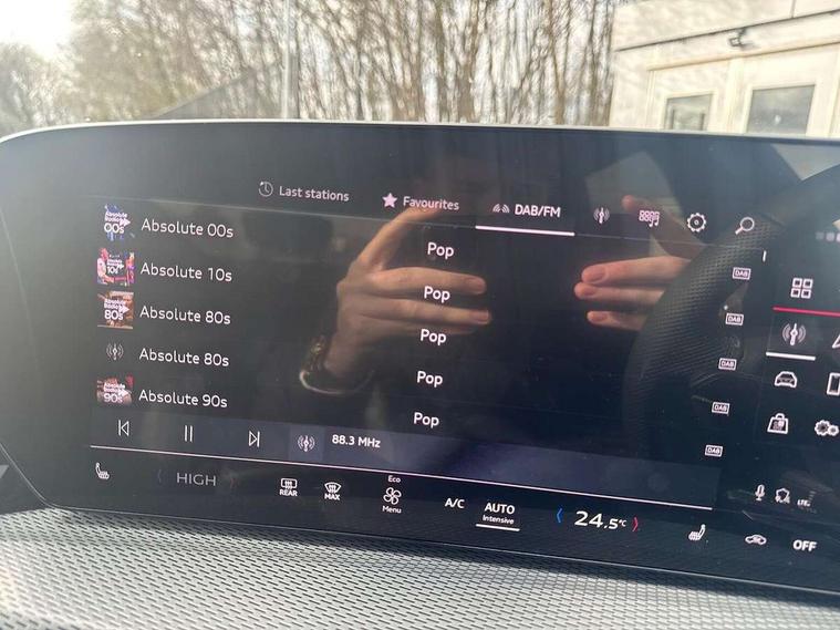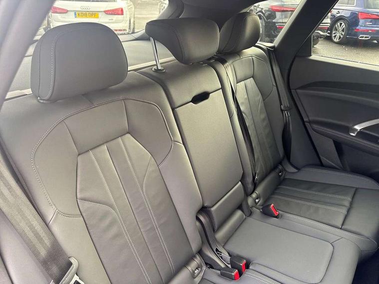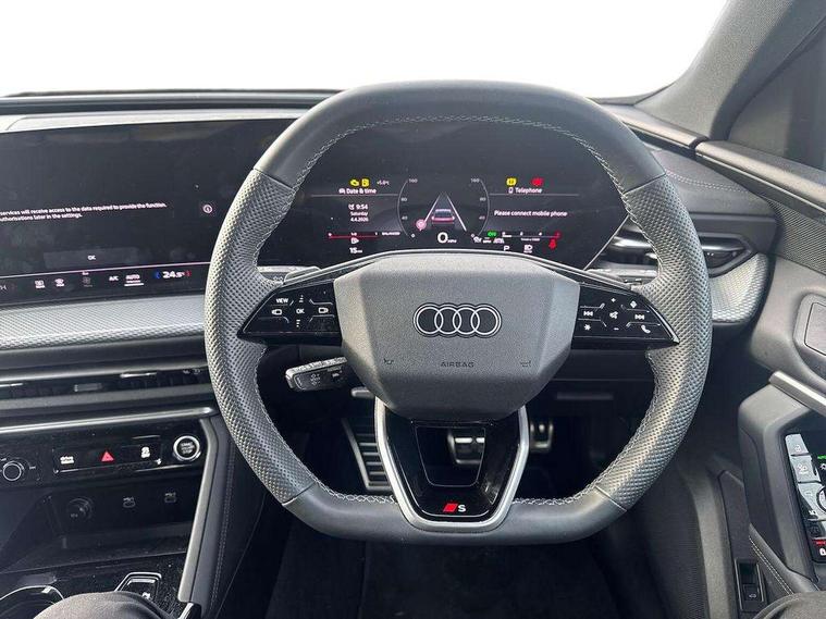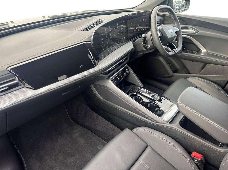 Adaptive cruise control, Advanced driver attention alert, Audi application store, Audi connect emergency call and service, Audi drive select, Audi smartphone interface, Audi virtual cockpit plus with 11.9" OLED colour display, Camera based traffic sign recognition, Fatigue monitor, Front cross traffic intersection assist, Lane departure warning system, MMI navigation plus with high resolution 14.5" OLED touchscreen colour display, Park assist plus, Parking system plus with 360 display, PAS, Reversing camera, Traffic sign based speed limiter, 2 USB-C ports in both the front and rear, Audi sound system impressive sound with 8 loudspeakers including centre speaker and subwoofer, 6-channel amplifier with a total output of 180 watts, DAB Digital radio, Smartphone compartment with wireless charging, Aluminium roof rails, Auto dimming rear view mirror, Body coloured door mirrors, Coming/leaving home lighting function, Electrically adjustable heated and folding + automatically dimming exterior mirrors, Front and rear electric windows, Front door sill trims with aluminium inlays, illuminated with 'S' logo, Grill frame, inlay and front air inlets in matt anthracite chrome, Headlight cleaning system, Heated rear window, High beam assist, High gloss window surrounds, LED headlights plus incl. digital DRL, dynamic coming and leaving home function with turning/all weather/motorway/manouevring and intersection lights, LED rear lights pro incl. dynamic rear indicators and illuminated light strip with animated coming and leaving home function, Logo projection light in exterior mirrors, Privacy glass, Projection third brake light for rear window in LED, Radiator grille in phantom black, Rear and side windows with heat insulating glass, Rear honeycombe grille in matt black with inlay in matt anthracite chrome, Rear side wing doors, Rear wash/wipe, S Line badge on the front wings, S line bumpers in contrasting Volcano grey metallic paint finish, Towbar preparation, Windscreen with acoustic glazing, 3 rear head restraints, 3 seat bench in 2nd row, 3 spoke leather steering wheel with multi-function buttons with touch control, flattened on top and bottom, with S badging and contrast stitching, Comfort centre armrest front, Deluxe 3 zone electronic climate control, Front and rear floor mats, Front sport seats with integrated head restraints, Headlining in black cloth, Heated front seats, i-Size child seat mounting on the front passenger side and outer rear seats, i-Size and top tether on the outer rear seats, Interior trim in aluminium look, Luggage compartment lid, electrically opening and closing, Manual steering column adjustment, S embossed logo on front sport seats, Single front passenger seat, Softwrap in leatherette, Stainless steel pedals and footrest, Steering wheel grips in perforated leather and shift paddles, Ambient lighting package plus - Q5, 3x3 point rear seatbelts, ABS, Acoustic vehicle alerting system, Convenience key with safelock, Driver and front passenger airbag with passenger airbag deactivation, Electric child safety locks, First aid kit with warning triangle and high visibility vests, Front emergency brake assist, Front side airbags with head airbag system and front interaction airbag, Hill hold assist, Rear seat occupant reminder, Tyre pressure loss indicator, Anti theft alarm, Anti-theft wheel bolts, Accent surfaces and control buttons in gloss black, Anthracite matt brushed aluminium inlays with linear embossing, Black dashboard with contrast stitching, Upper and lower interior elements in artificial leather, Tyre repair kit,