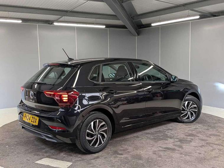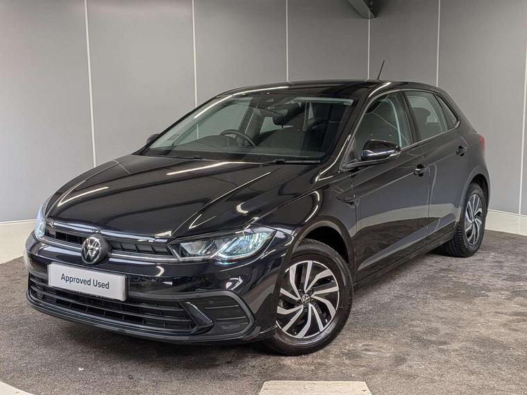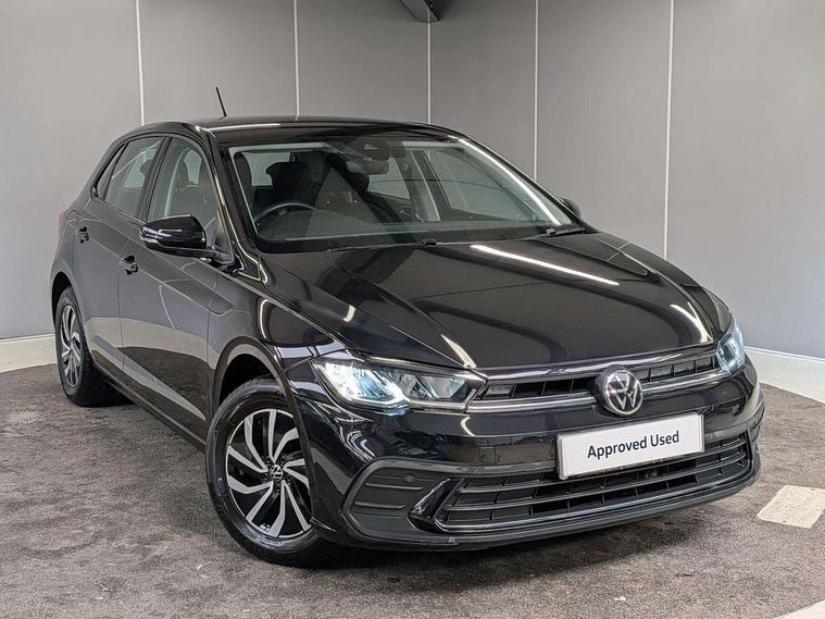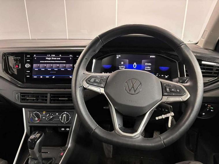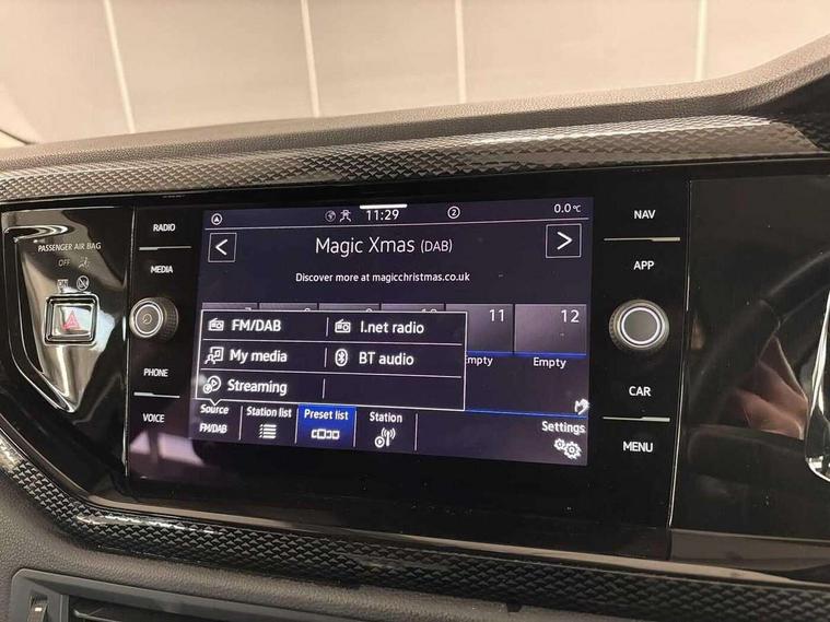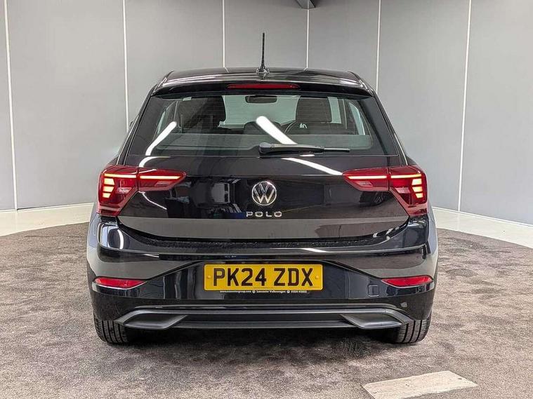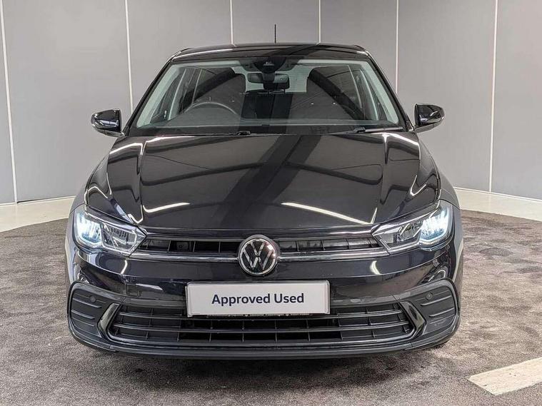 Adaptive cruise control without follow-to-stop and speed limiter, Advanced driver attention and drowsiness monitor, Bluetooth mobile phone interface, Dynamic road sign display, Emergency call service, Power assisted speed sensitive steering, Preparation for navigation system with media and internet package, Preparation for We connect and We connect plus, Speedo and rev counter, electronic odometer, trip, service interval display and exterior temperature gauge, Standard rear axle, Travel Assist - Lane keeping system and traffic jam assist, Travel assist including emergency assist, Trip computer, Warning signal and warning light for front and rear seatbelts not fastened, Washer fluid level indicator, Wireless app connect, Front wheel drive, Rear shock absorpion, Start-stop system with battery regeneration (recuperation - energy recovery during braking), DAB Digital radio, Diversity antenna for FM reception, Front and rear 6 speakers, Automatic dimming interior rear view mirror, Automatic headlight control with LED separate daytime running lights with coming/leaving home function, Body colour bumpers with chrome inserts, Body colour door handles, Body colour door mirrors, Electric front windows, Engine badge deletion, Headlight range adjustment, Heat insulating and laminated safety glass windshield, Heat insulating darkened glass in side and rear windows, Heat insulating glass windscreen, LED Headlights, LED rear combination lamps, Power folding adjustable/heated exterior mirrors and front passenger exterior mirror lowering function, Rain sensor, Rear electric windows, Rear fog light, Rear side wing doors, Rear windscreen washer and wiper with interval delay, Third brake light, 12V power socket in centre console, 2 front and 2 rear reading lights with switch off delay and dimmer, 2 USB-C ports in the front, 2 USB-C charging sockets on the center console in the rear, 3 rear head restraints, 60/40 split folding rear seat and rear seat bench not split, Ceramique roof lining, Chrome plated radiator grille inserts, air vent surrounds and light switch surrounds, Door and side trim panel, Driver and front passenger seat height adjustment, Driver/passenger sunvisors with illuminated vanity mirrors, Front centre armrest, Front seat backrest storage pockets, Front standard seats, Handbrake lever handle in leather, Hartley/Thomas cloth upholstery, Headliner in recycled material, Isofix child seat preparation easy-fit (for two outer rear seats, and front passenger seat) compatible with I-size, Leather trimmed gear knob, Luggage compartment cover, Luggage compartment lighting, Removable luggage compartment floor, Single front passenger seat, Standard climatic zones, Standard pedal cluster, Three spoke leather wrapped multifunction steering wheel, Light and vision pack - Polo, 3 point height adj front seatbelts + pretensioners, 3x3 point rear seatbelts, ABS, Driver and front passenger airbag with front passenger airbag deactivation, Drivers and front passengers safety optimised head restraints, ESC (Electronic stability control) + EDL (Electronic Differntial lock) and ASR (Traction control), Extended and predictive pedestrian/ cyclist protection, Front assist with autonomous emergency braking (for Adaptive Cruise Control ACC up to 130 mph), Front curtain and side airbags with center airbag, Front disc brakes, Hill hold control, Manual child lock in rear doors, Rear drum brakes, Single tone horn, Tyre pressure loss indicator, Alarm with interior protection, Anti-theft alarm system with interior monitoring, backup horn, and towing protection, Anti-theft wheel bolts, Electronic engine immobiliser, Lava stone black gloss/matt decorative inserts in dash and front door panels, Low rolling resistance tyres,