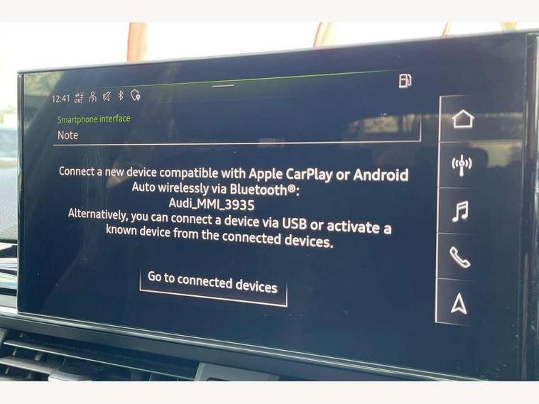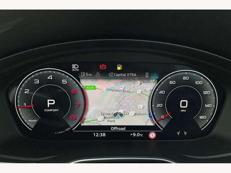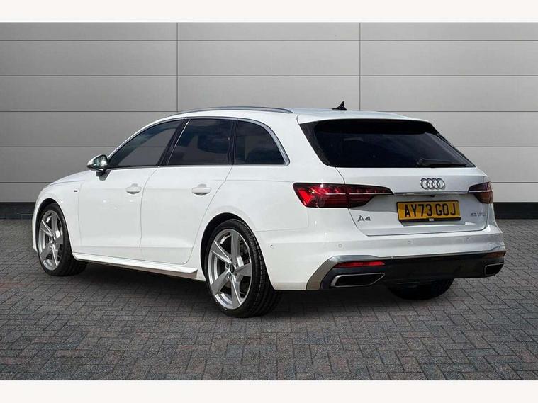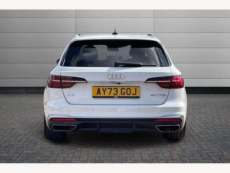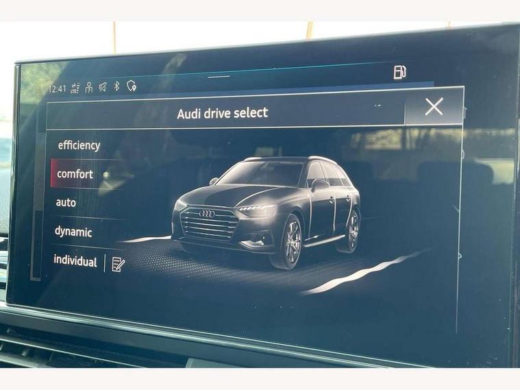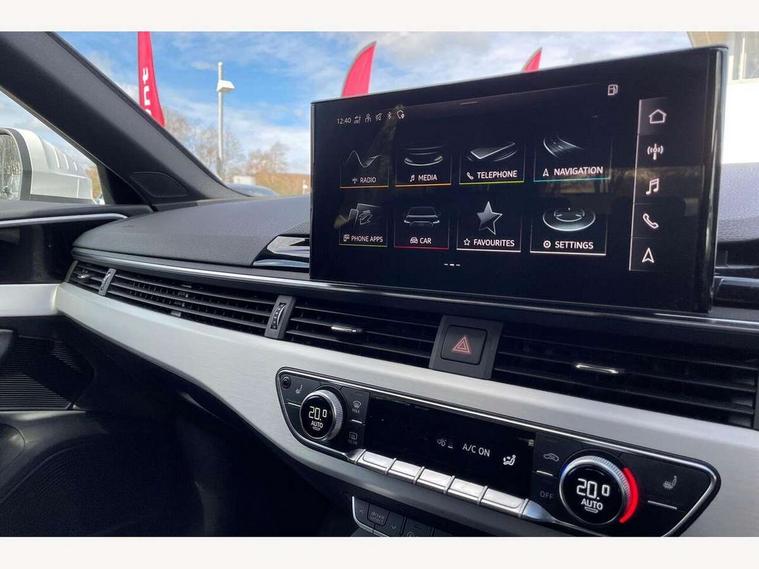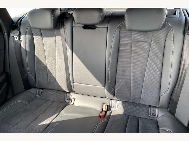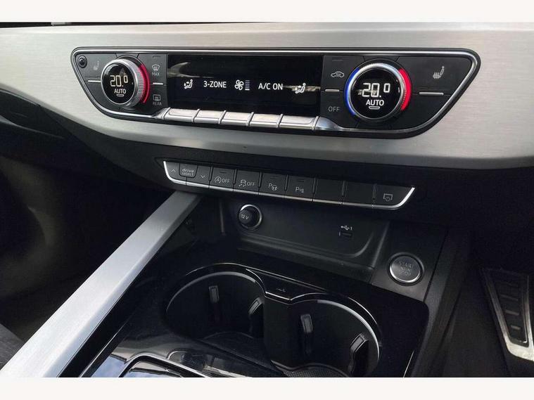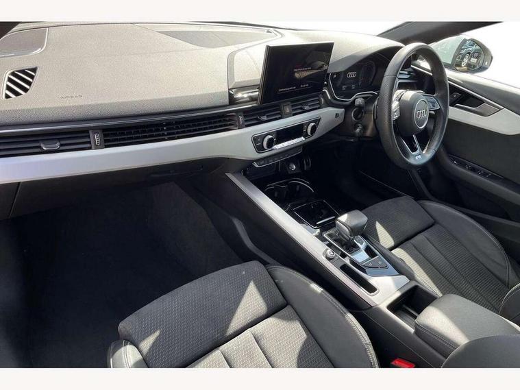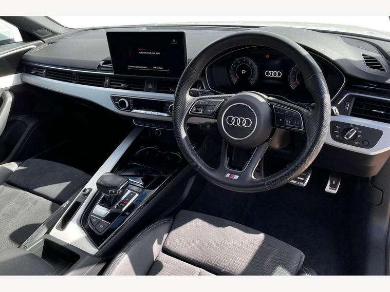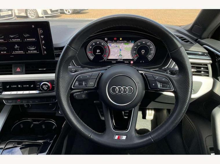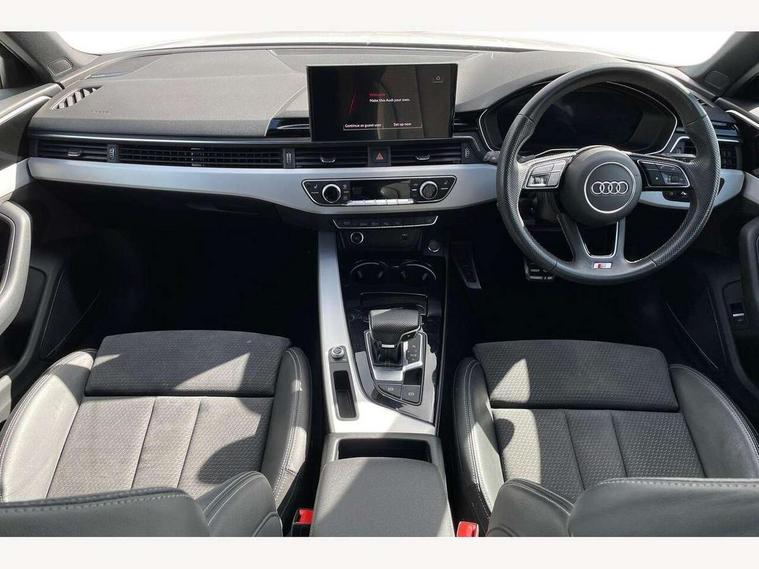Audi connect safety and service (e-call), Audi drive select, Audi smartphone interface, Audi virtual cockpit, Automatic start-stop system with coasting functionality and efficiency programme, Bluetooth interface, Camera based traffic sign recognition, Electromechanical power steering, Email, calendar and text messages displayed via MMI, Front and rear parking sensors, Lane departure warning, MMI Navigation plus with MMI touch includes 10.1" high resolution colour MMI display, 3D map, Power operated tailgate, Rear view camera, Voice control system, 54 litre fuel tank, Sports suspension lowered by 23mm, 2 USB charging ports, 8 passive loudspeakers, DAB digital radio reception, Aluminium roof rails, Auto dimming rear view mirror, Body colour door handles, Body colour front spoiler lip, Body colour side sill trim, Body coloured door mirrors, Electric adjustable/heated/folding door mirrors with auto dimming, Grained matt black side air inlets with matt aluminium silver inlay, High beam assistant, Honeycomb structure radiator grille in grained matt black, LED headlights with LED rear lights + dynamic rear indicators + headlight adjustment and high beam, turning light + LED daytime running lights, LED third brake light, Matt aluminium silver tailpipe trim, Privacy glass, Rain and light sensors, Rear side wing doors, Rear wiper, S Line badges on the front wings, S line front and rear bumpers with side skirts, S Line rear diffuser in matt anthracite black with trim strip in matt aluminium silver, S Line roof edge spoiler, Variable intermittent front wash/wipe, Windscreen with acoustic glazing, 3 spoke high multi-function sports leather steering wheel grips in perforated leather with S badging including paddle shift, 4 way electric lumbar support for driver and front passenger, 40/20/40 split folding 3 rear seat bench in 3 parts with rear centre armrest, Black carpets, Black cloth headlining, Black perforated leather gearknob, Contrast stitching on seats, steering wheel and gear lever gaiter, Deluxe 3 zone electronic climate control, Electric load area cover, Front and rear head restraints, Front centre armrest, Heated front seats, Illuminated door sill trims with S logo, ISOFIX child seat mounting and top tether, Manual seat adjustment, Single front passenger seat, Stainless steel pedals and foot rest, High gloss package - A4, LED Interior light pack - A4/S4, 3 rear seatbelts, 6 airbags - Driver, front passenger, curtain and side windows, Attention and drowsiness assist, Electronic Stabilisation Control (ESC) including ABS, ASR and EDL, Hill hold assist, Multi collision brake assist, Pop-up bonnet for pedestrian protection, Pre sense city, Rear door child safety locks, Seatbelt monitoring, Warning triangle and first aid kit, Anti theft alarm, Anti theft wheel bolts, Central locking, Keyless Go, Matt brushed aluminium inlays, Tool kit, Tyre repair kit,