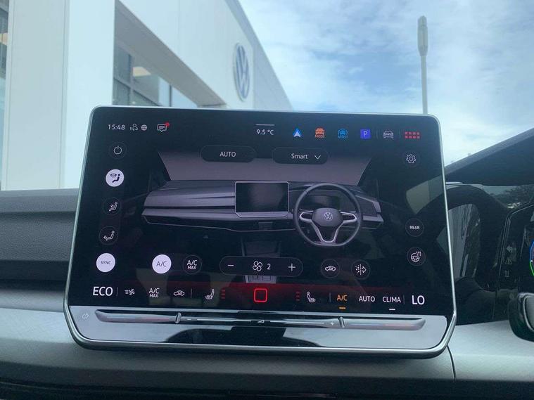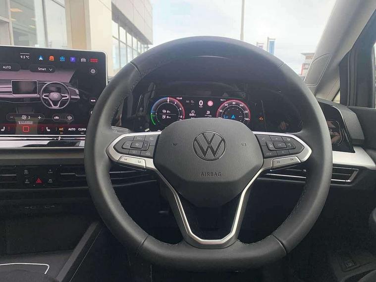 Activated carbon canister, Adaptive cruise control (ACC), Advanced driver attention and drowsiness monitor, Dynamic road sign display, E-Sim card for online connectivity, eCall emergency call system, Multi-color Digital cockpit pro, selection of different info profile possible, Multifunction front facing camera for distance control, Navigation system, Oncoming vehicle braking when turning including swerve support, Speed limiter, Speedo, rev counter, electronic odometer, trip, service interval display, exterior temperature and fuel gauge, Traffic jam assist, Voice enhancer and voice control, Warning signal and warning light for front and rear seatbelts not fastened, We connect plus preparation, We connect preparation, Wireless app connect, Charging cable Mode 2 Type 2 (10A), Charging cable mode 3, type 2 32 A, Electric motor (hybrid electric vehicle) total system output 200kw, unit OEK A, Hybrid propulsion system, Petrol Particulate Filter, Start-stop system with battery regeneration (recuperation - energy recovery during braking), XDS electronic differential lock for improved traction and handling, 2 USB C ports in front, 2 USB charging sockets on the centre console in the rear charging capacity upto 45W, 6 Speakers - 4 in front and 2 in rear with central speaker, Digital radio reception (DAB), Diversity antenna for FM reception, Gaming platform via car app, Infotainment system with 12.9" display, Mobile phone interface with inductive charging feature, 3rd brake light, Automatic headlamp activation with Coming home and Leaving home feature, Body colour door handles, Body colour door mirrors, Exterior mirrors convex on the left and aspherical on the right, Front and rear electric windows, Heat insulating windshield made of laminated glass, LED separate daytime running light, Rear exhaust tailpipe, Rear fog light on one side and reversing lights on both sides, Rear side wing doors, Rear tinted glass 65% light absorbing from B pillar backwards, Rear windscreen washer and wiper with interval delay, Remote electrically foldable door mirrors, puddle lights and reverse activated passenger's door mirror, Standard bumpers, Welcome light with surround lighting, 12V socket in front centre console, 12V socket in luggage compartment, 3 rear head restraints, 3 seat bench in 2nd row, Air care climatronic 3 Zone automatic climate control with rear air conditioning control panel, Chrome plated radiator grille inserts, air vent surrounds and light switch surrounds, Front + rear black carpet mats, Front centre armrest, Front head restraints, Front seat lumbar support adjuster, ISOFIX anchors for child seats on outer rear bench seats and on front passanger seat compatible for i-Size, Luggage compartment lighting, Manual height adjustable front passenger seat, Manually height adjustable driver seat, Plastic gear knob, Rear cupholder and loadthough, Single front passenger seat, Soul black instrument panel, Split folding backrest with centre armrest and unsplit rear seat bench, Standard pedal cluster, Storm grey roof lining, Sun visors with illuminated vanity mirrors, Technology park and comfort pro package - Golf Hatchback, 3 point height adj front seatbelts + pretensioners, 3 rear three point seatbelts, ABS, Autonomous emergency braking front assist with pedestrian and cyclist monitoring, Child locks on rear doors, Driver and front passenger airbag with front passenger airbag deactivation, Electronic parking brake with auto hold, ESC (Electronic Stability Control), Extended pedestrian protection measures, Hill start assist, Rear disc brakes, Two tone horn, Tyre pressure loss indicator, Volkswagen roadside assistance, Anti theft wheel bolts, Preparation for alcohol interlock, Nature cross brushed decorative inserts for dashboard and front door panels, Tool kit for tyre mobility set, Tyre mobility kit Includes 12V compressor and tyre sealant,