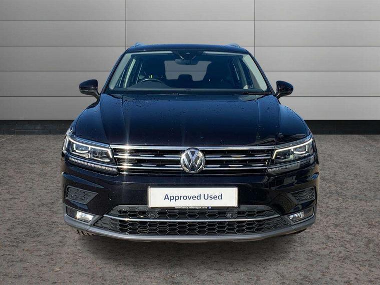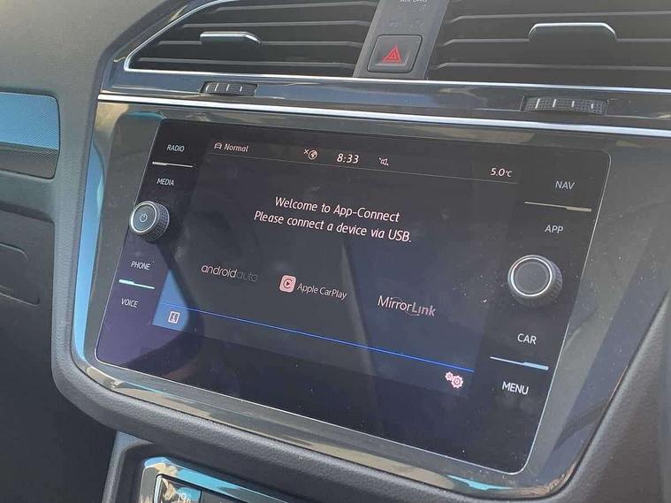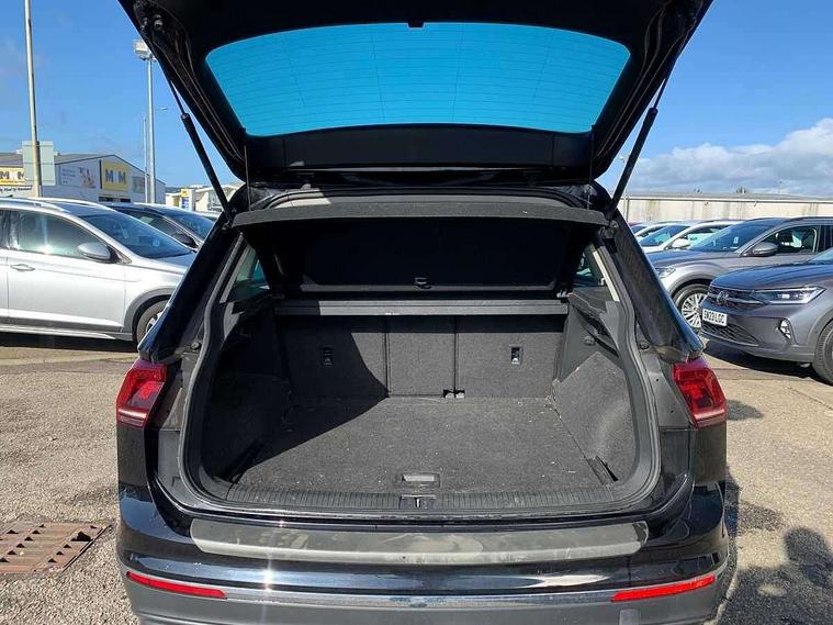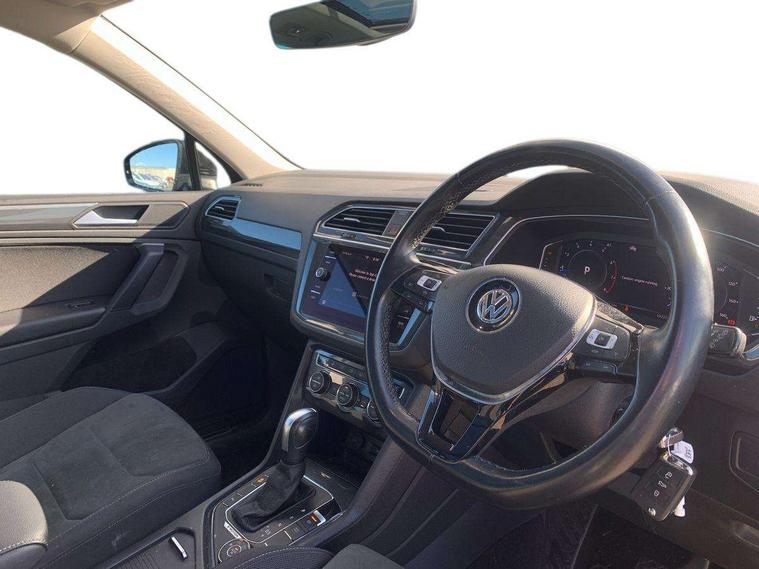 2D/3D map view, Active information display, Adaptive cruise control, App-Connect, Bluetooth phone integration system, Car information display, Coasting function, Distance control assist, Drive mode selector, Driver profile selection, Front assist, radar sensor controlled distance monitor, city emergency braking + predictive pedestrian protection, Instrument cluster, Lane assist, Lights on warning, Multifunction computer with visual gear change recommendation for fuel consumption, Outside temperature display, Service interval indicator, Speed limiter, Start/Stop function, Warning sound and light for doors and tailgate open, Battery regeneration during braking, XDS electronic differential lock for improved traction and handling, 2 x USB connection + USB charging socket, 4 X 20 watt output, DAB Digital radio, SD card slot, Simultaneous pairing of 2 compatible mobile devices, SMS functionality - read, compose and send SMS messages using touch-screen display, Title and cover art display, 3D effect cherry red LED rear tail lights, Auto dimming interior mirror, Automatic activation of hazard warning lights, Black grained lower door protectors with chrome inserts, Body colour door handles, Body colour door mirrors, Body coloured bumpers, Chrome side window surrounds, Chrome trimmed radiator grille, Coming/leaving home lighting function, Dusk sensor + auto driving lights, Electric panoramic sunroof with sunblind, Electrically heated and foldable door mirrors, door mirror puddle lights and reverse activated kerb view adjustment on passenger's door mirror, Front and rear electric windows, Heated rear window, High level 3rd brake light, LED headlights with dynamic light assist daytime running lights and cornering front fog lights, LED rear number plate lights, Piano black front air intake and rear diffuser, Rain sensor windscreen wipers, Rear tinted glass from B-pillar backwards approx 65% tinted, Rear windscreen washer and wiper with interval delay, Side door sills with chrome inserts, Silver front underbody protection and rear diffuser, Silver roof rails, Windscreen wipers/ intermittent wipe + 4 position delay, 12V socket in centre console storage area, 2 cup holders in front, 3 rear headrests, 3 zone climate control, 4 load lashing points, 40:20:40 split folding rear seats, Bag hook in luggage compartment, Foldable front passenger seat backrest, Front + rear carpet mats, Front centre armrest with 12v socket, Front centre armrest with storage + rear 2 air vents, Front seat back storage pockets, Front seatback folding tables, Height/reach adjust steering wheel, Illuminated driver/passenger vanity mirrors, Illuminated scuff plates, Instrument lighting white adjustable panel illumination, Interior light with delay, Isofix Preparation 2 Rear child seats, Leather gear knob, Load through provision with 2 cupholders when folded, Lockable cooled glovebox, Luggage compartment lighting, Map pockets on front seats, Passenger seat height adjuster, Removable luggage cover, Sliding/reclining rear seats, Storage compartment in driver's door, Storage compartment in passenger's door, Storage compartment in rear doors, Storage compartments in luggage area left and right, Storage tray on dashboard, Sunglasses storage, Variable boot floor, height adjustable and removable, Ambient lighting pack - Tiguan, 3 rear 3 point seatbelts, ABS+EBD+Brake assist, Active bonnet, Active pedestrian safety system, Curtain airbags, Driver/Front Passenger airbags, Driver/Passenger whiplash optimised head restraints, Drivers knee airbag, DTC - Drag torque control, Electronic parking brake with auto hold, ESC with EDL, ASR, EDTC and trailer stabilisation function, First aid kit, Front seat side impact airbags, Front side airbags, Front ventilated disc brakes and rear disc brakes, Head airbag system, Height adjustable front 3 point seatbelts + pretensioners, Hill hold control, Passenger airbag deactivate switch, Passenger knee airbag, Pre crash preventive occupant protection, Rear side airbags, Rigid safety cell with front and rear crumple zones, Two tone horn, Warning sound and light for front seat belts if unfastened, Warning triangle, Alarm with interior protection, Electronic engine immobiliser, Remote central locking with 2 remote folding keys, Chrome door trim inserts, Dark grey decorative inserts in dash and door panel, Piano black decorative inserts in centre console,