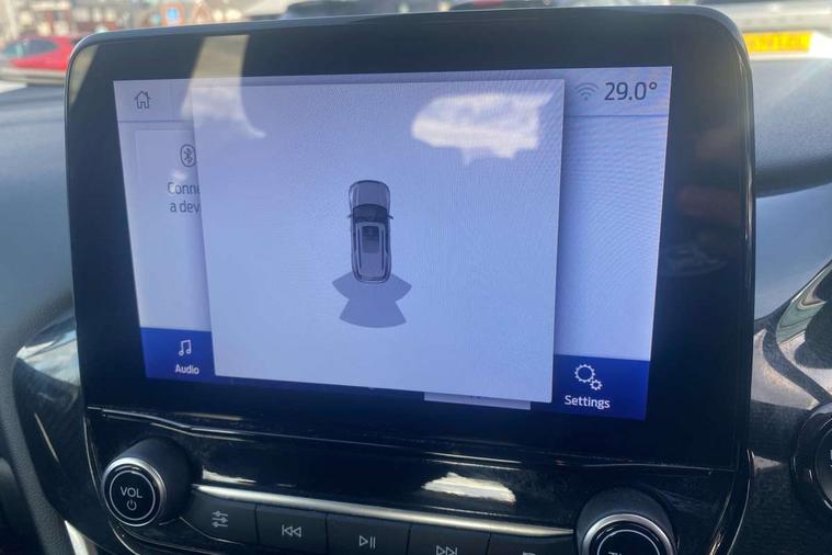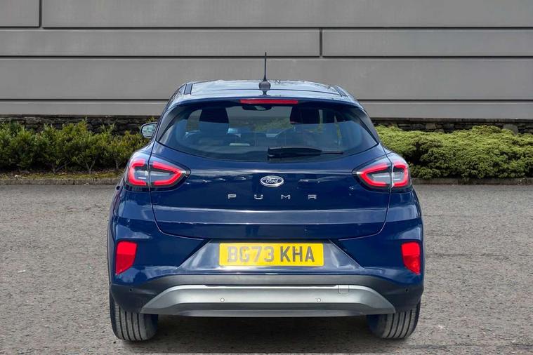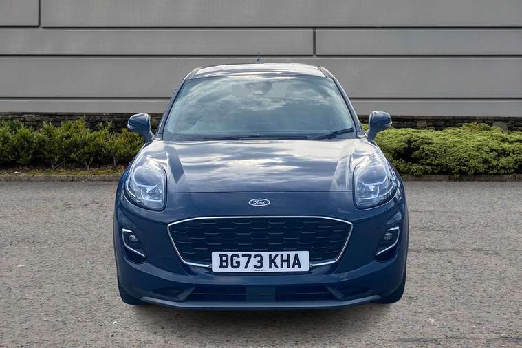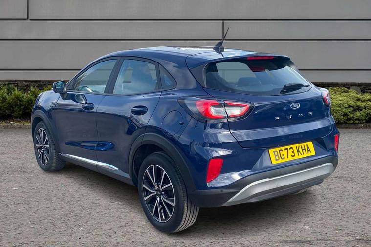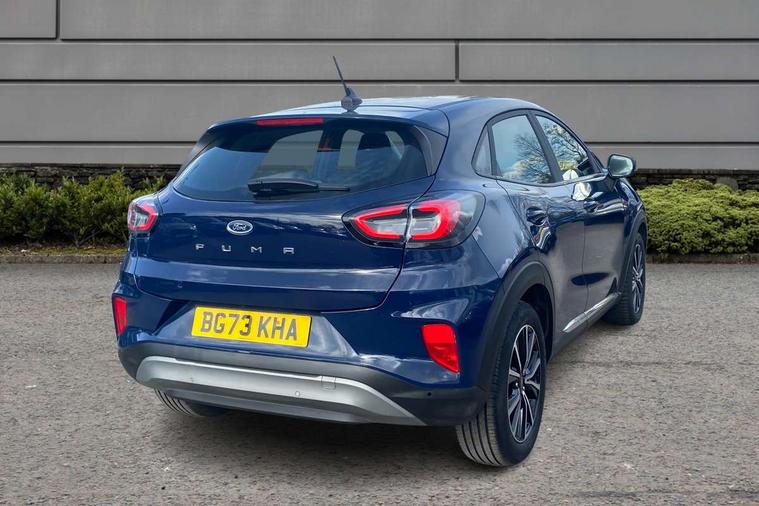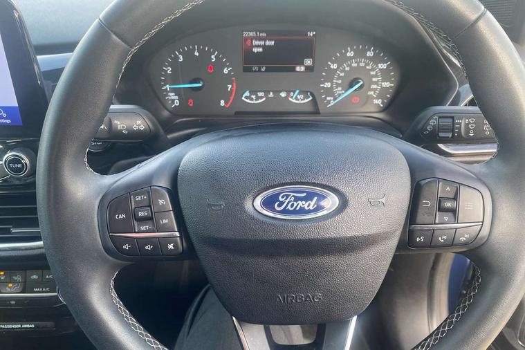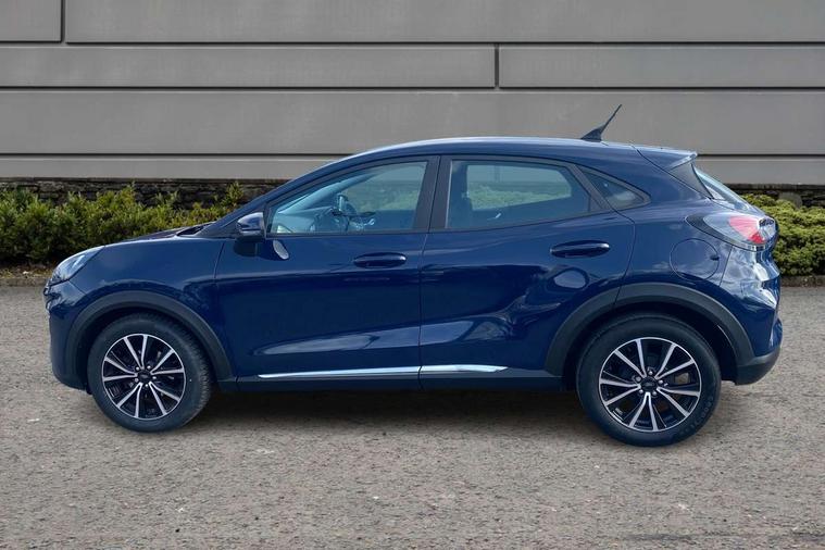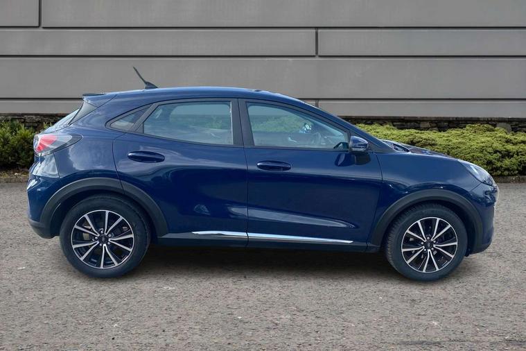 Driver impairment monitor, Emergency call service, Ford easy fuel, Lane keeping aid with lane departure warning, Power assist steering, Power start button, Rear parking sensor, Selectable drive modes(Normal, Eco, Sport, Slippery and Trail), Speed sign recognition, Standard suspension, Automatic headlights with auto high beam, Automatic rain sensing wipers, Body colour rear spoiler, LED rear lamps, Power foldable heated door mirrors with puddle lamps, Projector headlamps with LED day time running lights and front fog lamps, Quickclear heated windscreen, Rear side wing doors, Rear wiper, Third brake light, 3 seat bench in 2nd row, Centre console with armrest and stowage, Electronic automatic temperature control (EATC), Ford megabox extended bootspace, Front and rear head restraints, Front floor mats, Manual 2 way passenger seat adjustment, Manual 4 way driver seat adjust with lumbar adjustment, Sensico leather steering wheel/gear knob/handbrake, Single front passenger seat, Titanium cloth upholstery, Ford SYNC 3 navigation pack - Puma, 3 rear seatbelts, Child safety lock, Electronic stability control (ESC) and hill start assist, Pedestrian/cyclist detection & post-collision braking, Pre collision assist system, Tyre pressure monitoring system (TPMS), Thatcham alarm, 17" 10 spoke absolute black machined finish alloy wheel,