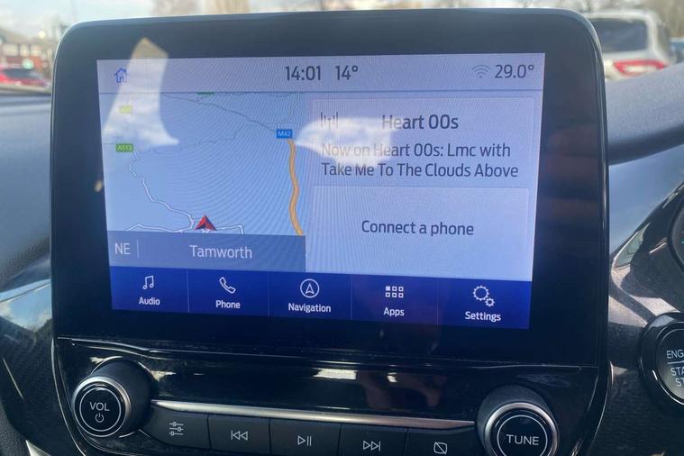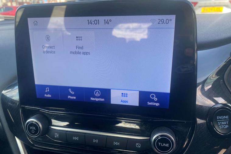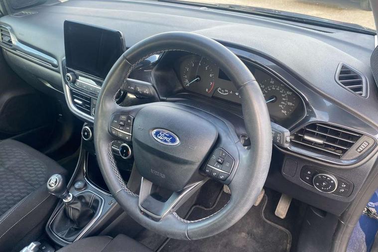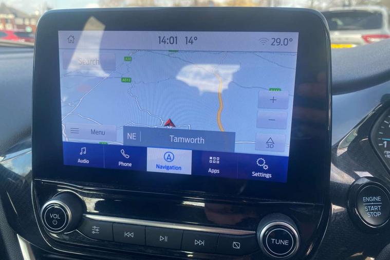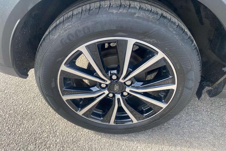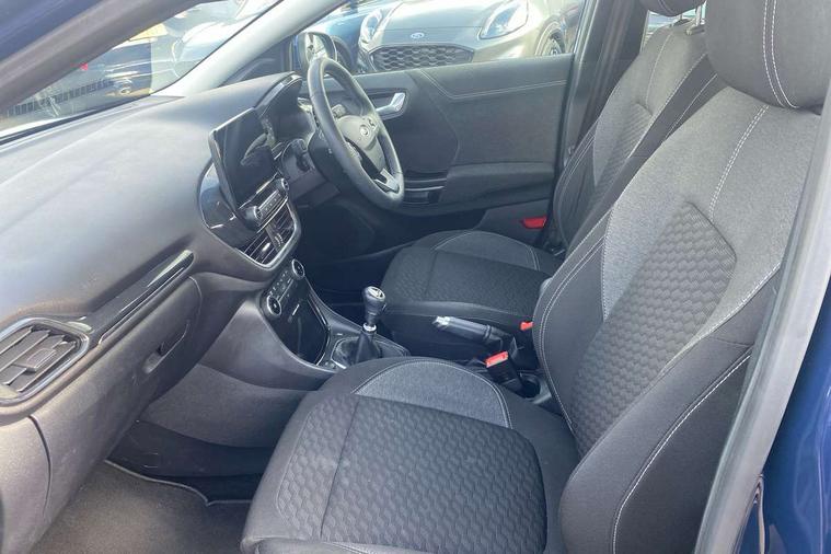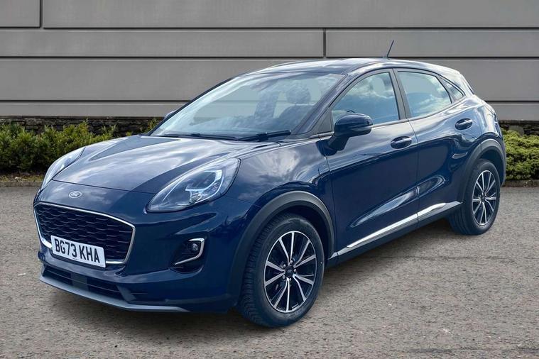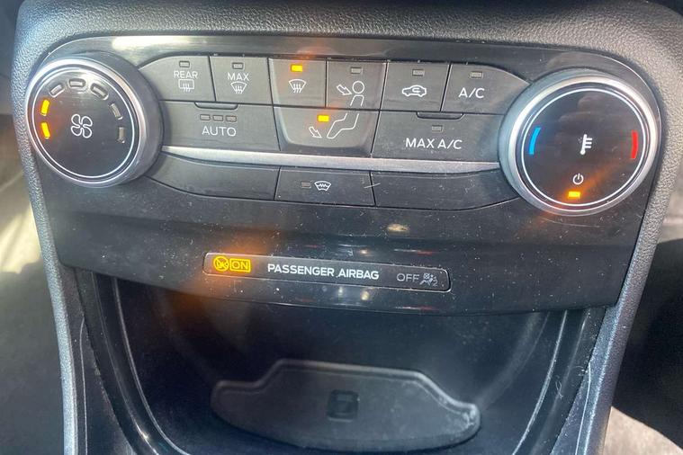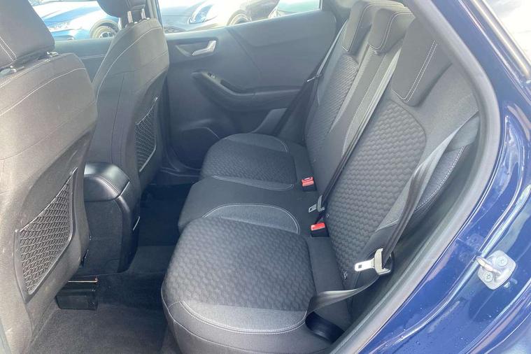 Driver impairment monitor, Emergency call service, Ford easy fuel, Lane keeping aid with lane departure warning, Power assist steering, Power start button, Rear parking sensor, Selectable drive modes(Normal, Eco, Sport, Slippery and Trail), Speed sign recognition, Standard suspension, Automatic headlights with auto high beam, Automatic rain sensing wipers, Body colour rear spoiler, LED rear lamps, Power foldable heated door mirrors with puddle lamps, Projector headlamps with LED day time running lights and front fog lamps, Quickclear heated windscreen, Rear side wing doors, Rear wiper, Third brake light, 3 seat bench in 2nd row, Centre console with armrest and stowage, Electronic automatic temperature control (EATC), Ford megabox extended bootspace, Front and rear head restraints, Front floor mats, Manual 2 way passenger seat adjustment, Manual 4 way driver seat adjust with lumbar adjustment, Sensico leather steering wheel/gear knob/handbrake, Single front passenger seat, Titanium cloth upholstery, Ford SYNC 3 navigation pack - Puma, 3 rear seatbelts, Child safety lock, Electronic stability control (ESC) and hill start assist, Pedestrian/cyclist detection & post-collision braking, Pre collision assist system, Tyre pressure monitoring system (TPMS), Thatcham alarm, 17" 10 spoke absolute black machined finish alloy wheel,
