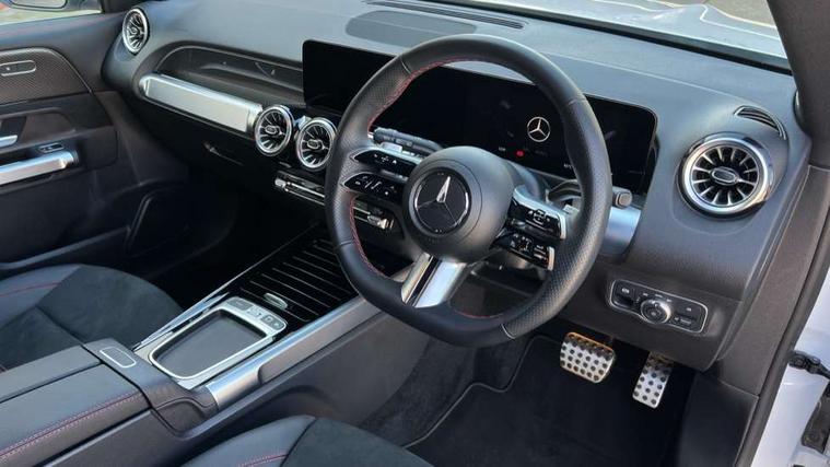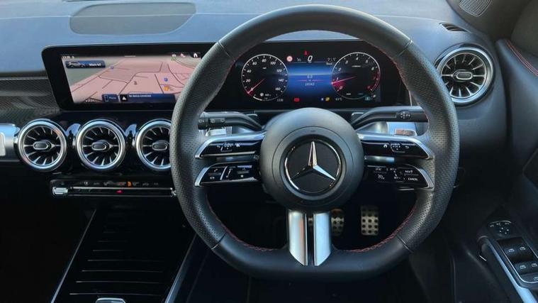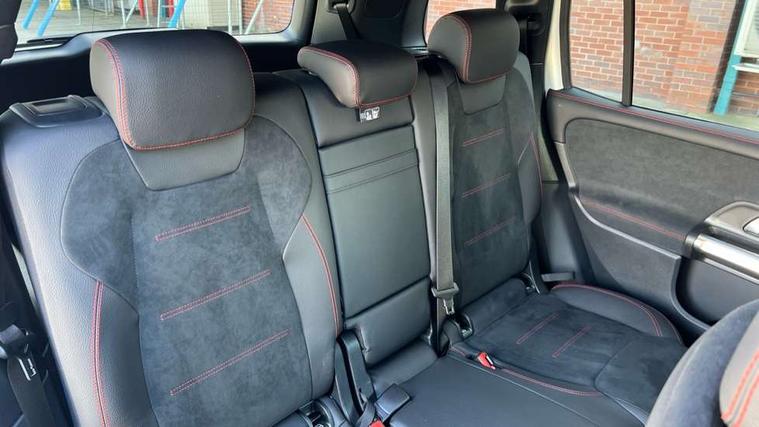 10.25 inch touchscreen central media display, 10.25" Digital instrument cluster display screen, Attention assist - Monitors steering behaviour and long journey fatigue, Blind spot assist, Bluetooth connection, Brake pad wear indicator warning light, Car wash mode, Direct steering, DYNAMIC SELECT with a choice of driving modes (ECO, Comfort, Sport and Individual), ECO start/stop function, Exit warning function, Fluid level warning indicator for fuel, oil, coolant and washer fluid, Hard disk navigation, Hey Mercedes Voice activation, Lamp failure indicator, Lane keep assist, MBUX navigation premium, Mercedes me connect including emergency call system, accident recovery, breakdown and maintenance management, Mercedes me remote services, Outside temperature gauge, Owners manual and service booklet in English, Pre-installation of private car share, Preinstallation for parking damage notification, Radio aerial integrated into front and rear windshields, Service indicator (ASSYST), Smartphone integration with Apple CarPlay and Android auto, Speed limit assist, Tailgate, Trip computer in multifunction display with current consumption indicator, Wireless charging, Comfort suspension with ride height lowering, Rear axle multi-link, DAB digital radio tuner, MBUX multimedia system, Mercedes Benz sound system (100 W) with 6 speakers, Pre installation for Mercedes Benz Link, Adaptive brake lights, Adaptive high beam assist, AMG front apron with front splitter in the colour of the vehicle with chrome trim element, AMG rear apron with visible tailpipe trim and chrome trim element, AMG specific/dual flow exhaust pipes in chrome (non-functional), Beltline trim and window line trim strip in high gloss aluminium, Black grained side sill trim with chrome inlay, Body coloured door handles, Electric adjustable and heated door mirrors with integrated LED side indicators, Front and rear electric windows, Headlamp assist automatic headlamp activation, Heat insulating dark tinted glass for rear side windows and rear window, Heated glass rear windscreen + timer control, High level LED third brake light, Interior mirror with black reading lamps and frameless, LED high performance headlamps with integrated LED daytime running lights, LED tail lamp, Polished aluminium roof rails, Radiator grille as a diamond grille with chrome pins and central Mercedes star, Rain sensor windscreen wipers with two sensitivity stages, Rear fog lamp, Rear side wing doors, Rear wiper, Single louvre in matt grey with chrome inserts and black highlights, Two visible tailpipe trim elements exhaust, Wheel arch liners in the colour of the vehicle, 3 seat bench in 2nd row, 3 twin spoke flattened multifunction steering wheel in nappa leather - horizontal twin spoke in high gloss black, vertical twin spoke in silver chrome, 4 way adjustable lumbar support, 40:20:40 split folding rear seats, Air vents with silver chrome surrounds, AMG floor mats, AMG sports pedals with brushed stainless steel surfaces and black rubber studs, Artico man-made leather/Microcut microfibre upholstery, Automatic child seat recognition sensor, Black roof lining, Fluorescent jacket, Front and rear headrests, Front centre armrest with stowage, Galvanised steering wheel gearshift paddles in silver chrome, Heated front seats, Height adjustable head restraints, Height/reach adjustable steering column, Interior lighting - 64 colour Ambient lighting, Luggage net on driver/front passenger seat backrest, Single front passenger seat, Sports seats, Stowage compartment in centre console with retractable cover and double cupholder and 12 V socket, Sun visors with illuminated vanity mirrors, THERMATIC automatic climate control, Third row of seats for two people on rear seat, Twin front cup holders, Two outer rear seat isofix and top tether child seat fixing points, Easy pack tailgate, Interior lighting with light and sight pack - GLB, KEYLESS-GO Comfort package - GLB, Mirror package - GLB, Parking Package with reversing camera - GLB, Seat comfort package - GLB, USB package plus - GLB, 3 rear 3 point seatbelts, Active bonnet pedestrain safety measure which detects an impact and raises bonnet by 65mm, Active brake assist includes forward collision warning system with autonomous braking, Adaptive brake assist with hold function and hill start assist, Airbags - kneebag for driver, Anti-lock braking system (ABS) with brake assist, Bonnet with power domes, Childproof locks manually operated for rear doors and electrically operated for rear power windows, Crash responsive emergency lighting, Curve dynamic assist, Driver and front passenger head and sidebags, Driver and front passenger windowbags, Dual stage driver and front passenger airbags, Electric parking brake, Electronic stability programme with acceleration skid control, Front and rear seatbelt reminder, Front brake callipers with Mercedes Benz lettering, Front passenger seat occupancy sensor, Perforated front brake discs, Tyre pressure monitoring system, Warning triangle and first aid kit, Guard 360 degree vehicle protection - Anti theft alarm system, tow away protection with visual, acoustic warning and alarm, Interior monitoring system, KEYLESS-GO starting function, Remote central locking and crash sensor with emergency opening function, Thatcham category 1 alarm system with immobiliser and interior protection, Black seatbelts, Carbon structure trim, 19" AMG 5 twin spoke light alloy wheels aerodynamically optimised, painted in high-gloss black and with a high-sheen finish RTG, Summer tyres, Tirefit tyre sealant kit,