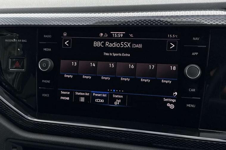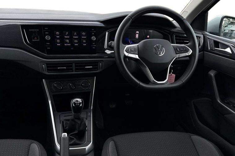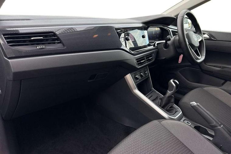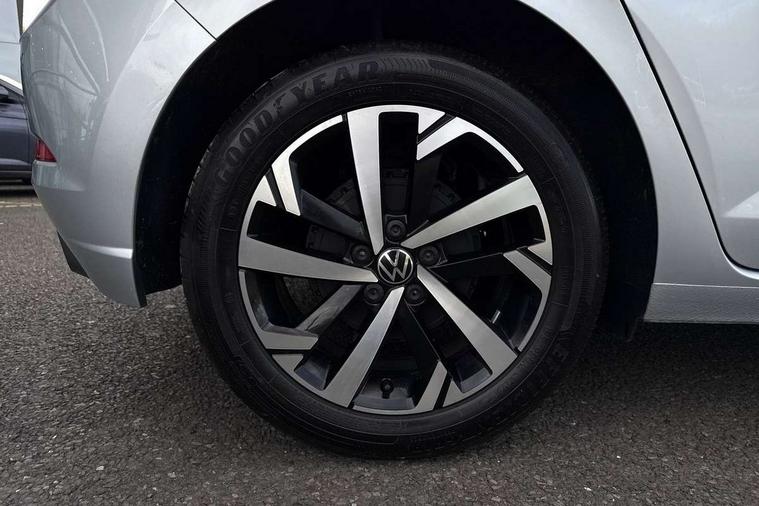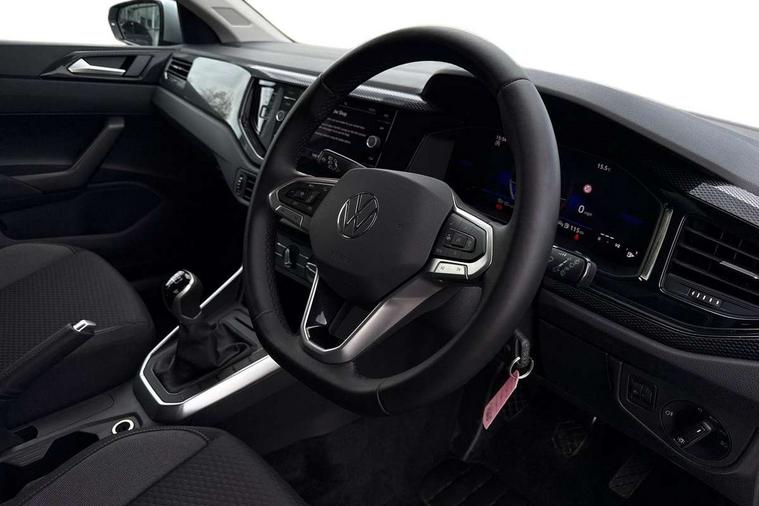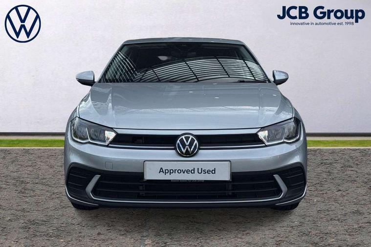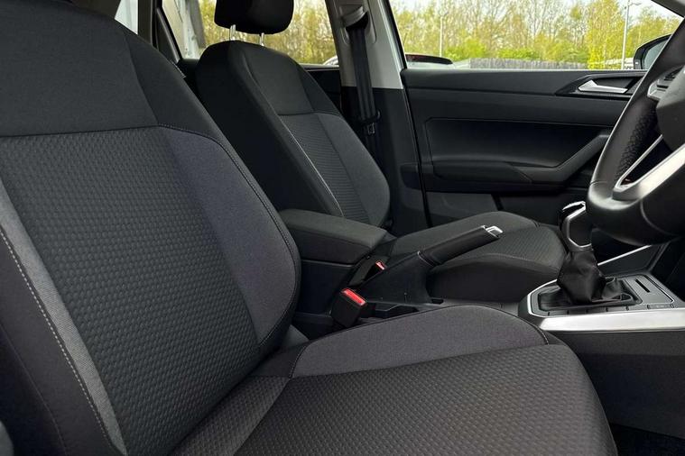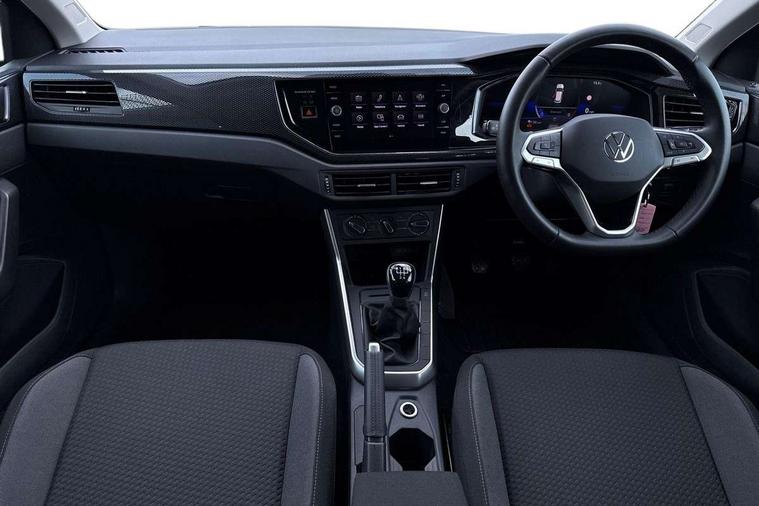 Adaptive cruise control without follow-to-stop and speed limiter, Advanced driver attention and drowsiness monitor, Bluetooth mobile phone interface, Dynamic road sign display, Emergency call service, Mobile phone preparation with inductive charging function, Multifunction front facing camera for distance control, Power assisted speed sensitive steering, Preparation for navigation system with media and internet package, Preparation for We connect and We connect plus, Rear view camera, Speedo and rev counter, electronic odometer, trip, service interval display and exterior temperature gauge, Standard rear axle, Travel Assist - Lane keeping system and traffic jam assist, Travel assist including emergency assist, Trip computer, Warning signal and warning light for front and rear seatbelts not fastened, Washer fluid level indicator, Wireless app connect, Front wheel drive, Rear shock absorpion, Start-stop system with battery regeneration (recuperation - energy recovery during braking), DAB Digital radio, Diversity antenna for FM reception, Automatic dimming interior rear view mirror, Automatic headlight control with LED separate daytime running lights with coming/leaving home function, Body colour bumpers with chrome inserts, Body colour door handles, Body colour door mirrors, Electric front windows, Engine badge deletion, Headlight range adjustment, Heat insulating and laminated safety glass windshield, LED Headlights, LED rear combination lamps, Power folding adjustable/heated exterior mirrors and front passenger exterior mirror lowering function, Rain sensor, Rear electric windows, Rear fog light, Rear side wing doors, Rear tinted glass from B-pillar backwards approx 65% tinted, Rear windscreen washer and wiper with interval delay, Third brake light, 12V power socket in centre console, 2 front and 2 rear reading lights with switch off delay and dimmer, 2 USB-C ports in the front, 2 USB-C charging sockets on the center console in the rear, 3 rear head restraints, 60/40 split folding rear seat and rear seat bench not split, Carpet mats, front and rear, Ceramique roof lining, Chrome plated radiator grille inserts, air vent surrounds and light switch surrounds, Door and side trim panel, Driver and front passenger seat height adjustment, Driver/passenger sunvisors with illuminated vanity mirrors, Front centre armrest, Front seat backrest storage pockets, Front standard seats, Handbrake lever handle in leather, Hartley/Thomas cloth upholstery, Headliner in recycled material, Isofix child seat preparation easy-fit (for two outer rear seats, and front passenger seat) compatible with I-size, Leather trimmed gear knob, Luggage compartment cover, Luggage compartment lighting, Removable luggage compartment floor, Single front passenger seat, Standard climatic zones, Standard pedal cluster, Three spoke leather wrapped multifunction steering wheel, Light and vision pack - Polo, 3 point height adj front seatbelts + pretensioners, 3 point seat belt for centre rear seat, 3 point seatbelts, outer rear with ECE lable, ABS, Driver and front passenger airbag with front passenger airbag deactivation, Drivers and front passengers safety optimised head restraints, ESC (Electronic stability control) + EDL (Electronic Differntial lock) and ASR (Traction control), Extended and predictive pedestrian/ cyclist protection, Front assist with autonomous emergency braking (for Adaptive Cruise Control ACC up to 130 mph), Front curtain and side airbags with center airbag, Front disc brakes, Hill hold control, Manual child lock in rear doors, Rear drum brakes, Single tone horn, Tyre pressure loss indicator, Alarm with interior protection, Anti-theft alarm system with interior monitoring, backup horn, and towing protection, Anti-theft wheel bolts, Electronic engine immobiliser, Lava stone black gloss/matt decorative inserts in dash and front door panels, 16" Torsby alloy wheels, Low rolling resistance tyres,