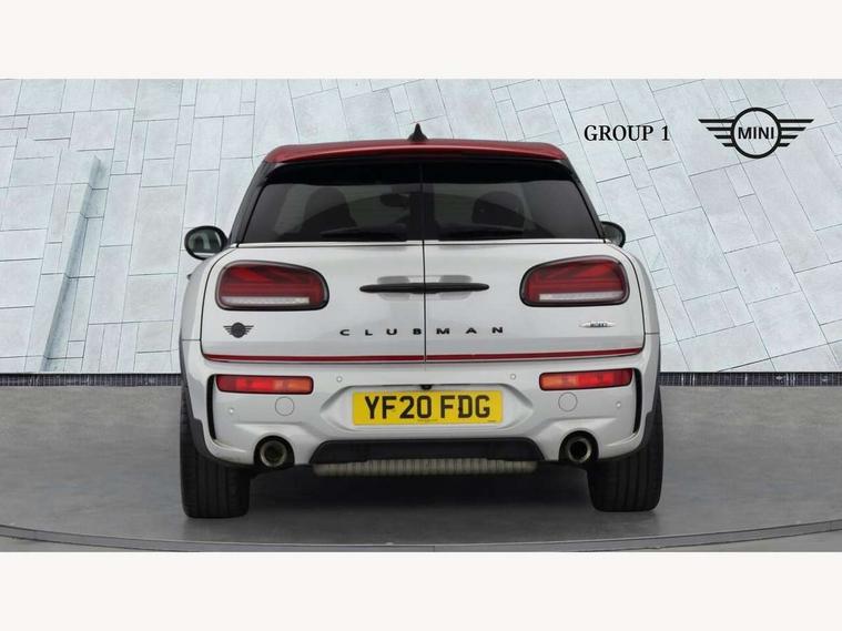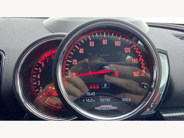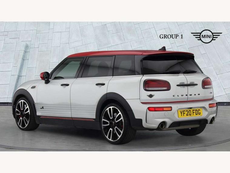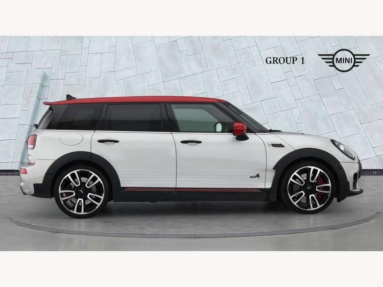 Active Guard incl speed limiting and lane departure functions with auto steering, and front collision warning with brake intervention, Automatic start/stop function with brake energy recuperation, Compatible mobile phone bluetooth with audio streaming, Digital cockpit, Electro-mechanical speed dependant steering assistance, Instrument cluster, Mini E-call, MINI TeleServices, On board computer, 8 Speed steptronic sport transmission including steering wheel paddles, All Wheel Drive (AWD), Double Vanos system, Fully variable valve control, High precision injection, Performance Control, FM tuner and DAB digital radio, Bonnet scoop, Chrome fuel filler cap, Dynamic brake lights, Electric windows, Heated rear window, Heated windscreen washer jets, John Cooper Works - aerodynamic kit (front and rear apron, spoiler), front and rear sport bumpers and part-painted side sills with door sill finishers, John Cooper Works rear spoiler, LED rear light with union jack design, Metal door sill strips with Cooper S imprint, Model logo, Model logo on rear doors, Piano black exterior, Radiator grille piano black border with honeycomb structure in matt black with John Cooper Works logo above an individual grille struct in chilli red, Rain sensor with auto headlights, Rear fog lights, Rear window wiper, Side scuttle with MINI John Cooper Works logo in high gloss black with red border, Split rear doors, Sun/heat protection glass, Twin exhaust tailpipe, White indicator lenses, 12V Accessory socket in centre console, 360L luggage compartment capacity, 4 lashing eyes in luggage compartment, 60/40 split folding rear seat, Anthracite headlining with grab handles and clothes hooks, Chrome interior highlights, Cupholders, English handbook, Glove compartment, Height and length steering column adjustment, Interior lighting with 12 basic colours selectable via toggle switch in roof, Isofix rear child seat preparation, John Cooper Works perforated leather steering wheel with contrast stitching in chilli red and John Cooper Works logo, John Cooper Works sports seat with integrated headrest, adjustable thigh support and John Cooper Works logo, Leather gearshift lever and handbrake gaiters, LED reading lights, vanity mirror lights, front foot well light and spotlight on front seats, Multifunction steering wheel, Rubberised stainless steel pedals, Storage compartments in doors, Sunvisors with vanity mirrors, Toolkit, Comfort plus pack - Mini Clubman, Excitement pack - Clubman, Navigation pack - Clubman, 17" front sport brake with 4 piston fixed calliper, 2 tone horn, 3 point seatbelts on all seats, 6 Airbags - front, side, head and seat belt tensioners, Anti-lock braking system (ABS), DSC - Dynamic Stability Control, Electronic handbrake, Front and rear disc brakes, Red brake callipers with John Cooper Works logo, Torsen mechanical limited slip differential, Tyre pressure monitoring system, Alarm system with tilt sensor, monitoring doors, bonnet interior and tailgate, Auto drive away locking, Comfort access system, Deadlocking function, Electronic vehicle immobiliser, Locking wheel bolts, Start/stop toggle with keyless go,