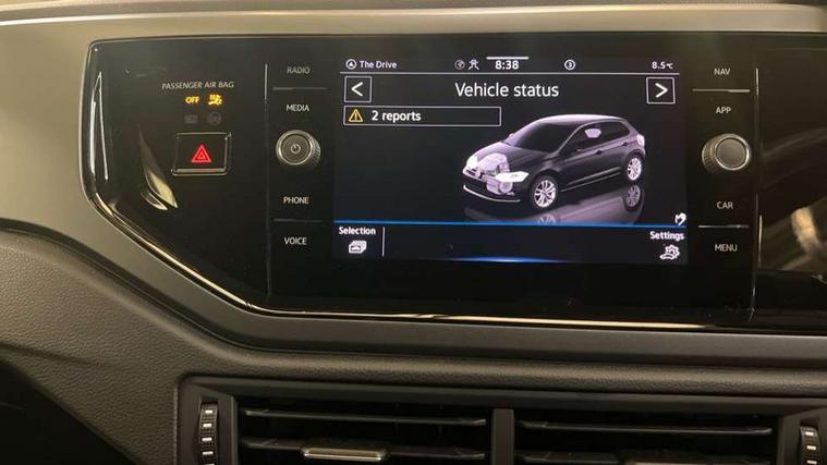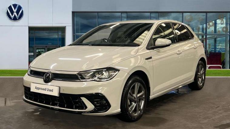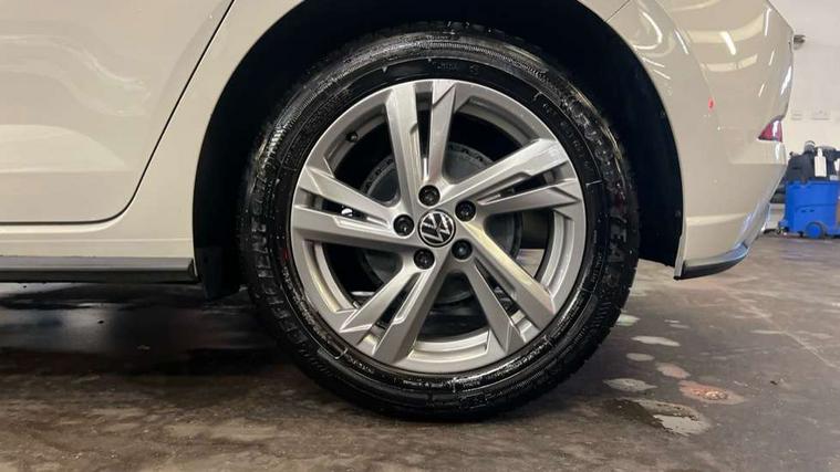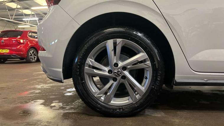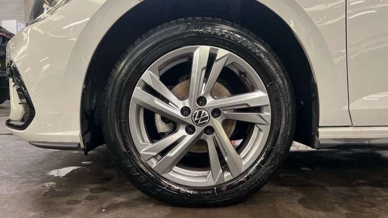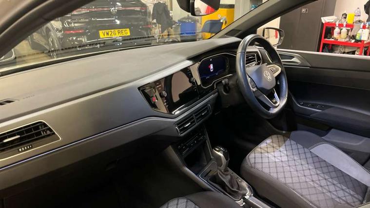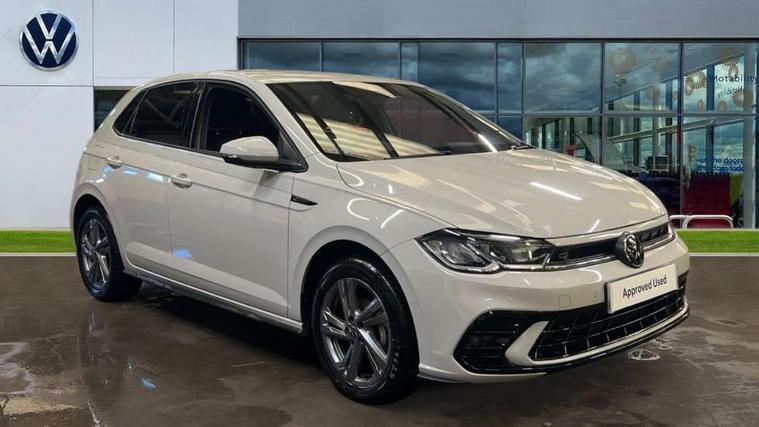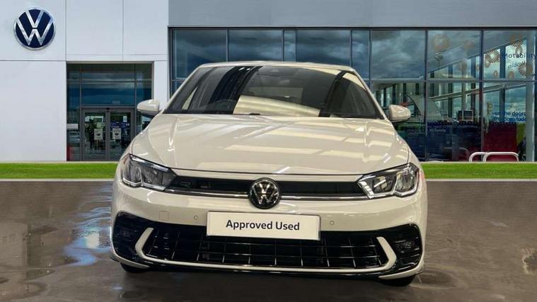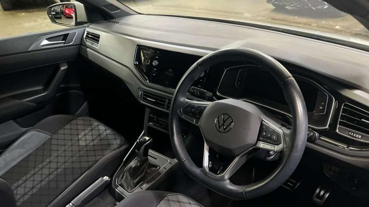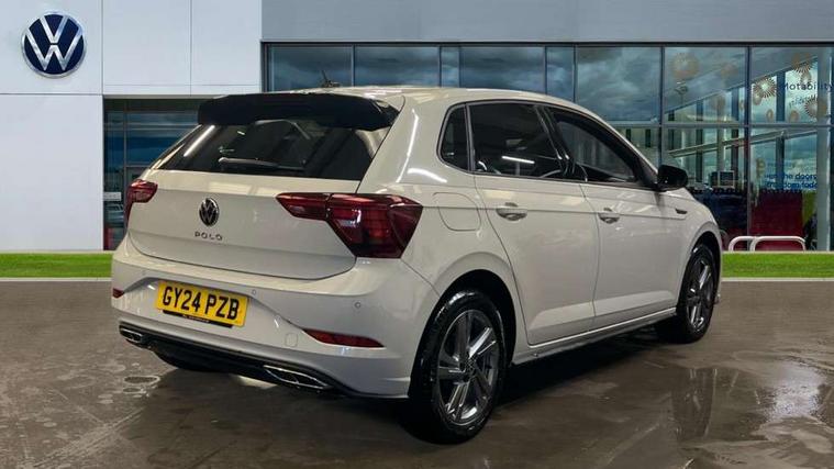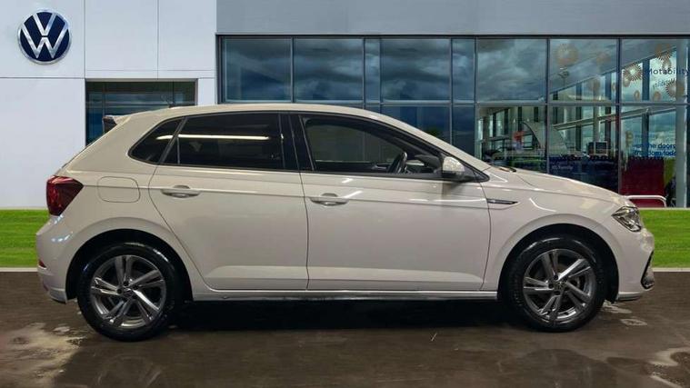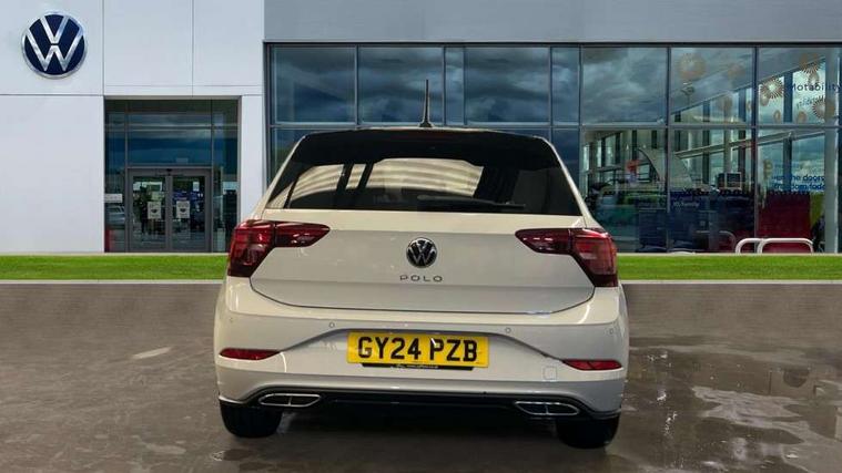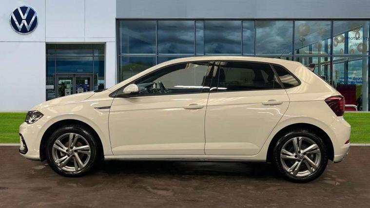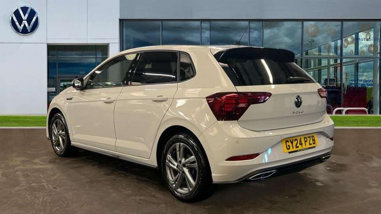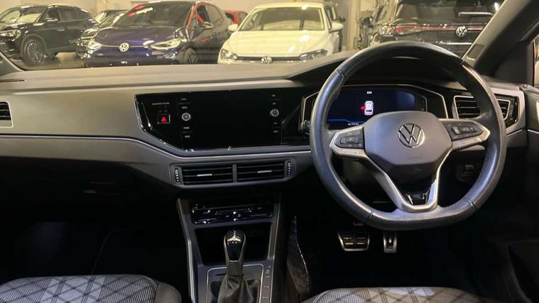 Adaptive cruise control with follow-to-stop and speed limiter, Advanced driver attention and drowsiness monitor, Bluetooth mobile phone interface, Digital Cockpit Pro with 10.25" Display, Dynamic road sign display, Emergency call service, Power assisted speed sensitive steering, Preparation for We connect and We connect plus, Speedo and rev counter, electronic odometer, trip, service interval display and fuel gauge, Standard rear axle, Travel Assist - Lane keeping system and traffic jam assist, Travel assist including emergency assist, Trip computer, Warning signal and warning light for front and rear seatbelts not fastened, Washer fluid level indicator, Wireless app connect, Front wheel drive, Rear shock absorpion, Start-stop system with battery regeneration (recuperation - energy recovery during braking), DAB Digital radio, Diversity antenna for FM reception, Front and rear 6 speakers, Body colour bumpers, Body colour door handles, Electric front windows, Front scuff plates with R-Line logo, Heat insulating darkened glass in side and rear windows, Heat insulating glass windscreen, Power folding adjustable/heated exterior mirrors and front passenger exterior mirror lowering function, Rear electric windows, Rear fog light, Rear side wing doors, Rear windscreen washer and wiper with interval delay, Third brake light, 12V power socket in centre console, 2 USB-C ports in the front, 2 USB-C charging sockets on the center console in the rear, 3 rear head restraints, 60/40 split folding rear seat and rear seat bench not split, Air care climatronic air conditoning system with active combination filter and 2-zone temperature control, Black roof lining, Chrome plated radiator grille inserts, air vent surrounds and light switch surrounds, Door and side trim panel, Driver and front passenger seat height adjustment, Driver/passenger sunvisors with illuminated vanity mirrors, Front + rear carpet mats in recycled material, Front centre armrest, Front footwell illumination, Front seat backrest storage pockets, Front sports comfort seats, Handbrake lever handle in leather, Headliner in recycled material, Isofix child seat preparation easy-fit (for two outer rear seats, and front passenger seat) compatible with I-size, Karoso artvelours cloth upholstery, Leather trimmed gear knob, LED interior light with switch off delay and dimmer, 2 reading lights front and rear, Luggage compartment cover, Luggage compartment floor, Luggage compartment lighting, Lumbar adjustment for front seats, Single front passenger seat, Stainless steel pedals, Standard pedal cluster, Three spoke leather wrapped multifunction steering wheel with shifting paddles, Light and sight pack - Polo R-Line/Black Edition, 3 point height adj front seatbelts + pretensioners, 3x3 point rear seatbelts, ABS, Driver and front passenger airbag with front passenger airbag deactivation, Drivers and front passengers safety optimised head restraints, ESC (Electronic stability control) + EDL (Electronic Differntial lock) and ASR (Traction control), Extended and predictive pedestrian/ cyclist protection, Front curtain and side airbags with center airbag, Hill hold control, Manual child lock in rear doors, Single tone horn, Tyre pressure loss indicator, Alarm with interior protection, Anti-theft alarm system with interior monitoring, backup horn, and towing protection, Anti-theft wheel bolts, Electronic engine immobiliser, Chrome applications on rotary light, mirror adjustment, window regulator switches, outlet with frame in black, Dark grey anodised matt decorative inserts in dash and front door panels, Low rolling resistance tyres,