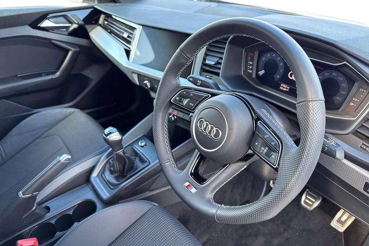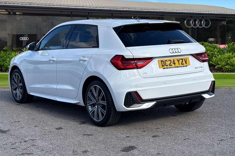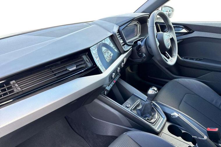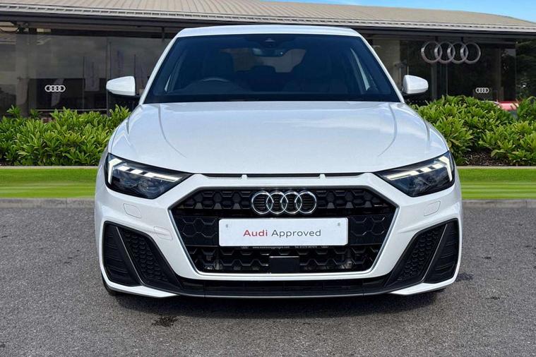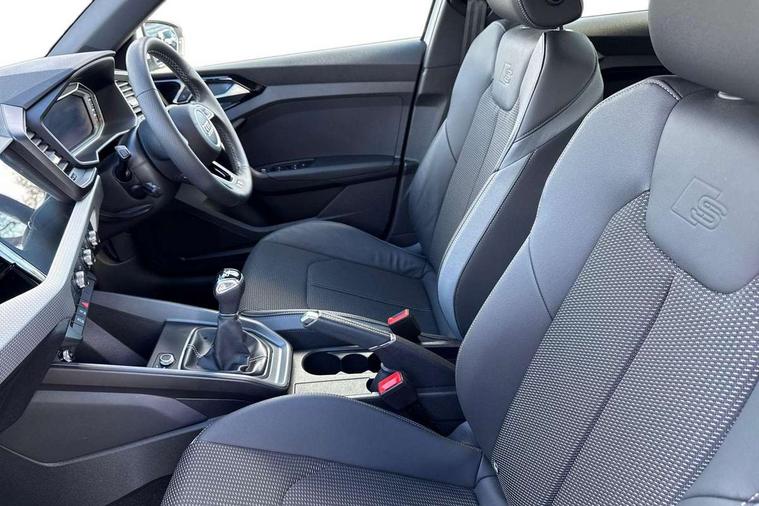 10.25" Digital instrument cluster display classis style instrument dials + speed, odometer, time, outside temperature, telephone menu + fuel level warning, Advanced driver attention and drowsiness monitor, Audi connect emergency call and service, Audi remote connect and control, Audi smartphone interface, Bluetooth interface, Camera based traffic sign recognition, Cruise control, Driver's information system, Electromechanical power steering, Lane departure warning system, Rear parking sensor, Service interval indicator, Speed limiter, Start stop system with recuperation, Voice control system, Washer fluid level indicator, Sports suspension, 2 x USB type C connection points, 6 loudspeakers, DAB Digital radio, MMI radio plus with 10.1" colour MMI display screen and MMI touch, Auto dimming rear view mirror, Body coloured door mirrors, Door sill trims with aluminium inlays and S line logo in front, Electric front and rear windows, Electrically adjustable, heated, folding door mirrors with integrated LED side indicator, Front side air inlets in grained matt black and C frame in anthracite black, Headlight cleaning system, Heat insulating glass windscreen and side windows, Heated rear windscreen, High level LED brake light, LED daytime running lights, LED headlights with range control LED rear lights + dynamic rear indicators, Privacy glass, Radiator grille and rear diffuser in matt anthracite black, Radiator protective grille frame in matt aluminium silver, Rain and light sensors, Rear fog lights, Rear side wing doors, Rear wiper, S line badges on front wings, Side front spoiler lips in grained matt black, 12V socket in centre console with two cup holders, 3 rear seats with headrests, 3 seat bench in 2nd row, 3 spoke leather multi-function plus steering wheel features S badging and grips in perforated leather with contrast stitching, 40:60 Split folding rear seat or fully collapsed, Black cloth headlining, Front and rear velour black floor mats with contrast stitching in fine silver, Front head restraints, Front passenger seat, Height and reach adjustable steering wheel, Interior lighting includes roof module, front and rear reading lights and right luggage compartment lighting, ISOFIX child seat mounting for front passenger and outer rear seats including top tether attachment point of outer rear seats, Leather gear knob with aluminium trim, Leather handbrake grip, Manual air conditioning, Manual height adjustable for driver and front passenger seat, Manually adjustable lumbar support in front seats, Stainless steel pedals, Ambient lighting package - A1, Luggage compartment pack - A1, S line exterior styling pack - A1 Sportback, 3x3 point rear seatbelts, Audi pre-sense front with pedestrain and cyclist recognition, Brake assist function, Driver and front passenger airbag with front side and head airbags, Electronic Stability Control including ABS, EBD, ASR and EDL, Front passenger airbag deactivation switch, Hill hold assist, Manual rear child locks, Seatbelt height adjustment for front seats, Seatbelt monitoring, Tyre pressure loss indicator, Warning triangle and first aid kit, Anti theft alarm, Anti theft wheel bolts, Immobiliser, Remote control key with safelock, Aluminium trim for control switches, air vents and digital instrument cluster, Black dashboard, Silver grey inlays polygon structure in diamond paint finish, Structured grey accent surfaces insert of air vents, interior door handle recesses and centre console in quartz paint finish,