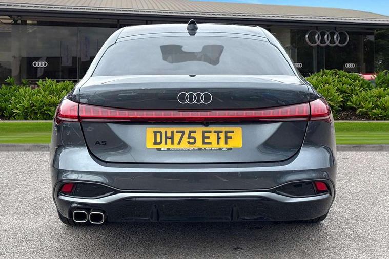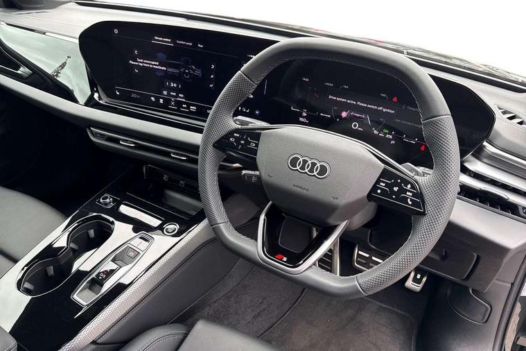 Adaptive cruise control, Attention and drowsiness detection with driver observation, Audi application store, Audi assistant, Audi connect emergency call and service, Audi drive select, Audi virtual cockpit plus with 11.9" OLED colour display, Automatic start/stop system with coasting functionality, Camera based traffic sign recognition, Convenience key, Intersection assist, Lane departure warning, MMI navigation plus with high resolution 14.5" OLED touchscreen colour display, Park assist plus, Parking system plus with 360 display, Progressive steering with servotronic, Rear view camera, Side assist and exit warning, rear cross-traffic assist and rear turn assist, Smartphone interface, Swerve assist and turn assist, Traffic sign based speed limiter, Sports suspension lowered by 20mm, Audi sound system impressive sound with 8 loudspeakers including centre speaker and subwoofer, 6-channel amplifier with a total output of 180 watts, DAB digital radio reception, Smartphone compartment with wireless charging, Aluminium window trims, Auto dimming rear view mirror, Body colour door handles, Body colour door mirrors, Door mirrors - electrically adjustable, heated, folding and auto dimming on both sides, Front and rear electric windows, Front door sill trims with aluminium inlays, illuminated with 'S' logo, High beam assist, LED headlights Plus incl. digital daytime running lights, turning light, all-weather light, motorway light, manouevring light and intersection light, LED rear lights pro incl. dynamic rear indicators and illuminated light strip with animated coming and leaving home function, LED third brake light, Privacy glass, Rear and side windows with heat insulating glass, Rear boot, Rear side wing doors, S Line badges on the front wings, S line bumpers, radiator grille and diffuser in phantom black and diffuser insert in matt anthracite, White rhombus logo projection light in exterior mirrors, Windscreen with acoustic glazing, 3 rear headrests, 3 seat rear bench, 3 spoke leather steering wheel with multi-function buttons with touch control, flattened on top and bottom, with S badging and contrast stitching, 3-zone automatic climate control, 40:20:40 split folding rear seat bench with centre armrest and cup holders, Comfort front centre armrest, Front and rear floor mats, Front sport seats with integrated headrest and S embossed logo, Headlining in black cloth, i-Size child seat mounting on the front passenger side and outer rear seats, i-Size and top tether on the outer rear seats, Increased charging capacity for USB ports 2X100 Watts in rear, 2X60 Watts in front, Luggage compartment lid, electrically opening and closing, Manual steering column height and depth adjustment, Single front passenger seat, Stainless steel pedals and footrest, Steering wheel grips in perforated leather and shift paddles, Ambient lighting package plus - A5, 3x3 point rear seat belts, Driver airbag, Electric child safety locks, First aid kit with warning triangle and vests, Front emergency brake assist, Front passenger airbag, Front passenger airbag deactivation, Front side airbags with head airbag system and front interaction airbag, Hill hold assist, Seat belt monitoring with rear seat occupant reminder, Tyre pressure loss indicator, Anti theft alarm, Anti-theft wheel bolts, Digital key, Keyless Go, Accent surfaces and control buttons in gloss black, Black dashboard with contrast stitching, Inlays in matt brushed aluminium with linear embossing, anthracite, Softwrap in leatherette with contrast stitching, Upper and lower interior elements in leatherette, Tyre repair kit,