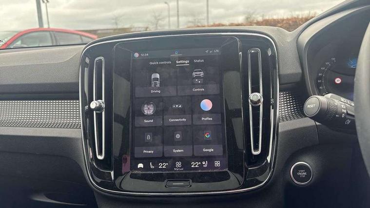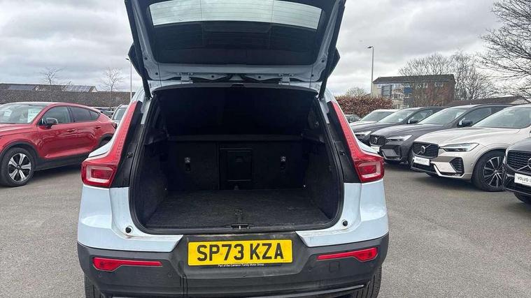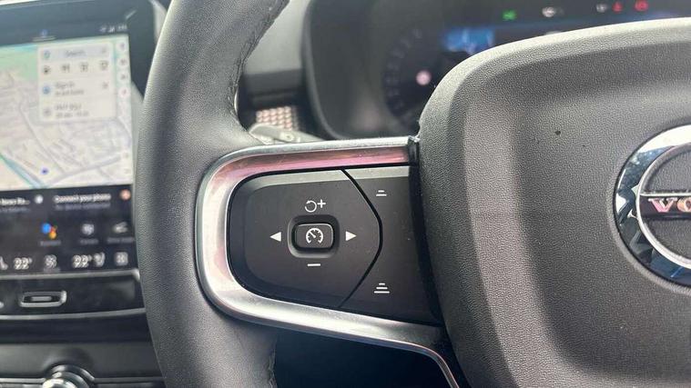 12.3" Progressive Driver Display, 360 degree surround view parking camera with side proximity sensors, 9" centre console portrait touch screen, Adjustable steering wheel force, Bluetooth hands free telephone kit, E-call, Front park assist, Google automatic services - Nav with google maps, apple carplay/android auto, voice recognition with google assistant, Hands free power tailgate, Lane keep assist with driver alert control, Oncoming Lane Mitigation, Rear park assist, Speed limiter, Speed sensitive steering, Wireless/Inductive Mobile Phone Charging, Dynamic chassis, DAB Digital radio, Premium Sound by Harman Kardon, Dolby Pro Logic II Surround Sound, Dirac Unison, 12 speakers/600W and subwoofer, Steering wheel mounted remote controls, Active bending pixel LED headlights with adaptive shadow technology, Active high beam incorporating daytime running lights, Adaptive brake lights with high level LED brake lights, Auto dimming interior mirror, Automatic headlamp levelling, Dark tinted windows for rear door side windows and cargo compartment, Front aluminium tread plates, Front and rear electric windows, Headlight cleaning system, High gloss black front and rear skid plate, High gloss black mesh front grille with high gloss black surround, High gloss black window trim, Home safe and approach lighting, Integrated roof rails in high gloss black, LED front fog lights, Power glass tilt and slide panoramic sunroof with sun curtain, Puddle lights, Rain sensor with automatic windscreen wiper activation, Rear side wing doors, Rear wiper, Roof antenna, Roof spoiler, Visible VIN plate, 12V socket in front tunnel console and luggage compartment, 2-Zone electronic climate control with CleanZone air quality system and pollen filter, 3 seat bench in 2nd row, 3 Spoke tailored steering wheel with chrome trim, 60/40 versatile split folding rear seat, A-pillar parking ticket holder, Centre console cupholders and storage, Flexible load floor and grocery bag holder, Floor mats, Front door pocket, front cupholder, ambient front door, rear reading, rear courtesy, instrument panel and tailgate lighting, Front footwell illumination, Front headrests, Front reading light and theatre lighting, Front seat cushion extensions, Front tunnel pocket, Glovebox bag hook, Heated front seats, Height adjustable passenger seat, Height/reach adjustable steering column, High gloss centre tunnel deco, Illuminated glovebox, Illuminated luggage compartment, Illuminated vanity mirrors, Integrated waste bin, Isofix attachments on outer rear seats, Load protection net, Multi directional lumbar support, Power driver seat with memory + exterior mirrors memory, Power folding rear headrests, Power passenger seat, Rear armrest / integral cup holders / storage tray, Single front passenger seat, Underfloor cargo storage, Climate pack without heated front seats - XC40, Driver assist pack - XC40, 3x3 point rear seatbelts, City safety with steering support with Pedestrian + cyclist + front collision warning with full auto brake and rear auto brake, Drivers knee airbag, Dual stage driver/passenger airbags, Electronic parking brake with auto hold, First aid kit, Front and outer rear seatbelt reminder and pretensioners, Front seats SIPS airbags, Hill descent control, Hill start assist, Inflatable curtain, Passenger airbag cut-off device, Power child locks on rear doors, Road sign information display, Run off Road Mitigation, Run off Road Protection, SIPS (Side Impact Protection System), Slippery road and hazard light alert, Stability and Traction Control with Spin control, Engine Drag Control and Corner Traction Control, Tyre pressure monitoring system, Vehicle deceleration control with Anti-lock Brake System, Electronic Brake Distribution and Emergency Brake Assist, Warning triangle, WHIPS whiplash protection system - front, Anti-theft alarm including immobiliser/volume sensor + level sensor, Key integrated remote control central locking + fuel flap with deadlocking system and auto open/close power windows, Keyless drive includes keyless entry and keyless start, Locking wheel nuts,