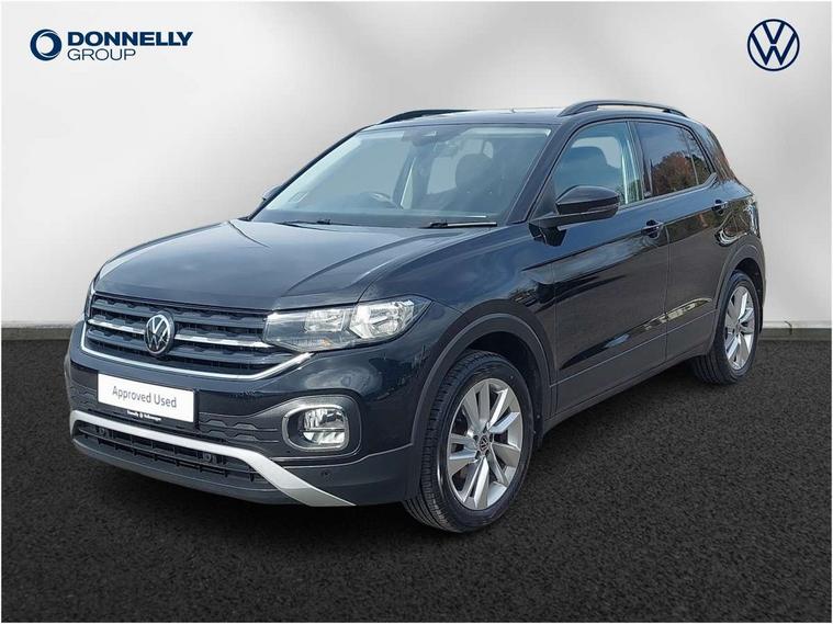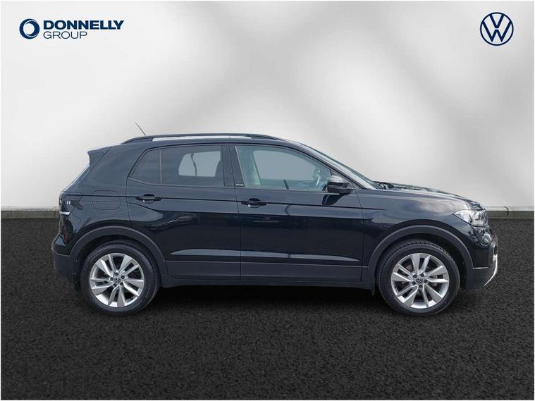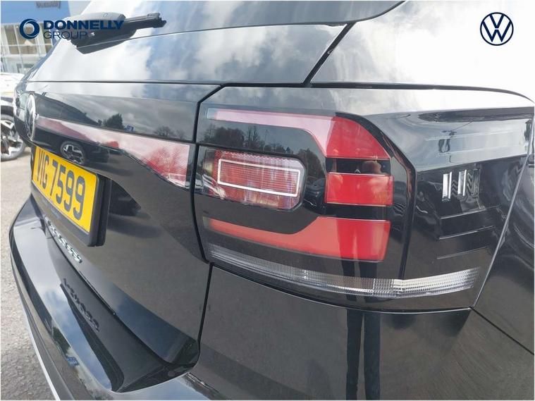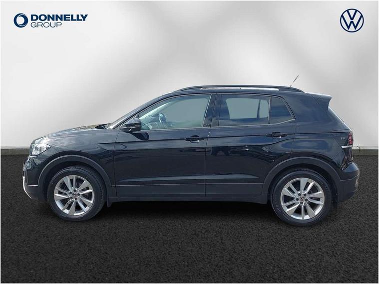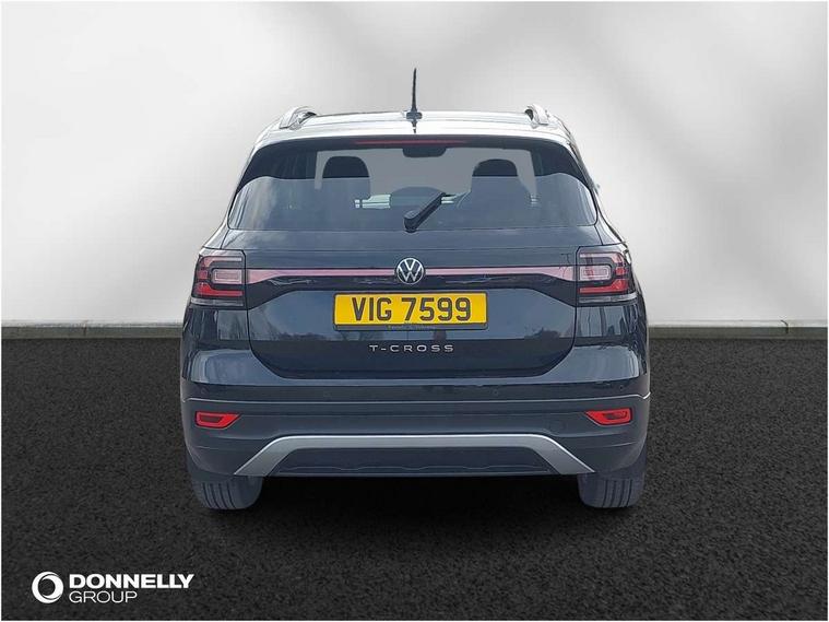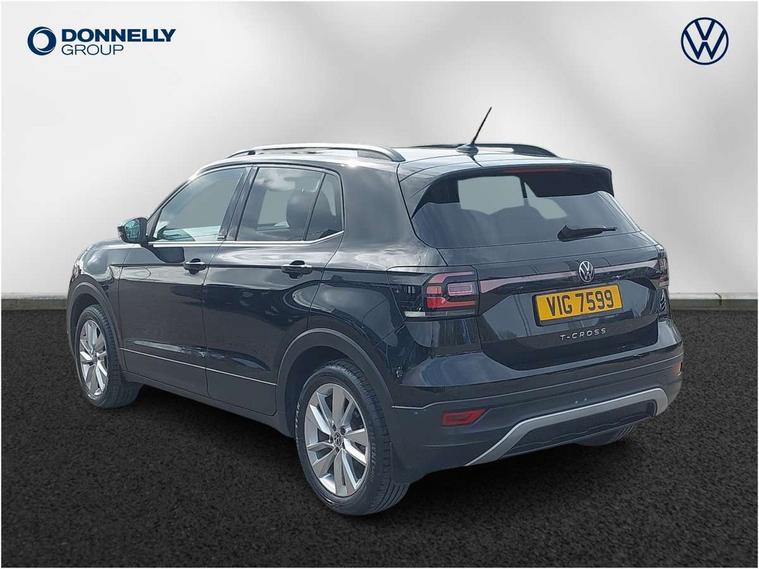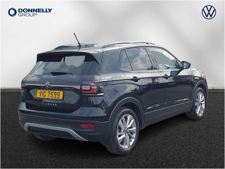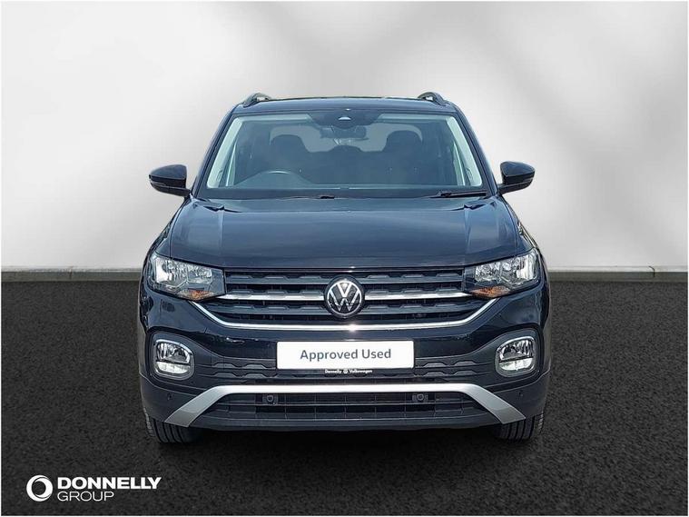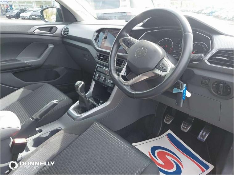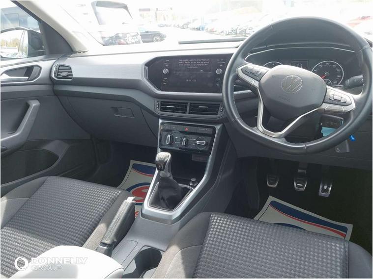 'Lights On' Reminder warning buzzer, Adaptive cruise control including front assist, forward collision warning, autonomous emergency braking, speed limiter, Blind spot monitoring, Bluetooth telephone and audio connection for compatible devices, Car information display, Driver alert system, eCall emergency call system, Lane assist, Low washer fluid warning light, Multifunction computer with visual gear change recommendation for fuel consumption, Operating permit alteration, Power assisted speed sensitive steering, Speedo, rev counter, electronic odometer, trip, service interval display, exterior temperature and fuel gauge, Stop/start system, Warning sound and light for doors and tailgate open, Warning sound and light for front seatbelts unfastened, We Connect Go Dongle, Wireless Car net app connect with Apple CarPlay, combined functionality of Apple CarPlay/Android Auto and MirrorLink, Battery regeneration during braking, Misfuel prevention device, 2x USB connection with USB charging sockets and in rear centre console, DAB Digital radio receiver, Diversity antenna for FM reception, Multi device interface (MDI) with USB connection, Music playback - MP3, WMA and AAC files, Premium USB cable for Apple or Android smartphone compatibility, Simultaneous pairing of 2 compatible mobile devices, Title and cover art display, 3D active badge on B-pillar, Active door sills, Active sill panel trims, Automatic hazard lights activation under emergency braking, Black roof rails, Body colour door handles, Body coloured bumpers, Dusk sensor + automatic driving lights, Electrically foldable, adjustable and heated door mirrors with reverse activated kerb view adjustment on passenger's side, Front and rear electric windows, Front fog lights with static cornering function, Galvanised body, Heated rear window, High level 3rd brake light, Lower door sills and door pillars in black, Radiator grille with high gloss surface and chrome strip, Rear fog light on one side, reversing light on both sides, Rear lights incorporating LED technology, Rear tinted glass 65% approx light absorbing from B pillar backwards, Rear window aerial, Rear windscreen washer and wiper with interval delay, Reflectors in all doors, Tailgate with integrated roof spoiler, Windscreen wipers/ intermittent wipe + 4 position delay, 12V Accessory socket in centre console, 3 rear head restraints and 3 rear three point seat belts with ECE label, 60/40 split folding rear seat backrest, Ambient lighting and sourround lighting, Brushed stainless steel pedals, Drawer under drivers seat, Driver and front passenger sunvisor with vanity mirror, Driver's sunvisor with ticket holder, Dust and pollen filter, Front + rear carpet mats, Front and rear reading lights X 2, Front centre armrest with storage compartment, Front seat back storage pockets, Front seats with adj lumbar support, Glovebox, Heating and fresh air system with 4 stage blower, Height/reach adjust steering wheel, Instrument lighting white adjustable panel illumination, Interior light with delay, Isofix child seat preparation for 2 rear child seats, Luggage compartment cover, Luggage compartment lighting, Moveable and foldable Rear bench seat, Storage compartment in drivers and front passengers door, Three spoke multi-function leather trimmed steering wheel and gearknob, Trapeze cloth upholstery, Variable boot floor, Winter pack - T-cross, Anti-lock Braking System (ABS) with Hydraulic Brake Assist (HBA), Automatic post collision braking system, Driver and front passenger safety-optimised head restraints, Drivers and Front Passengers airbags with front passengers airbag deactivation switch, ESC with EDL, ASR, EDTC and trailer stabilisation function, Extended and proactive pedestrian protection, Front and rear curtain airbags, Front disc brakes and rear drum brakes, Front seat side impact airbags, Height adjustable 3 point automatic front seatbelts with pretensioners, Hill start assist, Pre crash preventive occupant protection, Rigid safety cell with front and rear crumple zones, Single torn horn, Tyre pressure loss indicator, Volkswagen roadside assistance, Alarm with interior protection and deactivation via infotainment system, Child security locks in rear doors, Electronic engine immobiliser, Remote tailgate unlocking using key fob, Decorative strips in doors in matt silver/ center console, 17" Clayton alloy wheels + anti theft wheel bolts, Breakdown kit,