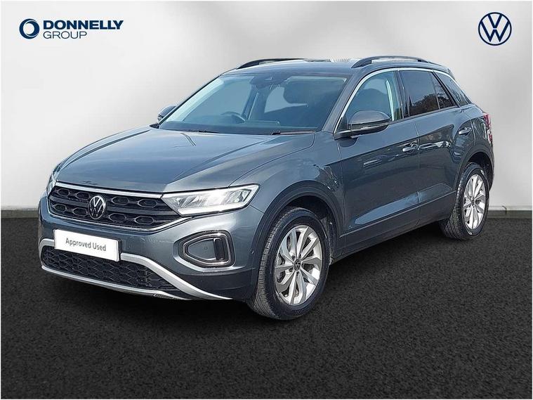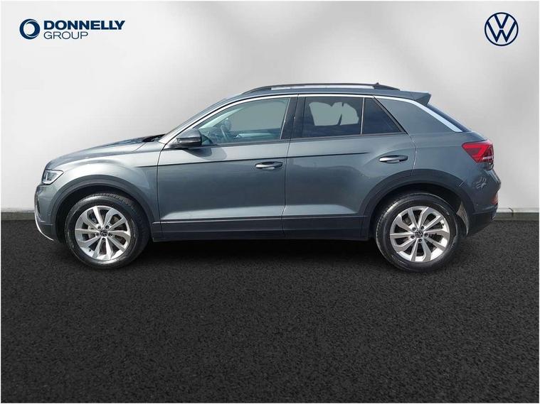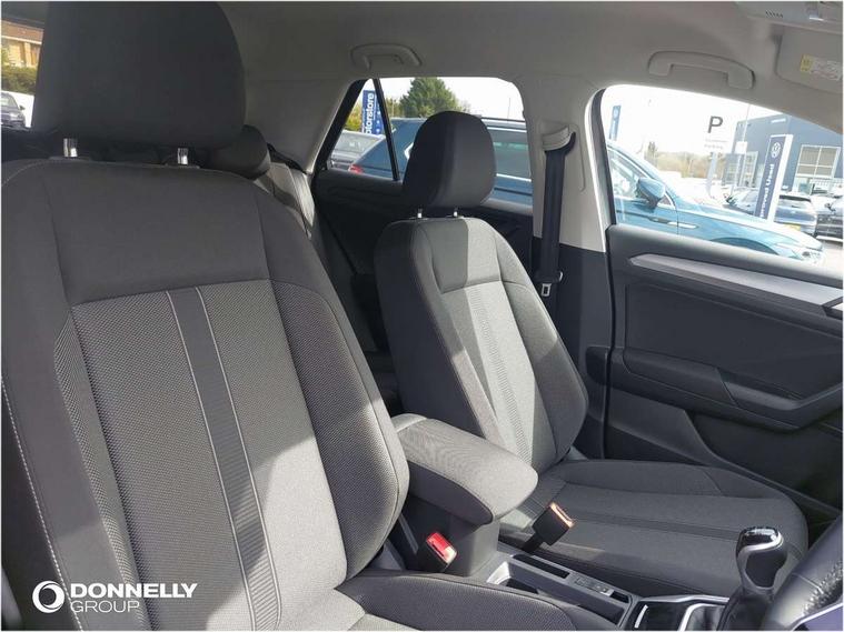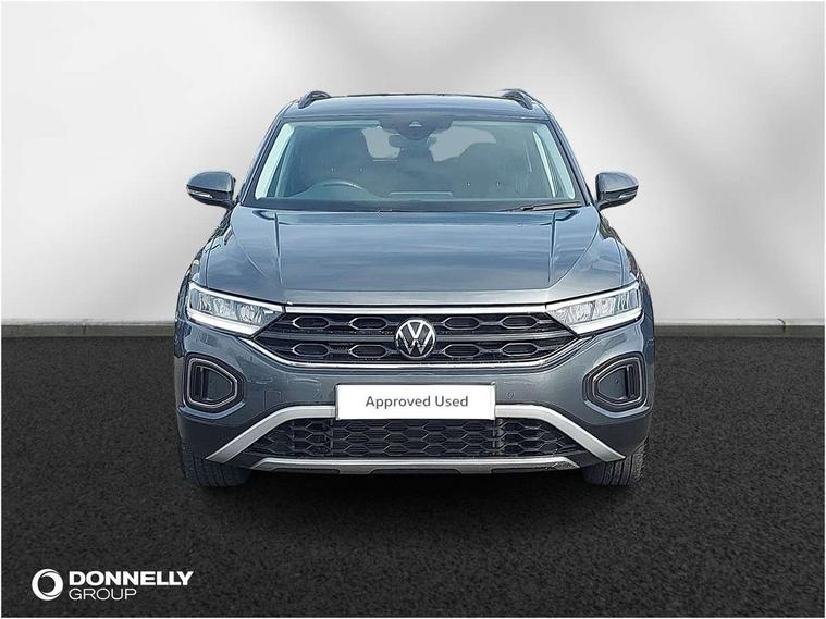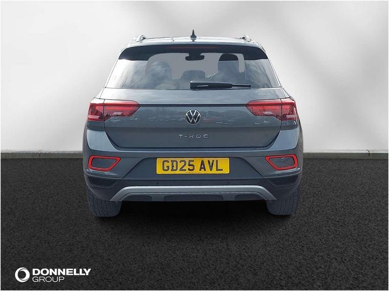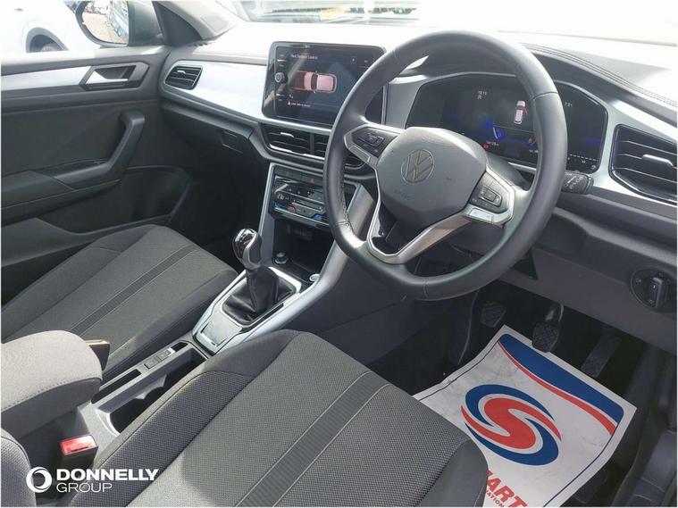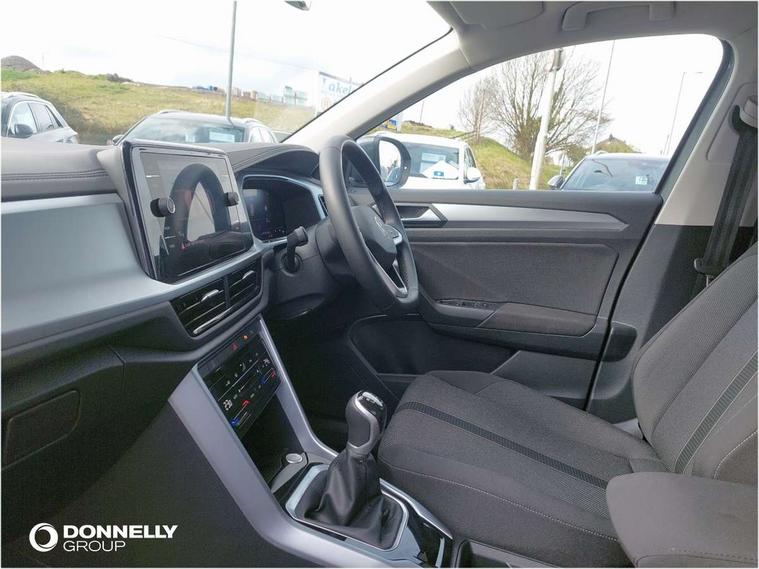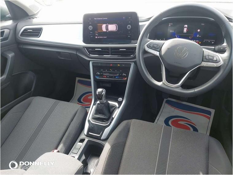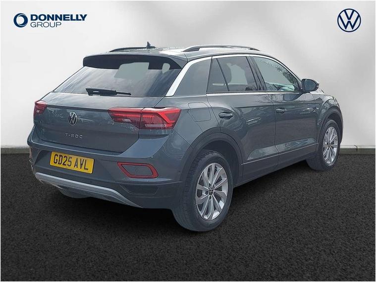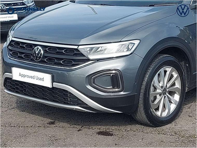 Advanced driver attention and drowsiness monitor, Dynamic road sign display, Emergency call service, Lane keeping system Lane Assist, Mobile phone interface, Modified key software - reduce switch off time for key status change to Long no motion, Online services, Park assist including front and rear parking sensors, Power assisted speed sensitive steering, Rear view camera, Service interval indicator, Tailgate/trunk lid release from outside, Think blue trainer driver tips and journey analysis, Warning sound and light for front seatbelts unfastened, Wireless app connect, Battery regeneration during braking, Front shock absorption, Rear shock absorption chassis with increased ride height, Start/stop function with battery regeneration, DAB Digital radio, Diversity antenna for FM reception, Music playback - MP3, WMA and AAC files, SD card slot, Simultaneous pairing of 2 compatible mobile devices, Title and cover art display, We Connect and We Connect Plus functionality, Auto dimming interior rear view mirror, Automatic hazard lights activation under emergency braking, Automatic headlight control with LED separate daytime running lights with coming/leaving home function, Black roof rails, Body coloured bumpers and radiator grille with chrome trim and front fog lamps with chrome bezel, Body coloured exterior mirror housings and door handles, Electrically adjustable and heated door mirrors, Extended roof spoiler, Exterior mirrors aspherical on driver side, convex on front passenger side, External USB type C socket and charging sockets, Front windscreen wiper with intermittent wipe and 4 position delay, Heated rear window, LED 3rd brake light, LED rear combination lamps, LED rear number plate lights, Power windows with comfort operation and circuit breaker, Privacy glass for rear side windows and rear window, Rain sensor, Rear exhaust tailpipe, Rear fog light on one side and reversing lights on both sides, Rear side wing doors, Rear wash/wipe with intermittent wipe setting, Remote electrically foldable door mirrors, puddle lights and reverse activated passenger's door mirror, 12V power socket in centre console, 3 rear head restraints, 3 seat bench in 2nd row, 4 load lashing points in luggage compartment, Air care climatronic air conditoning system with active combination filter and 2-zone temperature control, Black stitching for floor mats, Ceramique roof liner, Cloth upholstery, Door and side trim panel in cloth, Drawer under drivers seat, Driver/front passenger seat height adjustment, Front centre armrest, Front comfort sports seats, Front cupholders x 2, Front reading light, Front seat back storage pockets, Glove compartment door with light, Instrument lighting, white adjustable panel illumination, Interior ambient lighting and surround lighting, Interior light delay, Isofix child seat preparation, Leather gearshift handle, Load-through provision with cup holder when folded down ('Unsplit rear seat bench, split folding backrest, with centre armrest), Luggage compartment lighting, Lumbar support for driver's and front passengers seat, Non-folding front passenger seat backrest, Single front passenger seat, Storage compartment in left and right luggage area, Storage compartment in rear doors, Storage compartments in driver and front passenger doors, Sunvisors with illuminated vanity mirrors, Variable boot floor, height adjustable and removable, Driver assistance pack without proactive passenger protection - T-Roc Life/Match, 3 point height adj front seatbelts + pretensioners, 3 point seatbelts in outer rear with ECE label, ABS, Child locks on rear doors, City emergency braking and pedestrian monitoring, Driver and front passenger airbag with front passenger airbag deactivation, Driver and front passenger safety-optimised head restraints, Drivers seatbelt reminder, Electronic parking brake, Electronic Stability Control (ESC) inc EDL (Electronic Differential Lock) and ASR (Traction Control), Front and rear passengers curtain airbag system including front side airbags, Front disc brakes, Hill start assist, Predictive pedestrian protection, Rear disc brakes, Two tone horn, Tyre pressure loss indicator, Volkswagen roadside assistance, Alarm with interior protection, Keyless locking and starting system keyless access with safelock, Pewter matt decorative inserts for intrument panel, centre console and door panels at the front, Trims for alloy wheels,