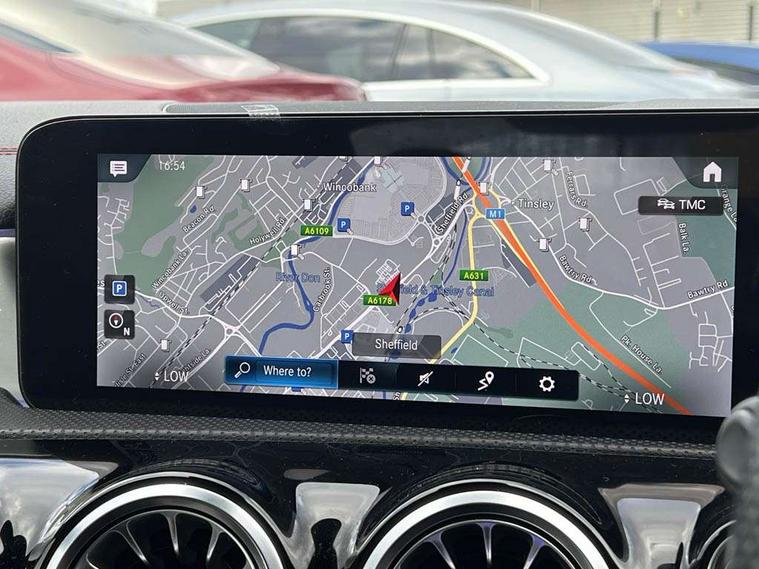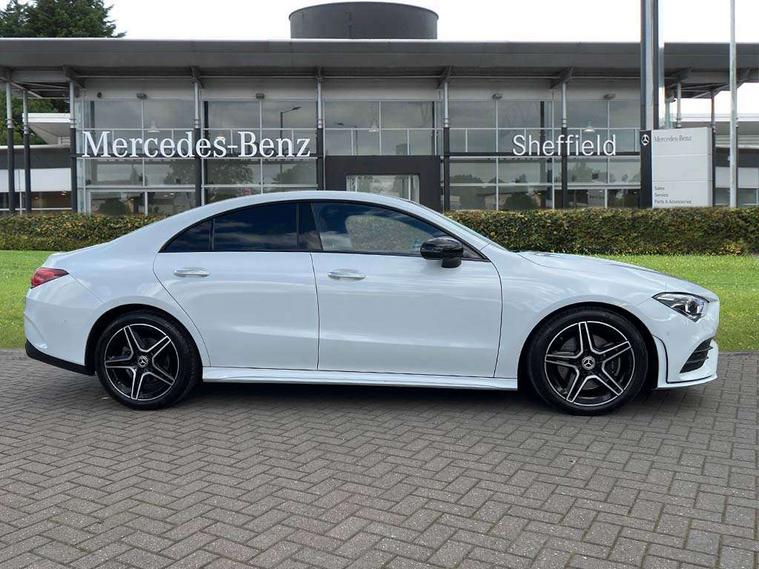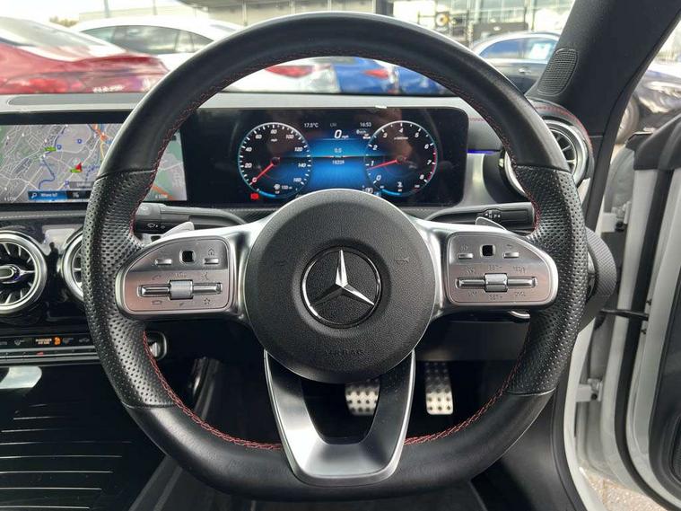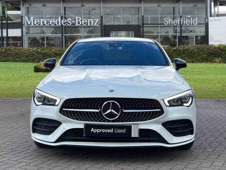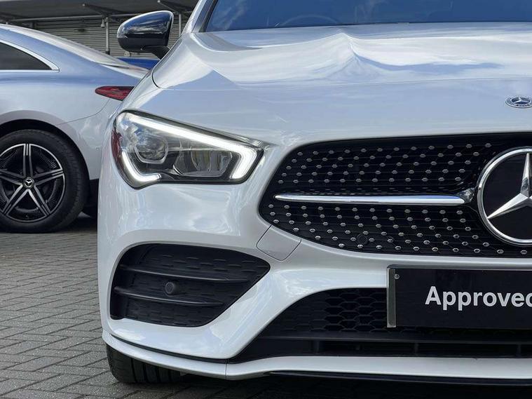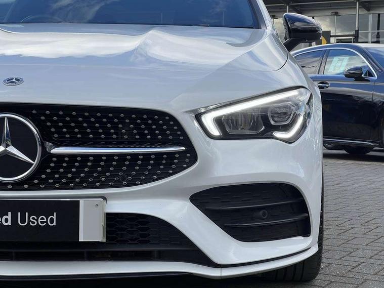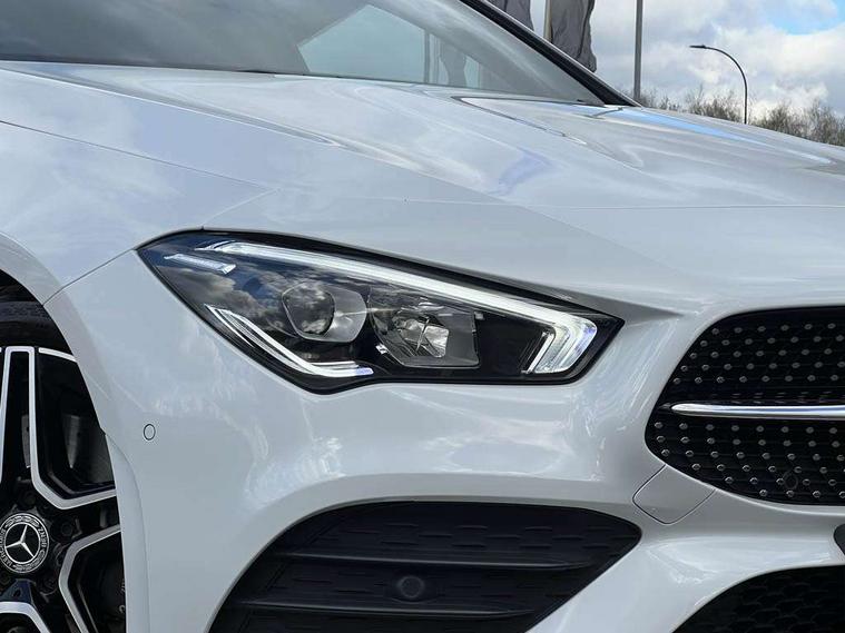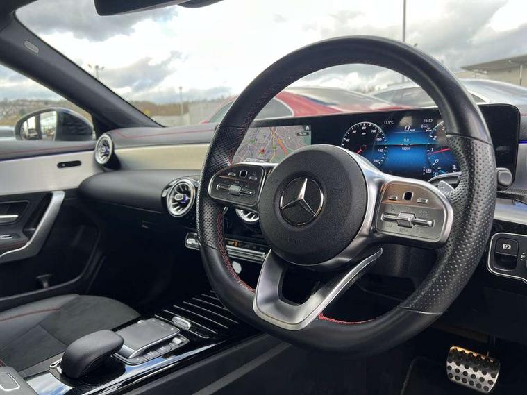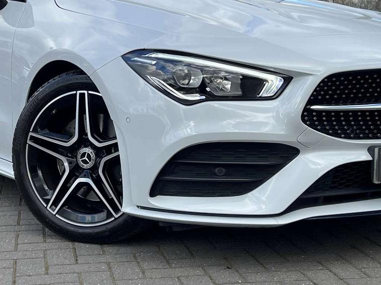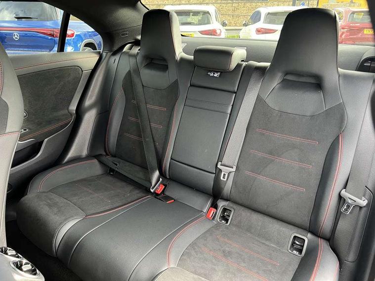 10.25 inch Instrument display with digital cockpit, 10.25 inch touchscreen central media display, Active lane keeping assist, Attention assist - Monitors steering behaviour and long journey fatigue, Bluetooth connection, Car wash mode, Cruise control with limiter, Direct steer system with speed sensitive power steering, DYNAMIC SELECT with a choice of driving modes (ECO, Comfort, Sport and Individual), ECO start/stop function, Fluid level warning indicator for fuel, oil, coolant and washer fluid, Hard-disk navigation, Hey Mercedes Voice activation, Lamp failure indicator, Mercedes me connect including emergency call system, accident recovery, breakdown and maintenance management, Mercedes me remote services, Outside temperature gauge, Owners manual and service booklet in English, Pre-installation of private car share, Preinstallation for Mercedes Benz link, Radio aerial integrated into front and rear windshields, Service indicator (ASSYST), Smartphone integration with Apple CarPlay and Android auto, Speed limit assist, Trip computer in multifunction display with current consumption indicator, Lowered comfort suspension, Rear axle multi-link, DAB digital radio tuner, MBUX multimedia system, Mid-range sound system, USB (type C) ports (2) in stowage compartment and 1 in front of centre console, Adaptive brake lights, AMG body styling with AMG front apron and rear apron and visible exhaust tailpipe in chrome trim elements, AMG bodystyling side skirts, Body colour bumpers, Body colour door handles, Chrome beltline strips, Diamond radiator grille pins in chrome, Electric windows, Electrically adjustable and heated door mirrors with integrated LED indicators, Exhaust system with 2 Visible tailpipe trim elements and rear apron with trim in chrome, Headlamp assist automatic headlamp activation, Heated glass rear windscreen + timer control, High level LED third brake light, Interior mirror with black reading lamps and frameless, LED high performance headlamps with integrated LED daytime running lights, LED tail lamp, Privacy glass with dark tinting on rear side windows and rear window, Rain sensing windscreen wipers with two sensitivity settings, Rear boot, Rear fog lamp, Rear side wing doors, Variable front intermittent wipers, Window line trim strip in chrome, 3 seat bench in 2nd row, 3 spoke flattened bottom nappa leather multifunction steering wheel with perforated leather in grip area, 40:20:40 split folding rear seat backrests, Air conditioning - Two zone thermotronic luxury automatic climate control with display, Air vents with surround in silver chrome, Artico man-made leather upholstery, Automatic child seat recognition sensor, Black roof lining, Brushed stainless steel sports pedals with rubber studs, Floor mats with stitched AMG lettering, Front centre armrest with stowage, Galvanished gear shift paddles on steering wheel, Heated front seats, Illuminated front door sills with changeable cover, Illuminated glove compartment stowage, Interior lighting - 64 colour Ambient lighting, Luggage net on driver/front passenger seat backrest, Manually adjustable front seats, Manually height and reach adjustable steering column, Rear armrest with two integral cup holders for drinks, Rear head restraints, Single front passenger seat, Sport seats with fixed head restraints, Stowage compartment in centre console with retractable cover, Sunvisors with illuminated vanity mirrors, Touchpad on center console, Twin front cupholders, Two outer rear seat isofix and top tether child seat fixing points, Keyless go comfort pack - CLA, Light and sight pack - CLA, Mirror pack - CLA, Night package - CLA, Parking package - CLA, Seat comfort pack - CLA, Active bonnet pedestrain safety measure which detects an impact and raises bonnet by 65mm, Active brake assist includes forward collision warning system with autonomous braking, Adaptive brake assist with hold function and hill start assist, Anti lock braking system (ABS) with brake assist, Black seat belts, Bonnet with power domes, Brake pad wear warning indicator, Childproof locks manually operated for rear doors and electrically operated for rear power windows, Crash responsive emergency lighting, Driver and front passenger head and sidebags, Driver and front passenger windowbags, Drivers knee airbag, Dual stage driver and front passenger airbags, Electric parking brake, Electronic stability programme with acceleration skid control, ESP curve dynamic assist, Front and rear seatbelt reminder, Front passenger seat occupancy sensor, Three point rear seat belts, Tyre pressure monitoring system, Warning triangle and first aid kit, Guard 360 degree guard vehicle protection system with immobiliser and interior protection, Remote central locking and crash sensor with emergency opening function, Light aluminium with longitudinal grain interior trim, 18" AMG 5 twin spoke light alloy wheels painted in black with high sheen finish, Summer tyres, Tirefit tyre sealant kit,