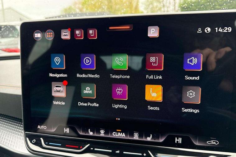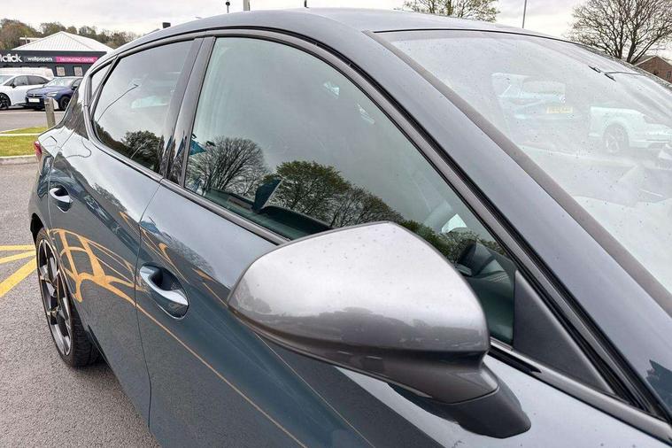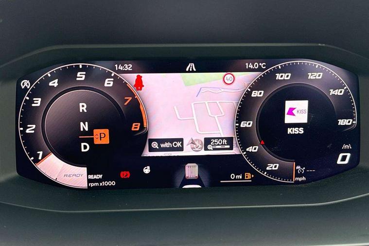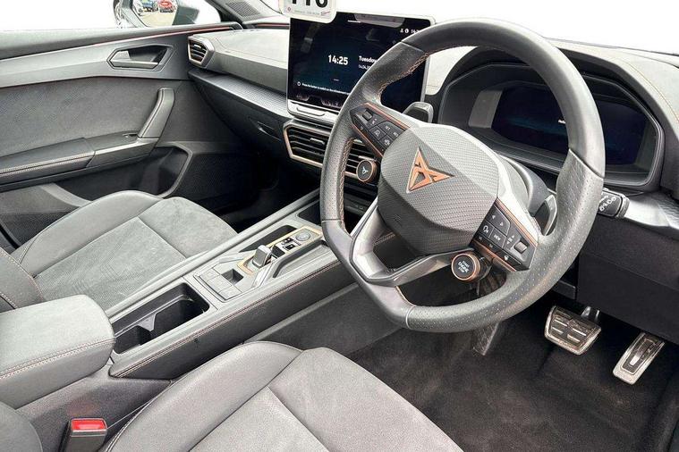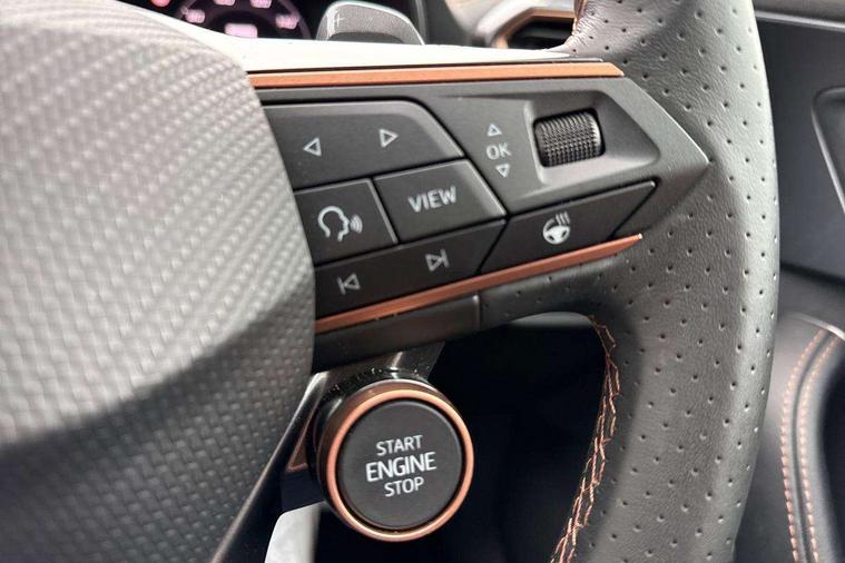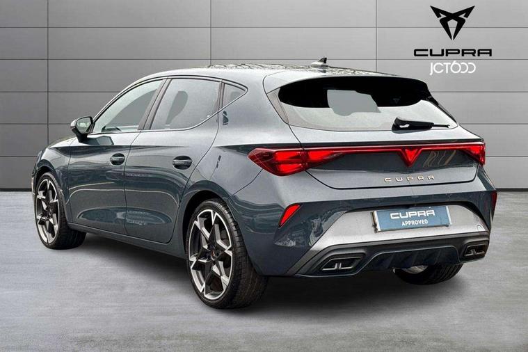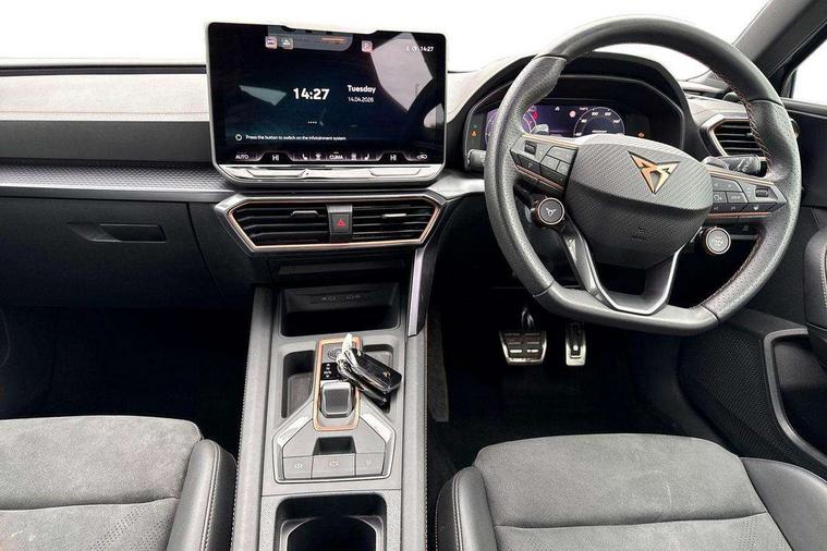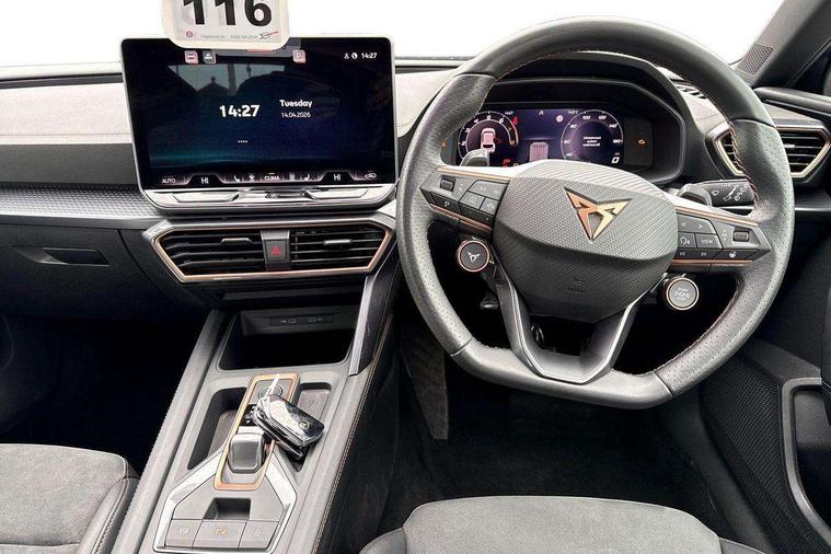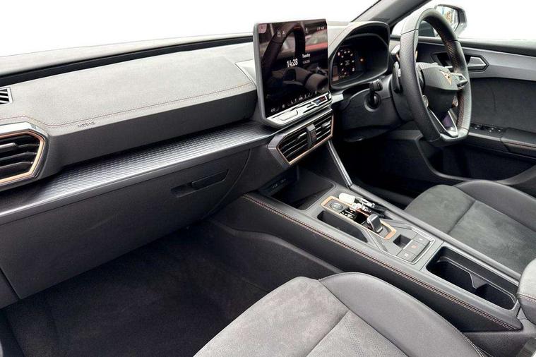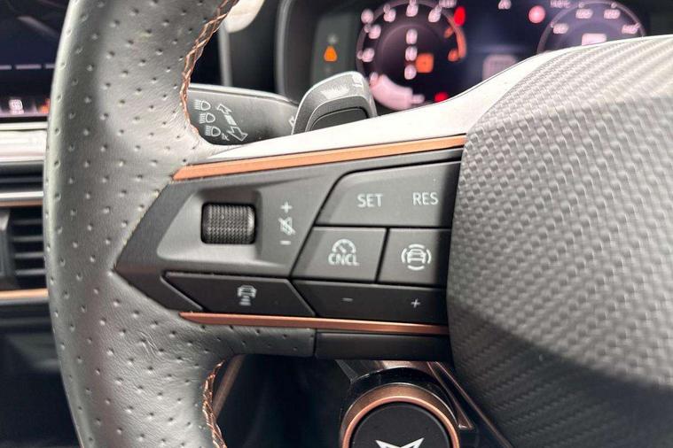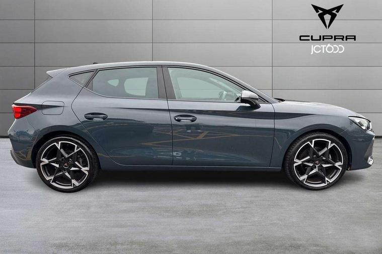 Adaptive cruise control with follow-to-stop and speed limiter, CUPRA drive profile selection with (Comfort/Sport/Individual), throttle response and gearshift mode, Digital cockpit, Dynamic road sign display, E-call, Front and rear parking sensors, Front assist with forward collision warning braking reaction to vehicles, pedestrians and cyclists, Full link smartphone integration with Mirror Link, wireless Apple CarPlay and wired Google Android Auto, Lane assist, Lockable tailgate, Rear view camera, RPM, trip computer, outside temp gauge, instrument light brightness, low fuel warning light, lights on reminder, gearshift indicator, Service interval indicator, Start/stop system with regenerative braking, Wireless phone charger, Auxiliary input socket, Auto dimming rear view mirror, Body colour door handles, Body coloured bumpers, Cupra sports bumpers, Dark tinted rear windows, Electric front/rear windows, Electrically adjustable, heated and folding door mirrors, High beam assist, LED front fog lamps with cornering function, LED headlights with dynamic turn signals, tail lights, rear fog lights with rear coast to coast lighting, LED rear fog lamp, Rain sensing wipers, Rear side wing doors, Rear wash/wipe, Separate daytime running light with automatic headlight control and coming home feature, Third brake light, Welcome light with logo projector in door mirrors, 12v power supply in centre console, 3 seat bench in 2nd row, 5 headrests, 60/40 split rear bench seat with armrest, Ambient lighting (glovebox, footwell, ambient lighting multicoloured), Black headlining, Cupra sports pedals, CUPRA Supersports, heated steering wheel with satellite buttons, Dinamica cloth upholstery, Electrically adjustable driver seat and lumbar support with memory function + manually adjustable passenger seat, Folding boot cover, Four x USB Type C ports (2 in front and 2 in rear), Front and rear reading lights X 4, Front centre armrest, Heated front seats, Height/reach adjust steering wheel, Illuminated interior front door sills, Interior wraparound lighting, ISOFIX points in outer rear seats with top tether anchorage points, Single front passenger seat, Storage pockets on rear of front seats, Sunvisors with illuminated mirror, Three zone climate control, Dynamic and comfort pack - Leon Cupra, Media system plus with 12.9" display + navigation pack - Leon Cupra, 3 point seatbelts on all rear seats, ABS, Brake control system - ESC and brake booster, Child proof door locks, Cupra black brake calipers, Driver and front passenger airbags with front passenger airbag de-activation, front side and curtain airbags, Electronic parking brake, Hill hold control, Rear disc brakes, Seat belt reminder for front and rear seats, Tiredness recognition system, Tyre pressure monitoring system, Anti theft alarm system with interior monitoring in cab, backup horn and towing protection, KESSY Advanced - Keyless start, keyless entry, Locking wheel bolts, Chrome and copper interior detailing, 19" Polar machined sport black and silver alloy wheel with 91Y tyres, Tool kit,