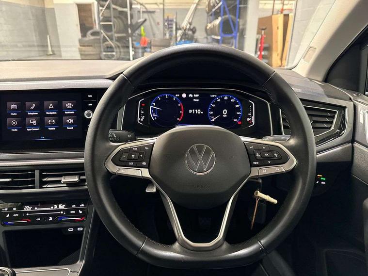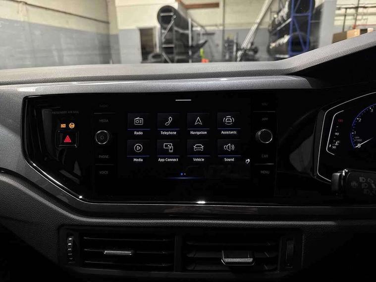 Adaptive cruise control without follow-to-stop and speed limiter, Bluetooth mobile phone interface, Digital Cockpit Pro with 10.25" Display, Driver alert system, Dynamic road sign display, Emergency call service, Power assisted speed sensitive steering, Preparation for We connect and We connect plus, Speedo and rev counter, electronic odometer, trip, service interval display and fuel gauge, Standard rear axle, Travel Assist - Lane keeping system and traffic jam assist, Travel assist including emergency assist, Trip computer, Warning signal and warning light for front and rear seatbelts not fastened, Washer fluid level indicator, Wireless app connect, Front wheel drive, Rear shock absorpion, Start-stop system with battery regeneration (recuperation - energy recovery during braking), DAB Digital radio, Diversity antenna for FM reception, Front and rear 6 speakers, Automatic dimming interior rear view mirror, Automatic headlights, Body colour door handles, Body coloured bumpers and radiator grille with chrome trims, Electric front windows, Heat insulating darkened glass in side and rear windows, Heat insulating glass windscreen, LED separate daytime running lights with coming/leaving home function, Power folding adjustable/heated exterior mirrors and front passenger exterior mirror lowering function, Rain sensor, Rear electric windows, Rear fog light, Rear side wing doors, Rear windscreen washer and wiper with interval delay, Third brake light, 12V power socket in centre console, 2 USB-C ports in the front, 2 USB-C charging sockets on the center console in the rear, 3 rear head restraints, 60/40 split folding rear seat and rear seat bench not split, Air care climatronic air conditoning system with active combination filter and 2-zone temperature control, Ambient lighting, Ceramique headliner, Chrome plated radiator grille inserts, air vent surrounds and light switch surrounds, Door and side trim panel, Driver and front passenger seat height adjustment, Driver/passenger sunvisors with illuminated vanity mirrors, Front + rear carpet mats, Front centre armrest, Front footwell illumination, Front seat backrest storage pockets, Front sports comfort seats, Handbrake lever handle in leather, Isofix child seat preparation easy-fit (for two outer rear seats, and front passenger seat) compatible with I-size, Leather trimmed gear knob, LED interior light with switch off delay and dimmer, 2 reading lights front and rear, Luggage compartment cover, Luggage compartment floor, Luggage compartment lighting, Lumbar adjustment for front seats, Multifunction steering wheel, Single front passenger seat, Standard pedal cluster, IQ LED matrix headlights pack - Polo, Light and vision pack - Polo, 3 point height adj front seatbelts + pretensioners, 3x3 point rear seatbelts, ABS, Driver and front passenger airbag with front passenger airbag deactivation, Drivers and front passengers safety optimised head restraints, ESC (Electronic stability control) + EDL (Electronic Differntial lock) and ASR (Traction control), Extended and predictive pedestrian/ cyclist protection, Front curtain and side airbags with center airbag, Front disc brakes, Hill hold control, Manual child lock in rear doors, Rear drum brakes, Single tone horn, Tyre pressure loss indicator, Alarm with interior protection, Anti-theft alarm system with interior monitoring, backup horn, and towing protection, Anti-theft wheel bolts, Electronic engine immobiliser, Chrome applications on rotary light, mirror adjustment, window regulator switches, outlet with frame in black, Deep iron gloss decorative inserts in dash and front door panels, Low rolling resistance tyres,