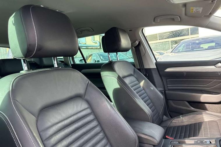 Adaptive cruise control including Front Assist, radar sensor controlled distance monitoring system, City emergency braking system, Driver alert system, Driver profile selection, Exterior temperature gauge with frost alarm, Lane assist, Low washer fluid warning light, Multifunction computer includes visual gear, One touch indicator turn signal, Proactive occupant protection, Security and service including e-call, Speed sensitive power steering, Speedo and rev counter, electronic odometer, trip, service interval display and fuel gauge, Start/Stop function, Traffic jam assist, Warning buzzer and light for front seatbelts unfastened, Wireless app connect, Battery regeneration during braking, Diesel particulate filter, Misfuel prevention device, Aerial for radio integrated into rear windscreen, DAB Digital radio receiver, Auto dimming interior rear view mirror, Automatic headlights with dusk sensor, Automatic leaving home and manual coming home lighting functions, Black radiator grille with chrome louvres, Body colour bumpers, Body colour door handles, Body coloured door mirrors with intergrated indicators, Chrome side window surrounds, Front and rear electric windows, Fully galvanised body, Gloss black finish on B pillar, Heated rear window, High level 3rd brake light, LED rear lights, LED rear number plate lights, Plastic load sill protection, Rain sensor, Rear tinted glass from B pillar backwards, approx 65% tinted, Rear window wash/wipe, Remote electrically adjustable and foldable heated door mirrors including automatic dimming function on drivers side door mirror puddle lights, Silver anodised roof rails, Volkswagen roundel, Warning lights for open tailgate and doors, White instrument lighting, 12V socket in front centre console, 12V socket in luggage compartment, 40:20:40 split folding rear seat backrests, Driver's door storage compartment for 1.0 litre bottle, Extending luggage compartment cover with convenience opening, stowable, Front + rear carpet mats, Front and rear interior lighting with delay and dimming function, Front centre armrest with storage compartment and two rear air vents, Front cupholders x2 with covers, Front passenger storage compartment for 1.5 litre bottle, Height adjustable and removable variable boot floor, Height adjustable rear seat head restraints (x3), Height/reach adjust steering wheel, Illuminated vanity mirrors, Isofix child seat preparation, outer rear seats, Load lashing points x 4 in luggage compartment, Load through provision, Lockable, illuminated, cooled glovebox, Luggage compartment lighting, Rear seat centre armrest with storage compartment, Storage compartment in rear doors, Storage compartment in roof console with cover, Vienna leather upholstery + heated front seats + heated windscreen washer jets, 3x3 point rear seatbelts, ABS (Anti locking brake system) includes BAS (Brake assist) and EBD (Electronic brake pressure distribution), Automatic post collision braking, Disc brakes front and rear, Door open warning reflectors, Driver/Front Passenger airbags, Drivers and front passengers safety optimised head restraints, longitudinal and height adjustable, Drivers knee airbag, Electronic parking brake with auto hold, First aid kit, Front airbags with deactivation switch, Front and rear passenger curtain airbags, Front side impact airbag, Height adjustable front 3 point seatbelts + pretensioners, Hill hold function, Pre crash preventive occupant protection, Rear seat side impact airbags, Rigid safety cell with front and rear crumple zones, Tyre pressure loss indicator, Volkswagen roadside assistance, Warning light for rear seat belts if unfastened, Alarm with interior protection and deactivation via infotainment system, Electronic engine immobiliser, Chrome air vent and instrument surround, Cross hatch decorative inserts in dash and door panels,