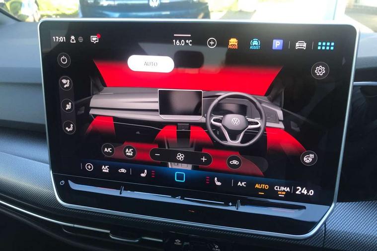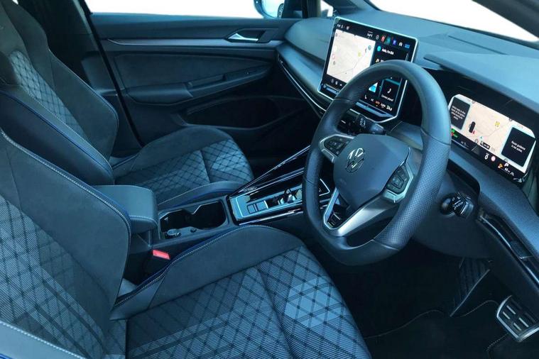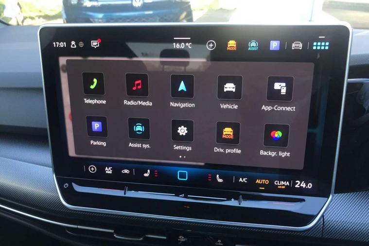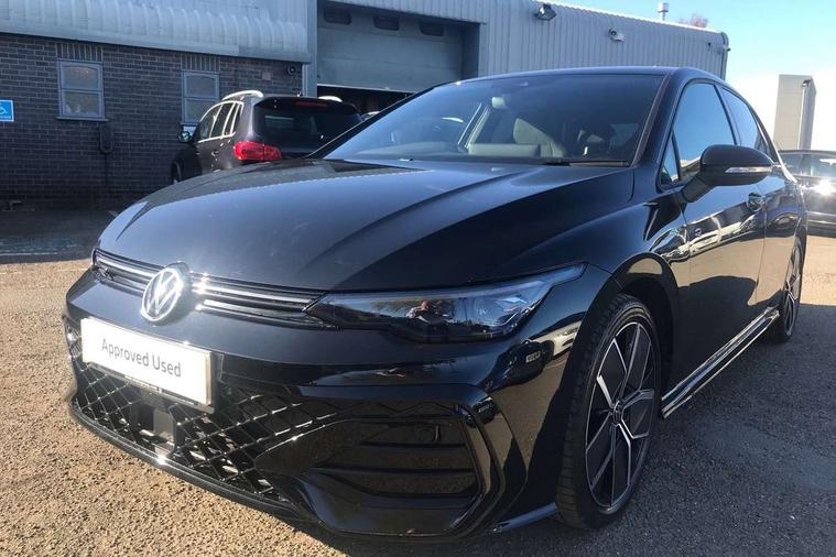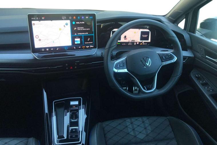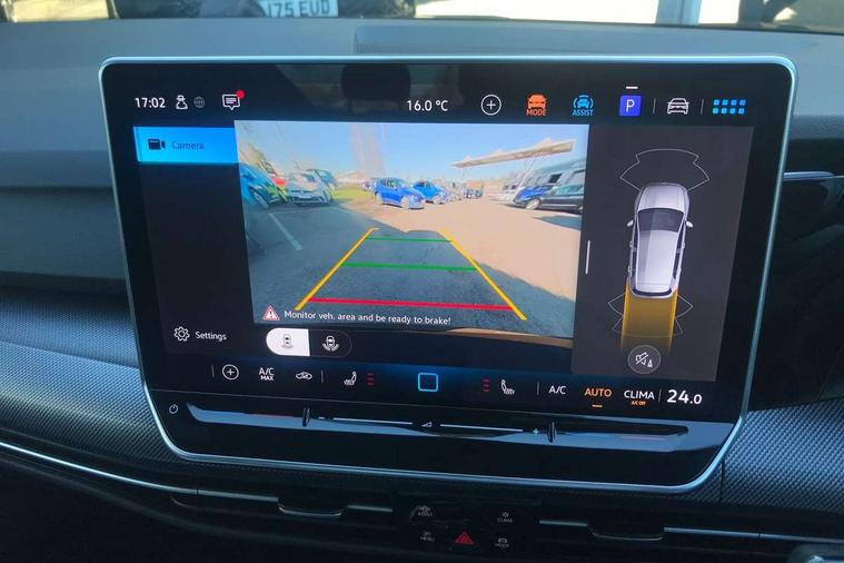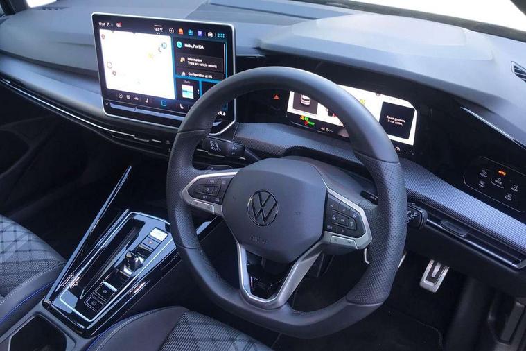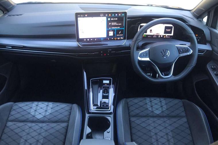 Activated carbon canister, Adaptive cruise control (ACC), Advanced driver attention and drowsiness monitor, Dynamic road sign display, Dynamic steering, E-Sim card for online connectivity, eCall emergency call system, Emergency assist, Lane keeping system Lane Assist, Multi-color Digital cockpit pro, selection of different info profile possible, Multifunction front facing camera for distance control, Navigation system, Oncoming vehicle braking when turning including swerve support, Preparation for light assist system, Speed limiter, Speedo, rev counter, electronic odometer, trip, service interval display, exterior temperature and fuel gauge, Traffic jam assist, Voice enhancer and voice control, Warning signal and warning light for front and rear seatbelts not fastened, We connect plus preparation, We connect preparation, Wireless app connect, Hybrid propulsion system, Petrol Particulate Filter, Start-stop system with battery regeneration (recuperation - energy recovery during braking), XDS electronic differential lock for improved traction and handling, 2 USB C ports in front, 2 USB charging sockets on the centre console in the rear charging capacity upto 45W, Comfort telephony + wireless charging, without wireless aerial connection, Digital radio reception (DAB), Diversity antenna for FM reception, Gaming platform via car app, Infotainment system with 12.9" display, Mobile phone interface with inductive charging feature, 3rd brake light, Auto dimming rear view mirror, Auto headlights, Automatic headlamp activation with Coming home and Leaving home feature, Body colored bumpers in R-Line style, Body colour door handles, Exterior mirrors convex on the left and aspherical on the right, Front and rear electric windows, Heat insulating windshield made of laminated glass, LED daytime running lights, Rain sensor, Rear exhaust tailpipe, Rear fog light on one side and reversing lights on both sides, Rear side wing doors, Rear windscreen washer and wiper with interval delay, Remote electrically foldable door mirrors, puddle lights and reverse activated passenger's door mirror, Volkswagen logo in front, illuminated lighting animation with wake up/goodbye scenario and illuminated door handles, Welcome light with surround lighting, 12V socket in front centre console, 12V socket in luggage compartment, 3 rear head restraints, 3 seat bench in 2nd row, Ambient lighting with 30 colour including LED light unit in front footwell with selectable light colour, Brushed stainless steel pedals, Carpet mats, front and rear, Chrome plated radiator grille inserts, air vent surrounds and light switch surrounds, Front centre armrest, Front seat lumbar support adjuster, Heated front seats, Integrated front head restraints, ISOFIX anchors for child seats on outer rear bench seats and on front passanger seat compatible for i-Size, Luggage compartment lighting, Manual height adjustable front seats, Plastic gear knob, Premium sports seats in front, Rear cupholder and loadthough, Sardegna cloth upholstery with front and outer rear seats Art Velour inner sides of bolsters, Single front passenger seat, Soul black instrument panel, Split folding backrest with centre armrest and unsplit rear seat bench, Storm grey roof lining, Sun visors with illuminated vanity mirrors, Black exterior Styling package with Matrix LED headlights - Golf, Winter package - Golf DSG Estate/Hatchback, 3 point height adj front seatbelts + pretensioners, 3 rear three point seatbelts, ABS, Autonomous emergency braking front assist with pedestrian and cyclist monitoring, Child locks on rear doors, Driver and front passenger airbag with front passenger airbag deactivation, Electronic parking brake with auto hold, ESC (Electronic Stability Control), Extended pedestrian protection measures, Hill start assist, Rear disc brakes, Two tone horn, Tyre pressure loss indicator, Volkswagen roadside assistance, Anti theft wheel bolts, Preparation for alcohol interlock, Decorative inserts carbon grey for dashboard and front door trim panels, 18" Leeds alloy wheels,