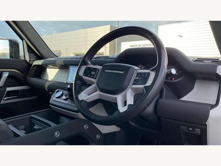 360 degree parking aid, 3D Surround Camera with 360 View, 180 Rear View, Front Traffic Detection, Forward Vehicle Guidance, Tow Hitch Assist and clear sight Ground View, Adaptive cruise control, Android Auto, Apple CarPlay, Assisted tailgate with soft close, Blind spot assist, Bluetooth system, Brake pad wear indicator, Clear exit monitor, Connected navigation pro, Driver condition monitor, Electric power assisted steering (EPAS), Interactive driver display, Lane keep assist, Push button start, Rear traffic monitor, Traffic sign recognition with adaptive speed limiter, Trip computer, Wade Sensing, 8 speed automatic transmission, All wheel drive system, Twin speed transfer box, DAB Radio (Digital Audio Broadcasting), Pivi pro connected, Automatic headlight levelling, Automatic headlights, Black exposed rear recovery eyes, Centre high mounted stop light, Electric heated/power fold door mirrors with approach lights and auto dimming driver side, Electric windows with one touch open/close and anti-trap, Follow me home lighting, Heated rear window with timer, Heated windscreen, LED tail lights, Privacy glass, Puddle lights, Rain sensing windscreen wipers, Rear fog lights, Rear side wing doors, Rear wiper, Side hinged tailgate, Trailer stability assist, X-Dynamic badge, 12V power socket in loadspace, 3 seat bench in 2nd row, Alpine lights, Durable rubber cabin flooring, Durable rubber loadspace flooring, Footwell lights, Front passenger isofix child seat attachment, Loadspace cover, Loadspace Hook, Multifunction steering wheel, Overhead stowage for sunglasses, Premium cabin lighting, Rear headrests, Rear ISOFIX, Rear reading lights, Single front passenger seat, Standard seat configuration, Storage glovebox, Sunvisors with illuminated vanity mirrors, Online pack with data plan - Defender, 5 x 3 point seatbelts, ABS, Brake hold function, Cornering brake control (CBC), Customer configurable autolock, DSC - Dynamic Stability Control, EBD - Electronic brakeforce distribution, Electric parking brake (EPB), Emergency brake assist, Emergency braking, ESP + traction control, Front airbags with passenger seat occupant detector, HDC - Hill descent control, Hill launch assist, Low traction launch, Power operated child locks, Remote for (e-Call, Optimised assistance call, InControl app, Climate, beep and flash and door), RSC - Roll stability control, Seat belt reminder, TPMS (Tyre pressure monitoring system), Alarm, Immobiliser, Intrusion sensor, Keyless entry, Locking wheel nuts,