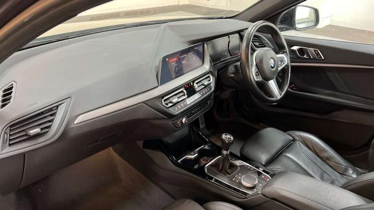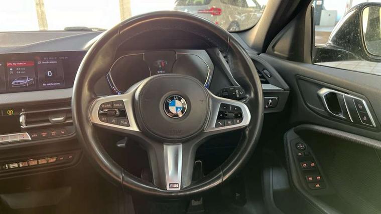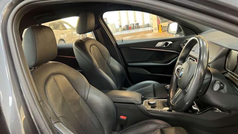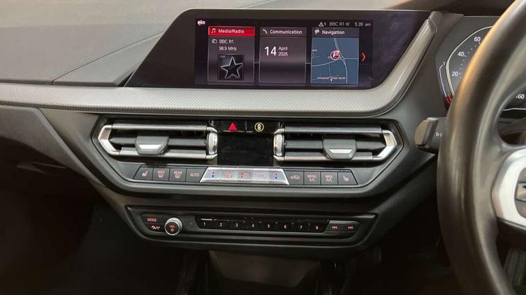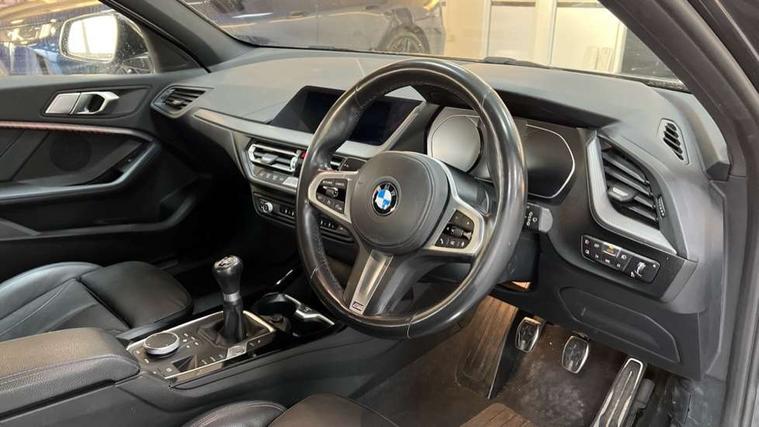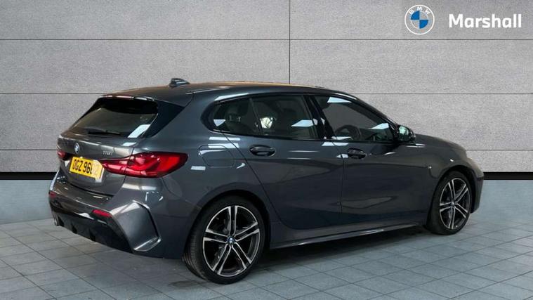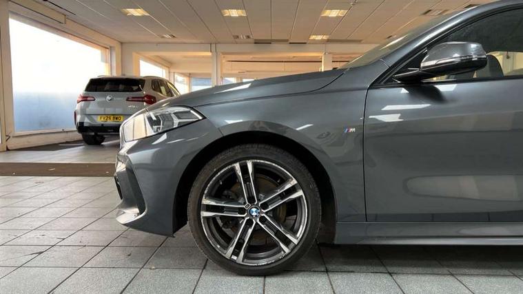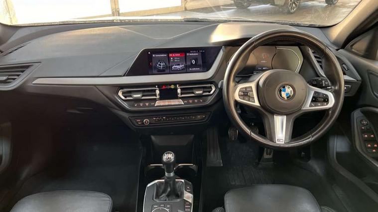 Active guard plus, Attentiveness assist, BMW Online services, BMW Teleservices, Check Control warning system for monitoring of lights and door/luggage compartment open warning, Connected eDrive Services, Cruise control with brake assist, Eco pro mode, Electric power steering, Front/rear Parking distance control, Integrated owners handbook, On board computer, Optimum shift indicator, Personal Profile, Pull away assistant, Speed limiter, Anti roll bar front and rear, Balancer shaft, Double VANOS, Drive Performance Control, Electronic differential lock, M sports suspension + self levelling, Petrol Particulate Filter, VALVETRONIC engine management, Bluetooth audio streaming, DAB Digital radio, Auto dimming rear view mirror, Body colour door handles, Body colour mirror caps, Chrome 'M' logo side designation, Chrome exhaust tailpipe in single, round (Exhaust tailpipe, stainless steel - single, round), Chrome kidney grille frame with Satin Aluminium struts, Direction indicator side lights in exterior mirrors, Electric folding and anti dazzle exterior mirrors, Fading support, Follow me home headlights, Front and rear electric windows with open and close fingertip control, anti trap facility and comfort closing, Front door sill finishers in black plastic with BMW designation, Green tinted heat protection glazing, Headlight beam throw control, High gloss shadow line exterior trim, High level third brake light, LED daytime running lights, LED front fog lights, Lightweight engineering, Matt black air guide grilles, Matt black roof moulding, B pillar finisher and wheel arch trim, Matt black window frame, Model designation on right side of tailgate, Nearside reverse light in rear light cluster, Rain sensor including auto headlights activation, Rear fog lights, Rear window wiper, Shark fin antenna, Visible VIN plate, Welcome lighting, Windscreen wipers with integrated washing jets, 12V power socket in centre console, 2 cupholders in front centre console, 3 rear seat head restraints, 3 Spoke M sports leather steering wheel, Anthracite headlining, Anthracite Velour floor mats, Bag hook in luggage compartment, Child seat ISOFIX attachment for two outer rear seats and front passenger seat with anchorage points, Conditioned based service, Dakota leather upholstery with perforation and contrast stitching, Driver and front passenger seat heating, Driver side folding compartment in instrument panel, Folding rear clothes hook, Folding rear seats, Four grab handles integrated in roof lining, Front and rear door pockets, Front and rear side armrest integrated into door trim, Front armrest foldable with integrated storage compartment, Front sports seats with electric side bolster adjustment, Gearshift lever with M designation, Glove compartment, Height adjustable front head restraints, Manual adjust steering wheel, Multi-function controls for steering wheel, Rear seat backrest with manual 60:40 split folding with 3 top tether clips integrated on rear of seat panels, Storage compartment in centre console, Sun visors with vanity mirrors and insert tab, Two extra lashing eyes in luggage compartment, Two zone automatic air conditioning, Extended Lighting pack - 1 Series, Extended storage pack - 1 Series, Interior lights pack - 1 Series, Luggage compartment pack - 1 Series, M Sport exterior styling aerodynamics pack - 1 Series, 2 tone horn, 3 point seatbelts on all seats, front pyrotechnic belt tensioners, stopper and belt force limiters, rear coded belt buckles, Airbags - Front driver and passenger, front and rear head, front side, curtain head protection, Anti lock braking system (ABS) with brake assist, BMW emergency call, Brake drying, Braking readiness, Crash sensor activating central locking release, hazard warning lights, fuel cut off, interior lighting + activation of safety battery terminal clamp, Driver and front passenger seat belt security check, Dynamic stability control + (DSC+), Dynamic Traction Control - DTC, Electrically operated hand brake, Front passenger manual airbag deactivation, Rear child proof door locks, Seatbelt warning, Side impact protection, Tyre pressure monitoring system, Warning triangle and first aid kit, Automatic drive away locking facility, Central locking switch for all doors, fuel filler cap and luggage compartment, Deadlocking function system to all doors, Locking wheel bolts, Remote control with integrated key with High-gloss Black inlay and M designation and 1 button for open/ close lock, window, open luggage compartment, Start/stop button with comfort go keyless engine start and auto start stop deactivation button, Thatcham Cat.1 alarm and immobiliser, Contrast stitching on instrument panel, Reduced rolling resistance tyres,