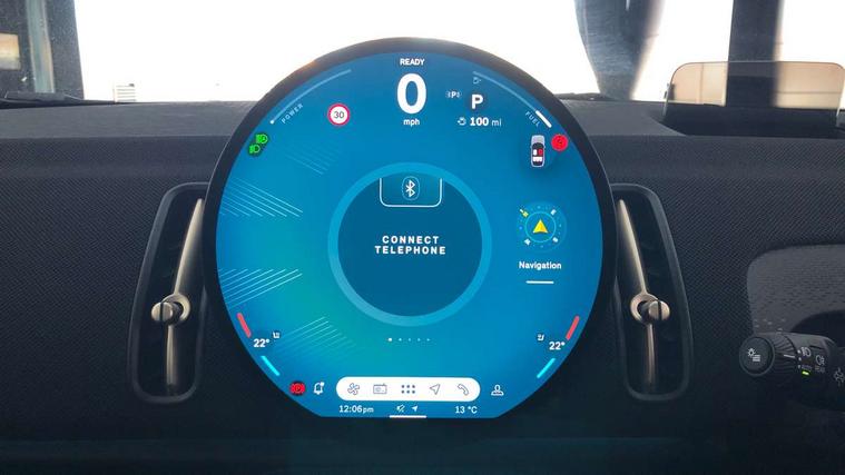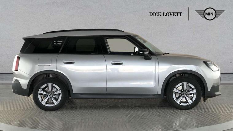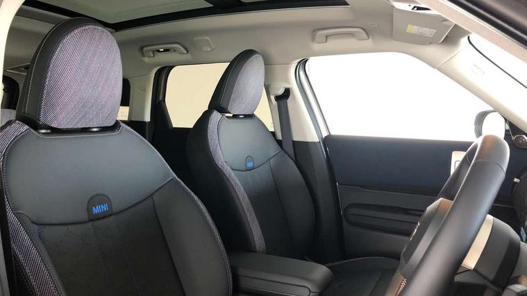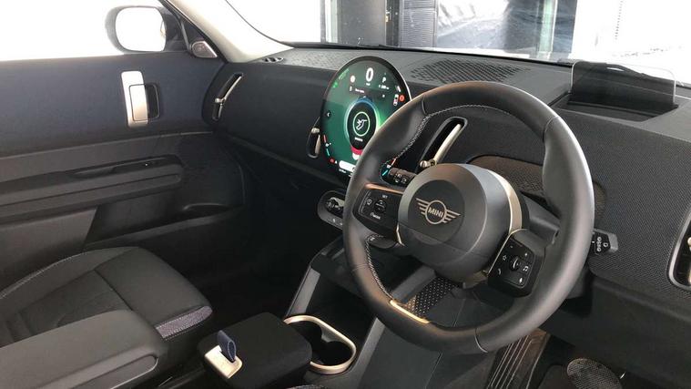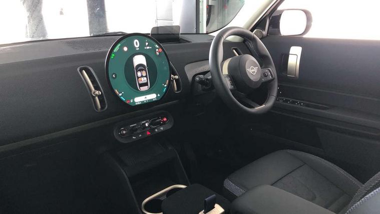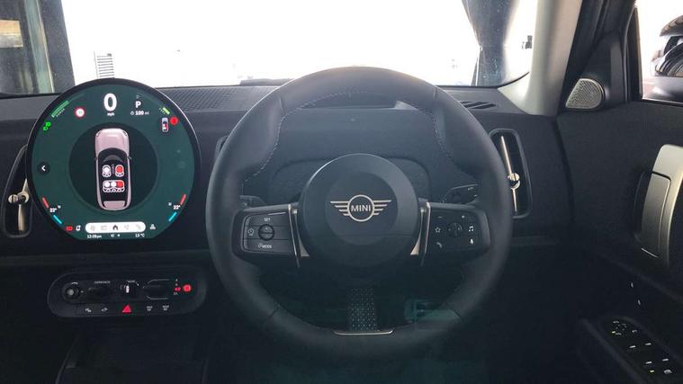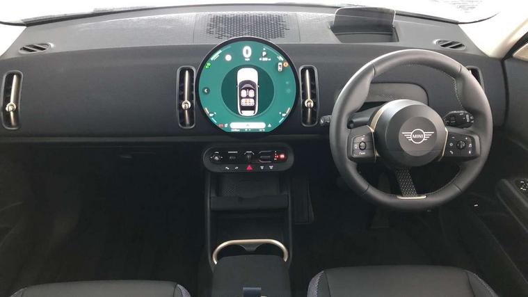 Bluetooth connection, Circular OLED Screen, Compatible mobile phone bluetooth with audio streaming, Cruise Control (DCC), Digital dashboard display, Driving assistant, E-call, Electro-mechanical speed dependant steering assistance, MINI Experience Modes, Mini navigation system, MINI TeleServices, Parking assistant in camera and ultrasound based assistance system, rear view camera, parking aid and distance control, Auto transmission with Paddles, Larger capacity fuel tank, 6 speakers, DAB Digital radio, Personal eSim, Auto tailgate, Electric adjustable heated door mirrors, Front and rear electric windows, Heated rear window, LED daytime running lights, LED Headlights, LED rear lights, LED third brake light, Rain sensor with auto headlights, Rear side wing doors, Rear window wiper, Roof rails, 3 seat bench in 2nd row, 60/40 split rear bench seat, Auto air conditioning, Floor mats, Front armrest, Front headrests, Heated steering wheel, Height and length steering column adjustment, Light headliner, Rear headrests, Single front passenger seat, Sport Vescin Steering Wheel, Sunvisors with vanity mirrors, Vescin/Cloth upholstery, 3x3 point rear seat belts, 6 Airbags - front, side, head and seat belt tensioners, ABS, DSC - Dynamic Stability Control, Electronic handbrake, Electronic Stability Programme (ESP), Front ISOFIX (iSize), Hill hold assist, Hill start assist, Manual rear child locks, Traction control, Tyre pressure monitoring system, Warning triangle, Alarm system with tilt sensor, monitoring doors, bonnet interior and tailgate, Auto drive away locking, Deadlocking function, Electronic vehicle immobiliser, Locking wheel bolts, Remote control locking, Start/stop toggle with keyless go, Black/Blue dashboard knit, MINI Mobility Kit,