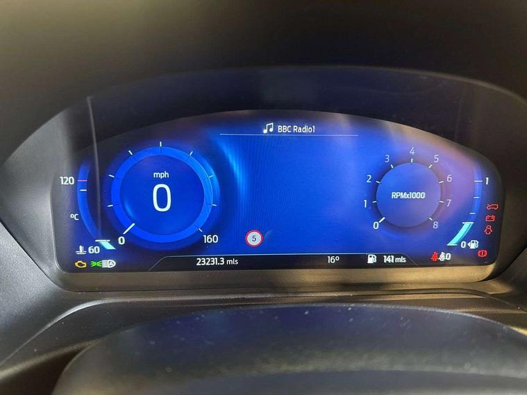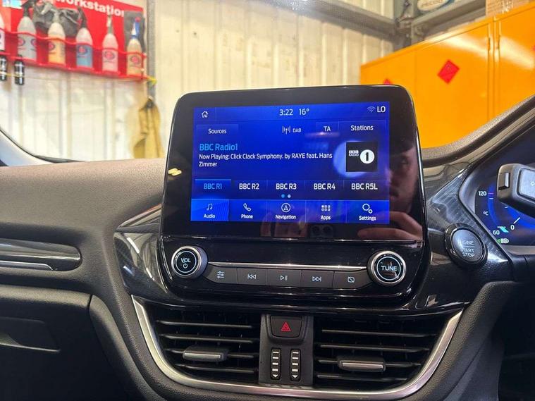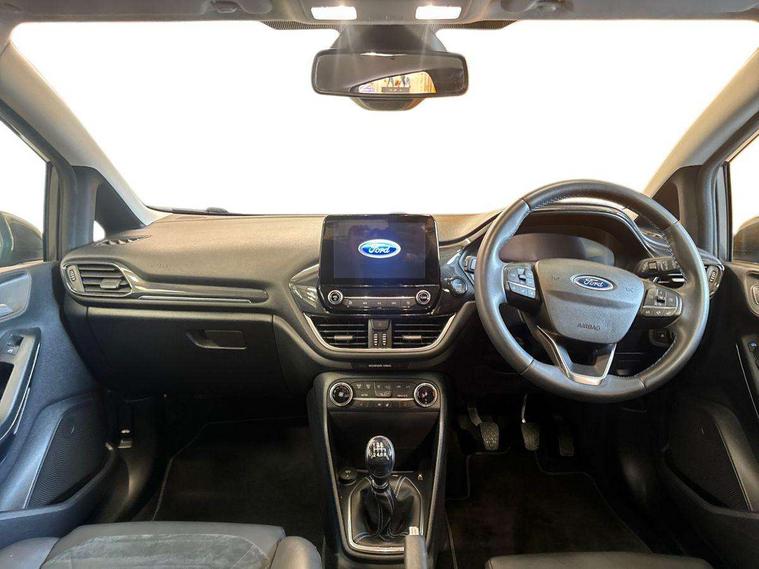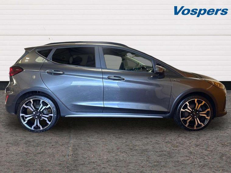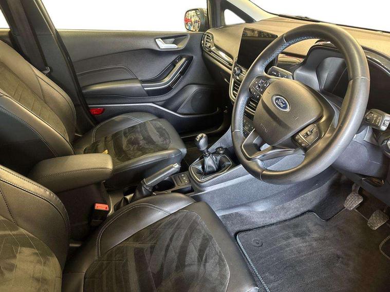 4.2" TFT instrument cluster screen, Bluetooth system, Electric power steering, Extra selectable drive modes ( Trail, Slippery), Ford easy fuel, Rear parking distance sensors, Selectable drive modes (Normal, Sport, Track), Traffic sign recognition, Trip computer, Rough road suspension with increased ride height adjust, 2 USB ports, Auxiliary input socket, B&O Premium audio system with 8" touchscreen, 10 speakers, 360 degree sound system, Ford SYNC 3 navigation system and Ford pass connect, DAB Digital radio, Steering wheel mounted controls, Auto high beam, Body colour bumpers, Body colour door handles, Body colour rear spoiler, Chrome beltline trim, Cornering front fog lights, Electric front windows/one touch facility, Electric rear windows, LED Night signature to rear lights, Mesh design front grille with chrome surround, Power foldable door mirrors with puddle lights, Quickclear heated windscreen, Rain sensing wipers and auto dimming rear view mirror, Rear privacy glass, Rear wiper, Rugged body styling kit with active front wing badges, 3 spoke leather trimmed steering wheel with audio control, 60/40 split folding rear seat, Adjustable head restraints, Boot carpet, Centre console with opening armrest, 2x cupholders, 12v and USB, Chrome inner door handles, Drivers and Passenger lumbar support, EATC - Electronic Auto Temperature control, Footwell illumination, Front floor mats in velour, Front map reading lights, Front seat and rear pockets, Height adjustable passenger seat, Illuminated glovebox, Leather gaiter, LED ambient lighting, Load area light, Manual 4-way driver seat adjust, Overhead console with sunglasses holder, Pollen filter, Rake/reach adjustable steering wheel, Sensico partial premium upholstery, Sensico wrapped steering wheel, NCAP Pack - Fiesta, 3 point seatbelts on all rear seats, ABS+EBA, Curtain airbags, Driver and passenger airbags, Drivers knee airbag, Electronic stability control with hill start assist, Front passenger airbag deactivation, Front side airbags, Seatbelt warning, Two tone horn, Tyre pressure monitoring system, Ford keyfree system with Keyless entry and keyless start, MyKey system, Remote central locking & engine immobiliser, Thatcham Cat.1 alarm, 18" 5 spoke alloy wheels with shadow black machined finish,