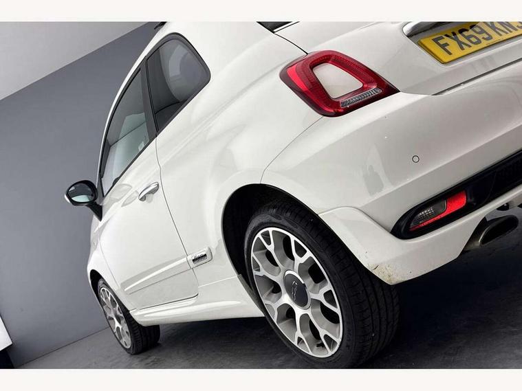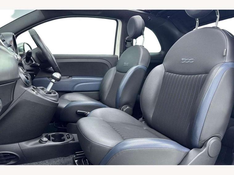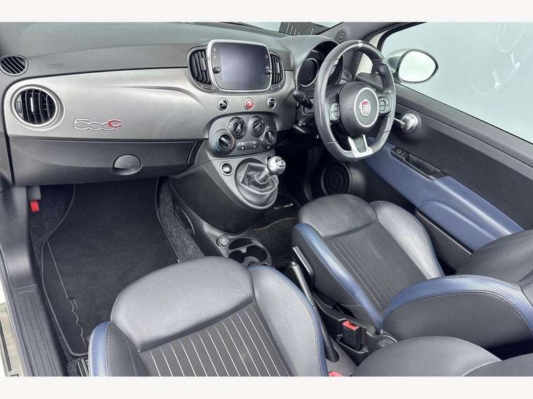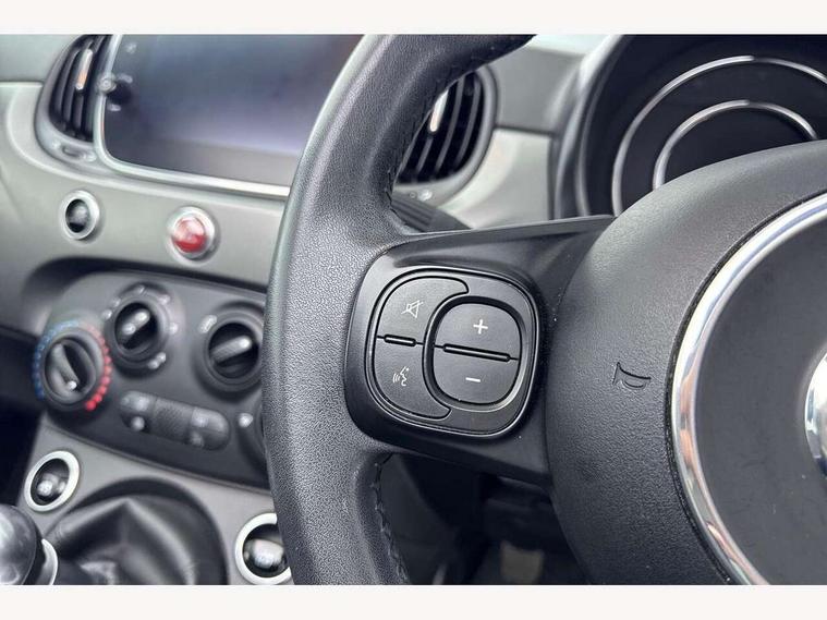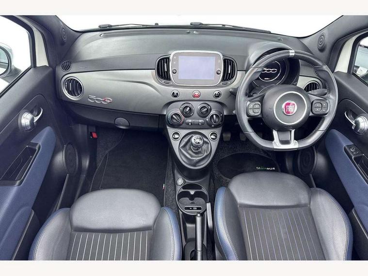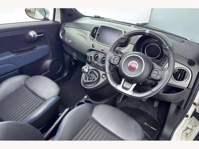 7" HD Touchscreen Radio with 3D Navigation, Bluetooth, USB, Aux-in and DAB, 7" TFT instrument cluster, Apple car play/Android Auto, Cruise control, Dualdrive PAS, External temperature gauge, Rear parking sensor, Speed limiter, Stop/start system, Rear speakers, Body colour sports bumpers, Dark tinted rear windows, Electric front windows, Electrically adjustable painted door mirrors with defrosting / external temperature sensor, Front fog lights, Heat insulated glass, Heated rear window, LED daytime running lights, Satin Graphite exterior trim, 1 passenger grab handle, 50/50 split folding rear seats with height adjustable rear headrests, Auxilliary 12V power socket, Chrome entry kick plates, Front headrests, Front seats with memory function, Height adjustable drivers seat, Height adjustable steering wheel, Isofix child seat preparation, Techno leather steering wheel with audio controls, Sport pack - 500C, 7 airbags - Driver, passenger, side, window and drivers knee airbags, ABS/EBD, ESC + ASR/MSR + HBA + Hill holder, Tyre pressure monitoring system, Automatic door locking, Locking fuel filler cap, Remote central locking,