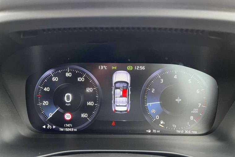 12.3" Active TFT crystal driver's instrument display, 9" centre console portrait touch screen, Adjustable steering wheel force, Bluetooth hands free telephone kit, Drive mode selector, E-call, Lane keep assist with driver alert control, Oncoming Lane Mitigation, Power operated tailgate, Sensus navigation with European mapping and traffic information, Speed limiter, Speed sensitive steering, Voice activated control for key functions, Volvo on call, Sports chassis, DAB Digital radio, Steering wheel mounted remote controls, Adaptive brake lights with high level LED brake lights, Auto dimming interior mirror, Automatic headlamp levelling, Dark tinted windows for rear door side windows and cargo compartment, Electric adjustable/heated/auto folding door mirrors, Front aluminium tread plates, Front and rear electric windows, High gloss black front and rear skid plate, High gloss black lower front bumper, High gloss black mesh front grille with high gloss black surround, High gloss black sensus surround deco, High gloss black window trim, Home safe and approach lighting, Integrated roof rails in high gloss black, LED Headlights + Active high beam incorporating daytime running lights, Rain sensor with automatic windscreen wiper activation, Rear side wing doors, Rear wiper, Roof antenna, Roof spoiler, Visible VIN plate, 12V socket in front tunnel console and luggage compartment, 2 zone electronic climate control and rear air vent, 3 seat bench in 2nd row, 60/40 versatile split folding rear seat, A-pillar parking ticket holder, Centre console cupholders and storage, Charcoal headlining, Front footwell illumination, Front headrests, Front reading light and theatre lighting, Front seat cushion extensions, Glovebox bag hook, Height/reach adjustable steering column, Illuminated glovebox, Illuminated luggage compartment, Illuminated vanity mirrors, Isofix attachments on outer rear seats, Leather gearknob, Load protection net, Multi directional lumbar support, Rear armrest / integral cup holders / storage tray, Rear coat hook, Single front passenger seat, Sports floor mats, Sports pedals, Sports tailored steering wheel, Underfloor cargo storage, Vanity mirror with ticket holder, 3x3 point rear seatbelts, City safety includes pedestrian, cyclist and large animal detection and front collision warning with full auto brake, Drivers knee airbag, Dual stage driver/passenger airbags, Electronic parking brake with auto hold, First aid kit, Front and outer rear seatbelt reminder and pretensioners, Front seats SIPS airbags, Hill descent control, Hill start assist, Inflatable curtain, Passenger airbag cut-off device, Road sign information display, Run off Road Mitigation, Run off Road Protection, SIPS (Side Impact Protection System), Slippery road and hazard light alert, Stability and Traction Control with Spin control, Engine Drag Control and Corner Traction Control, Tyre pressure monitoring system, Vehicle deceleration control with Anti-lock Brake System, Electronic Brake Distribution and Emergency Brake Assist, Warning triangle, WHIPS whiplash protection system - front, Anti-theft alarm including immobiliser/volume sensor + level sensor, Care key with user defined top speed, Key integrated remote control central locking + fuel flap with deadlocking system and auto open/close power windows, Locking wheel nuts, Private locking for tailgate, Cutting edge aluminium inlay, Lower dashboard, tunnel console and door panel in charcoal,