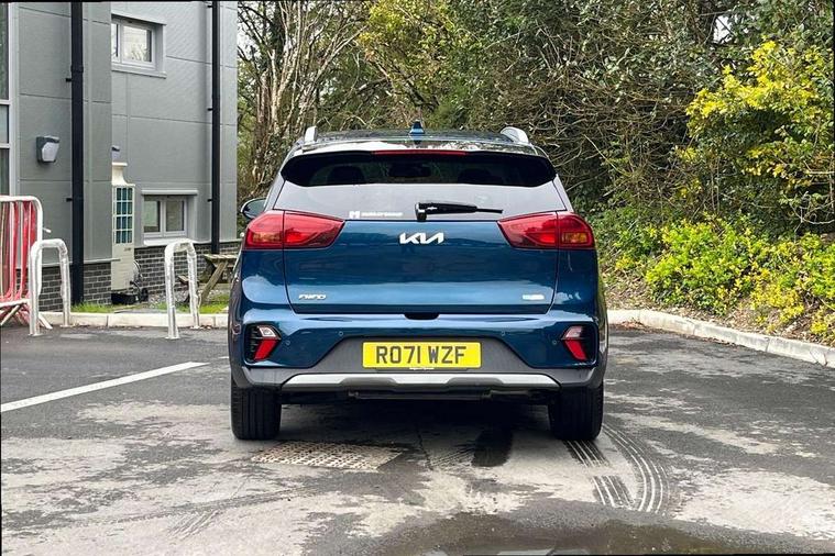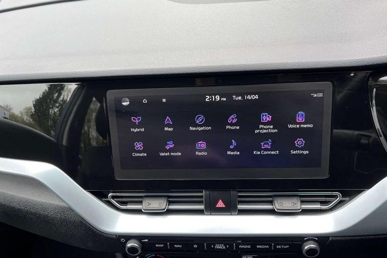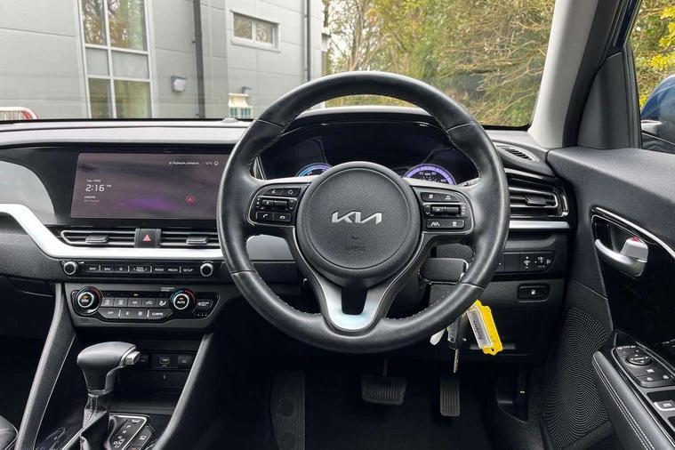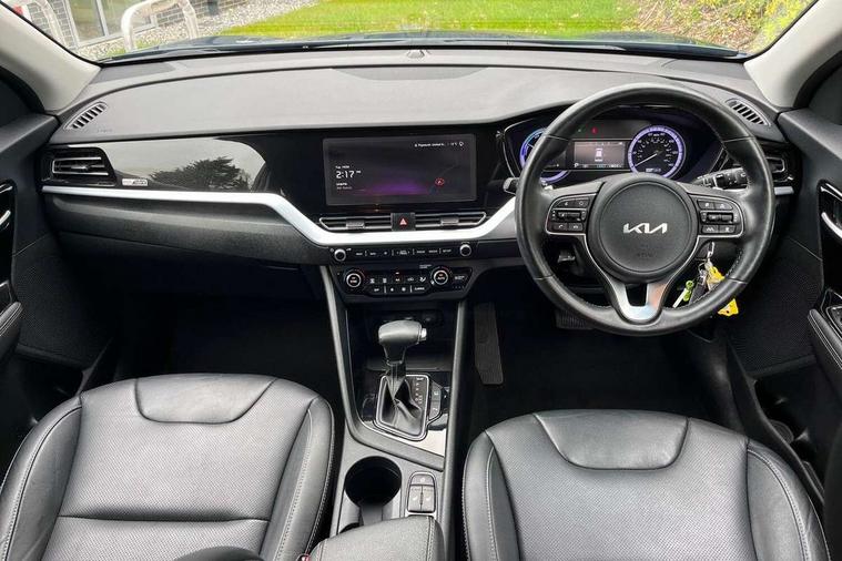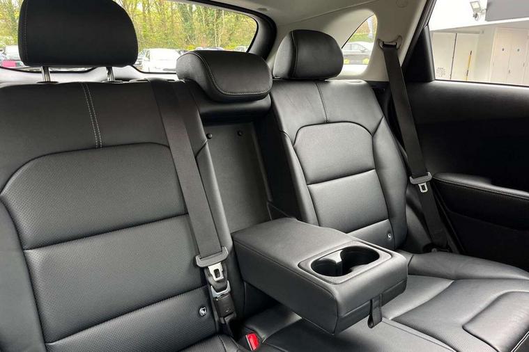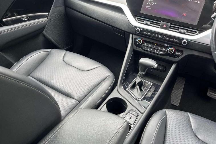 10.25" Touch screen satellite navigation with european mapping and traffic messaging channel, 7" full supervision cluster with TFT colour display, Adaptive smart cruise control function (SCC) with stop and go, Apple car play/Android Auto with voice control, Digital clock, Drive mode selector, Driver attention warning, Emergency stop signalling system, Forward collision avoidance assist, Front parking sensors, Kia connected services featuring TomTom live, Lane Following Assist (LFA), Lane keep assist, Motor driven power steering, Rear parking sensors, Reversing camera, Speed limiter, Trip computer with distance/fuel consumption/average speed, UVO connect, Wireless Smartphone charger, 'Shark fin' mobile antenna, 6 speakers, Bluetooth with music streaming, DAB Radio with MP3, Steering wheel mounted controls, USB connection located in centre console, USB port, All round electric windows with drivers and front passenger auto up/down function, Auto dimming rear view mirror, Automatic defog system, Automatic headlight control system, Black beltline mouldings, Black side sills, Black wheel arch mouldings, Body colour bumpers, Body coloured/high gloss door mirrors, Chrome door handles, Driver's side wide angle mirror, Electrically folding/adjustable/heated door mirrors with LED indicators, LED daytime running lights, LED fog lights, LED rear combination lights, Manual headlight levelling, Matt black radiator grille, Privacy glass - Rear windows and tailgate, Projector headlamps, Rain sensing front wipers, Rear spoiler, Rear wiper, Roof rails, Solar glass, Waistline black paint, Welcome and follow-me home light functionality, 3 x passenger assist grips, 60/40 split/folding 2nd row of seats, 8 way electric adjustable drivers seat, All-round height adjustable headrests, Aluminium door scuff plates, Bulb type overhead console lamp with sunglasses case, Centre console storage box, Centre room lamp, Cupholders in rear armrest, Driver/passenger sunvisors with illuminated vanity mirrors, Drivers seat power lumbar support, Dual zone automatic air conditioning, Front and rear door storage, Front/rear centre armrests, Headlining in Light grey, Heated front seats, Heated steering wheel, High gloss black lower console trim, High gloss black steering wheel trim, Illuminated ignition key hole, Interior door lock/unlock function, ISOFIX Child seat top tethers and anchor fixings, Leather trimmed door armrests, Leather trimmed steering wheel, Leather trimmed steering wheel and gearshift, Leather upholstery, Luggage area lamp, Luggage area load cover, Luggage net hooks, Paddle shifts, Passenger seat height adjuster, Satin finish inner door handles, Seatback pocket - driver, Seatback pocket - front passenger, Tilt/telescopic adjustable steering wheel, Under floor storage box, Ventiliation ducts to rear compartment, Towing pack - Niro, 3 point seatbelts on all seats, ABS, Automatic unlocking of doors in case of impact, Drivers knee airbag, Electric parking brake with auto hold function, Electronic stability control, Front passenger airbag cut-off switch, Height adjustable front seatbelts, Hill start assist control (HAC), Traction control, Twin curtain airbags with roll over sensor, Twin front and side airbags, Tyre pressure monitoring system, Alarm system and engine immobiliser, Deadlocks, Locking wheel nuts, Remote central door locking with fold away key, Speed sensitive auto door locking, Visible vehicle identification number, High gloss black centre fascia, High gloss black door inserts, 18" alloy wheels, Tyre mobility kit,