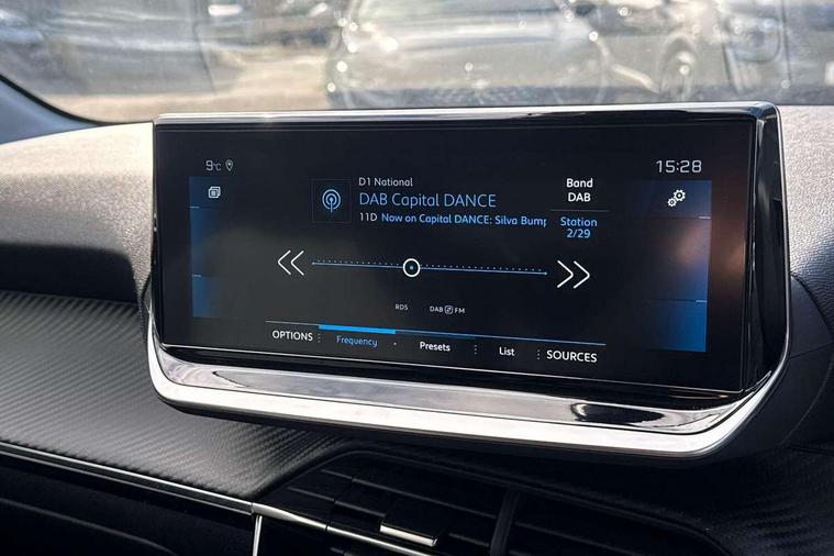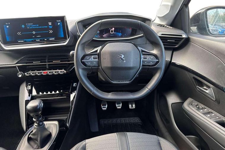 Bluetooth telephone facility, Driver attention warning, Emergency call service, Exterior temperature indicator with ice warning, Lane keep assist, Mirror screen with mirror link, apple carplay and android auto, Multi function trip computer, PEUGEOT i-Cockpit with compact steering wheel, PEUGEOT i-Cockpit with configurable 3D headup instrument panel, Push button start, Smart phone docking station, Speed limit recognition and recommendation, Start/stop system, Visio Park 1 with 180 degree Colour reversing camera, 2 front USB socket with USB-C, 2x USB sockets in rear, 6 speakers radio with mp3 compatible, DAB Digital radio, Voice recognition for radio, navigation and telephony features, 2 X Rear number plate lights, Automatic hazard light activation upon heavy brake application, Automatic lights, Automatic windscreen wipers, Body coloured exterior door handles, Dark tinted rear side and tailgate windows, Diamond black rear spoiler (roof), Eco LED headlights, Electric front windows + one touch + anti-pinch, Electric rear windows with one touch/anti-pinch, Electrically adjustable, heated and power folding door mirrors, Electrochrome rear view mirror, Follow me home headlights, Gloss black finish on B pillar, Gloss black rear cluster connecting strip, Gloss black window surround, Headlights left on audible warning, LED daytime running lights with 3 claw headlight with distinctive tooth design, LED side indicator lights integrated into door mirrors, LED third brake light, Model designation badges front and rear, Nera black door mirror shells, Radiator grille chrome chequered, Rear bumper with gloss black finish, Rear full LED 3D peugeot signature claw effect lights with daylight function, Rear reversing lights, Rear side wing doors, Rear windscreen wiper triggered automatically in reverse gear, Roof mounted aerial, Roof spoiler, Single exhaust tailpipe, Tailgate with heated rear windscreen and wiper blade, Variable front intermittent wipers, 1/3 to 2/3 split folding rear seats, 12V socket, 3 seat bench in 2nd row, Aluminium pedals and front door sills, Automatic air conditioning, Black rods on rear headrests, Black wheel nut covers, Driver and front passenger comfort seats, Driver and front passenger seat manual adjustment in longitudinal and back rest angle, Driver seat mechanical height adjustment, Electric power steering with reach and rake adjustable steering column, Front centre armrest with storage compartment, Front interior light with 2 reading spotlights, Gear shift indicator, High centre console with 2 cup holders, Leather steering wheel, Map pockets on the backs of the front seats, Piano keys gloss black plated toggle switches to access main functions of the vehicle, Rear centre headrest, Roof lining - light grey, Satin chrome gear lever, Seatbelt unfastened on the move audible and visual alert for front and rear seats, Single front passenger seat, Tri material cloth/leather upholstery, 2x Isofix child seat fitting on outer rear seats, 3 rear 3 point seatbelts, ABS (Anti-lock Braking System) with EBD (Electronic Brakeforce Distribution) and EBA (Emergency Braking Assistance), Adaptive driver and front passenger airbags with passenger airbag deactivation function, Child locking functionality on rear doors, Driver/front passenger side airbags, Electric parking brake, ESP with Hill Assist, Front and rear curtain airbags, Front and rear disc brakes, Front optimised safety headrests and 3 x rear retractable headrests with height adjustable, Front three point retractable seatbelts with force limiters, Pedestrians active safety brake, Tyre pressure sensor, Acoustic vehicle alert system (AVAS), Automatic door locking when moving off, Deadlock, Electronic code immobiliser, Remote central locking, Thatcham cat. 1 alarm with anti lift sensor, Carbon effect Dashboard, front and rear door panel finish, 16" Soho diamond cut alloy wheels, Tyre puncture repair kit,