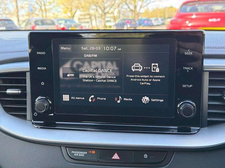 4.2" supervision colour cluster display, 8" colour touch screen, Android auto with voice control, Apple car play with voice control, Bluetooth with Voice Recognition & Music Streaming, Cruise control + speed limiter, Driver attention warning, Emergency call service, Forward Collision-Avoidance Assist (FCA) - City/Pedestrian/Cyclist, Lane Following Assist (LFA), Lane keep assist, Motor driven power steering, Reversing camera with dynamic guide lines, Tailgate, Trip computer, Intelligent Stop and Go, 1x Rear USB-C, 2x Front USB (1x USB-C, 1x USB-A), 7 speakers, DAB Radio with MP3, Rear console USB C-type charge port, Steering wheel mounted controls, All-round Electric Windows with Front Auto Up & Down Function, Automatic headlights, Black side sill mouldings with chrome inserts, Black wheel arch trim, Body colour bumpers, Body colour exterior door handles, Body colour rear spoiler, Body coloured door mirrors with matt black lower housing, Body coloured shark fin antenna, Electrically adjustable and heated door mirrors, Heated rear window with timer, High beam assist, High glossy black and satin chrome rear skid plate, LED Bi-Function projection headlights, LED daytime running lights, LED High-mounted Brake Light, LED rear fog light, LED rear lights, Matt black and satin chrome radiator grille, Rain sensor, Rear side wing doors, Rear wiper, Satin chrome window surround, Silver roof rails, Smaller XCeed badge on rear left hand tailgate, Tinted glass, Variable front intermittent wipers, Windscreen Washer Level Warning, 3 seat bench in 2nd row, 60/40 split folding rear seat, Air conditioning, All-round height adjustable headrests, Centre console storage box/armrest, Chrome interior door handles, Cloth door trim, Cupholders in centre console, Driver and passenger front seat pockets, Driver's seat height adjuster, Front and luggage area 12V power sockets, Front and rear door storage, Front cabin map light with sunglasses case, Illuminated driver and front passenger sunvisors with vanity mirror, ISOFIX Child seat top tethers and anchor fixings, Leather steering wheel, Luggage area light, Luggage area parcel shelf, Luggage hooks, Premium cloth upholstery, Rear cabin light, Rear centre armrest with cupholders, Single front passenger seat, Tilt/telescopic adjustable steering wheel, Towing pack - XCeed, ABS with Electronic Brakeforce Distribution (EBD) and Brake Assist System (BAS), All round 3-point seatbelts, Dual horn, Electronic stability control (ESC) and vehicle stability management (VSM), Front passenger airbag cut off switch, Height adjustable front seatbelts, Hill start assist control (HAC), Impact sensing auto door unlocking, Manual handbrake, Rear door child safety locks, Seatbelt reminder warning, Traction control, Twin curtain airbags, Twin front airbags, Twin front side airbags, Tyre pressure monitoring system, Alarm system, Engine Immobiliser & Deadlocks, Locking wheel nuts, Remote central door locking with fold away key, 16" alloy wheels, Tyre mobility kit,