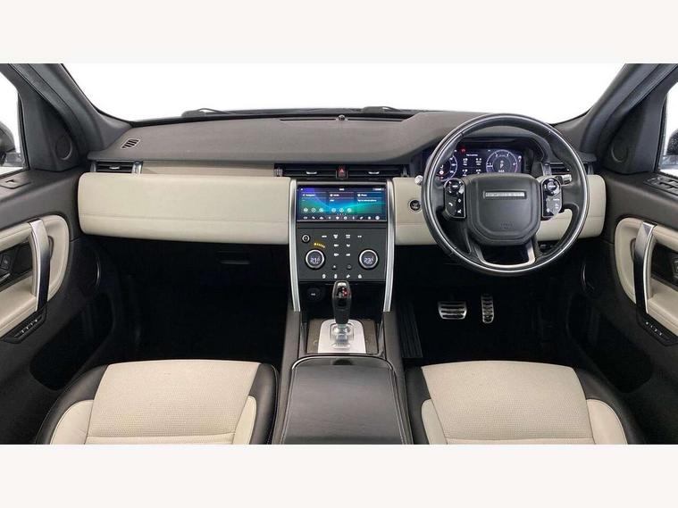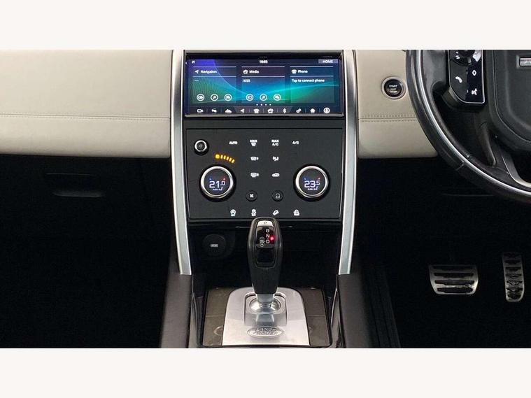 Android Auto, Apple CarPlay, Blind spot assist, Connected navigation pro, Driver condition monitor, InControl remote premium, Interactive driver display, Lane keep assist, PAS, Powered tailgate/boot lid, Service interval indicator, Traffic sign recognition with adaptive speed limiter, Trip computer, All terrain progress control, Coil suspension system, Diesel particulate filter, Terrain Response 2, Bluetooth connectivity including audio streaming, Digital Audio Broadcast radio-DAB, Steering wheel mounted audio controls, Automatic headlight levelling, ClearSight interior rear view mirror, Door mirror memory, Electric front/rear windows, Illuminated metal front treadplates with R dynamic branding, Power fold, auto-dimming, heated door mirrors with approach lights, Rain sensing windscreen wipers, Rear wiper, Black gearshift paddles, Bright metal pedals, Front passenger isofix child seat attachment, Illuminated vanity mirrors, Third row dual adjustable individual seats, Tilt/reach adjustable steering wheel, Online pack - Discovery sport, 3 point seatbelts on all seats, ABS, Brake hold function, Collision mitigation braking system, Cornering brake control (CBC), Driver/Front Passenger airbags, Drivers knee airbag, Electronic brake force distribution, Electronic parking brake, ESP + traction control, High speed emergency braking, Hill descent control, Hill launch assist, Pedestrian airbag system, Roll stability control, Side and curtain airbags for front and 2nd row seats, Tyre pressure monitoring system, Battery Back Up System (BBUS) with tilt sensor, Intrusion sensor, Keyless entry, Locking wheel nuts, Centre stack rails in noble chrome,