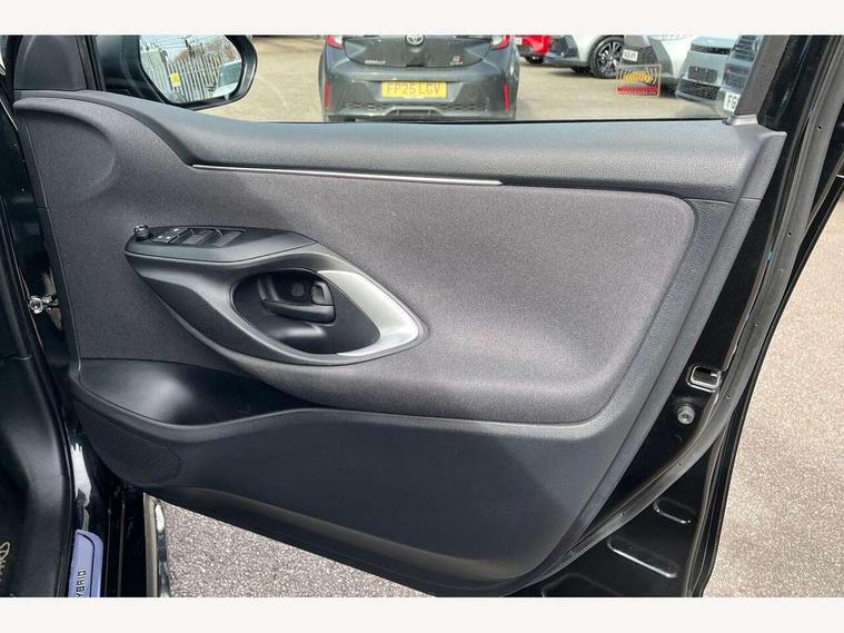 Adaptive cruise control, Adjustable speed limit with speed warning, Bluetooth connectivity, Colour binocular inspired displays with digital speedometer, E-call, Electric power steering, Hybrid energy display, Multi information display switches on steering wheel, Reversing camera, Smartphone integration with Apple CarPlay and Android auto, Tailgate, Voice recognition, Vehicle Stability Control (VSC), 4 speakers, 8" Multimedia display touch screen, USB connection, Acoustic windscreen glass, Auto windscreen wipers, Automatic headlights, Body coloured door mirrors, Electric adjustable heated door mirrors, Follow me home headlights, Front auto power windows with anti jam protection, Full LED rear lights, LED daytime running lights, LED front fog lights, LED front light guide, LED Headlights, LED High mounted stop lamp, LED Indicators, LED rear light guide, Manual headlight levelling, Painted chequered front grille, Rain sensor, Rear auto power windows with anti jam protection, Rear privacy glass, Rear side wing doors, Rear spoiler, Rear wiper, Shark fin antenna, Turning signal integrated indicators in door mirrors, Variable front intermittent wipers, 3 adjustable rear headrests, 3 spoke leather steering wheel, 60/40 split folding rear seat, Active headrests, Adjustable boot height, Auto air conditioning, Coat hooks in rear grab handles, Cup holders (2 front & door), Data Communication Module (DCM) connected services, Fabric upholstery, Front armrest, Glovebox, Grey roof lining, Height adjustable driver's seat, Isofix seat fixing, Leather gearshift, Pollen filter, Shopping bag hooks, Single front passenger seat, Tilt/telescopic steering column, 3 point seatbelts on all rear seats, ABS+EBD+Brake assist, Electronic parking brake, Emergency brake light system (EBS), Front passenger airbag on/off switch, Front seatbelt reminder, Hill start assist control (HAC), Rear child proof door locks, Rear seat belt reminder, Supplemental Restraint System (SRS) 8 airbags: Driver & passenger's airbags, dual side curtain airbags, side impact airbags, front centre airbag, Toyota Safety Sense 2, Precollison + Night time Pedestrian & Cyclist Detection, Lane Trace Assist, Auto High Beam, Intelligent ACC & Road Sign Assist, Tyre pressure warning system, 2x Master key, Alarm/immobiliser, Remote powered central double locking doors, Soft touch instrument panel, Space saver spare wheel,
