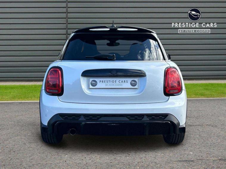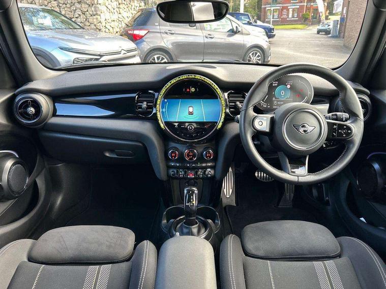 Apple CarPlay, Automatic start/stop function with brake energy recuperation, Compatible mobile phone bluetooth with audio streaming, Cruise control with brake assist, Electro-mechanical speed dependant steering assistance, Flexible car sharing preparation, Instrument cluster, MINI Driving Modes - centre toggle switch to control driving setting (sport, mid and green), Mini E-call, MINI TeleServices, On board computer, Rear park distance control, Service interval indicator, Adaptive suspension, Double Vanos system, Fully variable valve control, Gear change indicator display, High precision injection, Performance Control, Steptronic transmission with double clutch, 8.8" touchscreen with LED ring, FM tuner and DAB digital radio, 3rd brake light, Automatic headlight activation switch, Body colour fuel filler cap, Chrome border high gloss black slats radiator grille, Dynamic brake lights, Electric front+rear windows, Exhaust tailpipe on left with chrome finisher, Heated rear window, Heated windscreen washer jets, JCW Aerodynamic kit - Front and rear bumpers with sporty JCW styling and part-painted side sills with MINI John Cooper Works door sill finishers, John Cooper Works rear spoiler, LED headlight with closed ring and daytime driving lights, Metal door sill strips with MINI imprint, Model logo Cooper on right of tailgate, Rain sensor window wipers, Rear fog lights, Rear LED lights with union jack design, Rear side wing doors, Rear window wiper, Side scuttle panel with integrated indicator, Sun/heat protection glass, White indicator lenses, 12V Accessory socket in centre console, 3 seat bench in 2nd row, 4 lashing eyes in luggage compartment, 60/40 split folding rear seat, Anthracite headliner including grab handles and clothes hooks, Carbon black colour line - Knee roll and door armrest, Chrome interior highlights, Cupholders, Front and rear isofix with front passenger airbag deactivation, Front and rear velour floor mats, Glove compartment, Height and length steering column adjustment, Interior lighting with 12 different colours across the dashboard, underneath door bezel with illuminated laser-engraved design on central display, JCW Sport seats with integrated headrests, adjustable thigh support and John Cooper Works logo, Leatherette gearshift lever and handbrake gaiters, LED reading lights, vanity mirror lights, front foot well light and spotlight on front seats, Manual air conditioning, Mechanical seat adjustment - forward/back & backrest for front seats and driver seat height adjust, Multifunction steering wheel, Single front passenger seat, Storage compartments in doors, Sunvisors with vanity mirrors, Walknappa leather steering wheel with grey seam and John Cooper Works badge on Piano Black lower steering wheel spoke, Navigation pack without Apple Carplay - Mini Hatchback, Piano black exterior pack - Mini Hatchback Cooper, 3 point seatbelts on all five seats, 6 Airbags - front, side, head and seat belt tensioners, Anti-lock braking system (ABS), Child locks on rear doors, DSC - Dynamic Stability Control, Front and rear disc brakes, Hill start assist, Single tone fanfare horn, Tyre pressure monitoring system, Alarm system with tilt sensor, monitoring doors, bonnet interior and tailgate, Electronic vehicle immobiliser, Start/stop toggle with keyless go, Piano black interior trim, Tool kit,