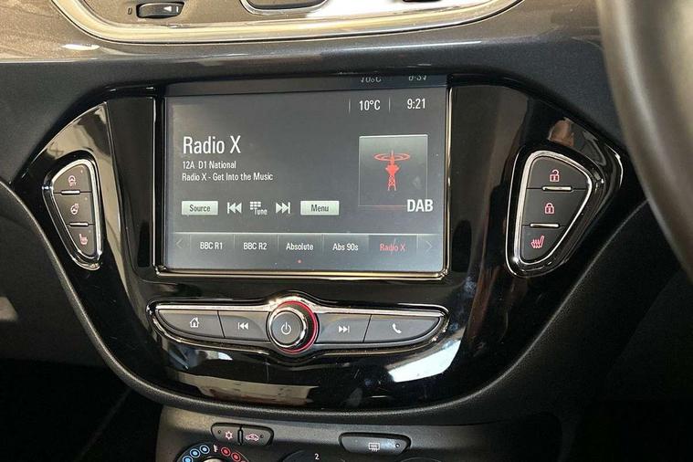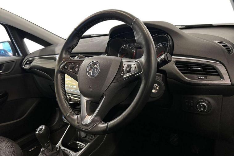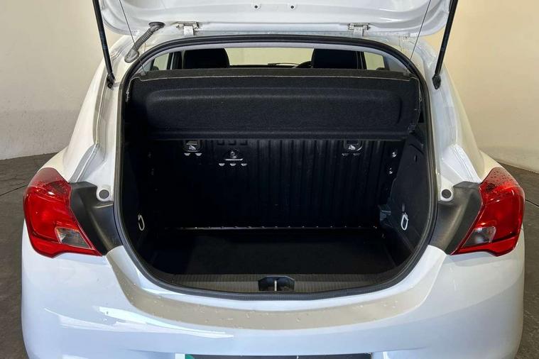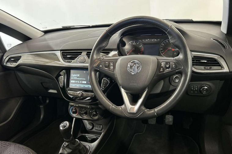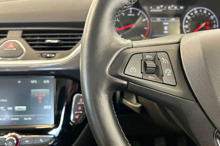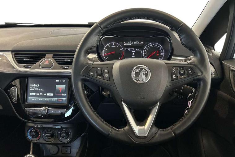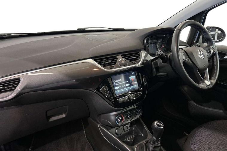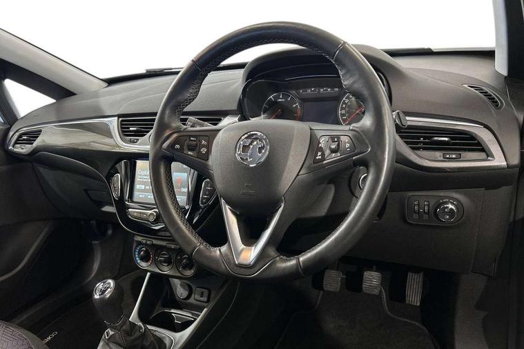 Apple car play/Android Auto, Central facia display, Cruise control + speed limiter, Digital fuel gauge with low fuel warning light, Digital water temperature gauge, Electric speed sensitive power steering, Exterior temperature gauge, Lights on audible warning, Rev counter, Service indicator, Speed warning indicator, Speedometer, Trip computer, White graphics on black background, Front anti roll bar, Steering wheel mounted audio/cruise controls, Black foil on B-pillars, Body colour bumpers, Body colour door handles, Body coloured door mirrors, Chrome front grille, Dipping rear view mirror, Door to door illumination, Electric adjustable/manual folding heated door mirrors (wide angle on driver's side), Electric headlight beam leveling, Electrically operated front windows with safety auto reverse/one touch facility, Front fog lights with black surround, Halogen headlights, Hazard warning lamps, Headlamp levelling, Heated rear window, Heated windscreen, High level LED centre brake light, Intermittent rear wash/wipe, Laminated windscreen, LED daytime running lights, Rear fog lights, Rear wiper, Side window demist vents, Two speed windscreen wipers with variable intermittent wipe, Welcome lighting, Windscreen demist vents, 12V electrical accessory socket in front, 3 spoke steering wheel, Anti submarining ramps in all seats, Centre console with cupholders, Chrome gear knob, Chrome interior door handles, Cloth upholstery, Comfort front seats, Driver's and front passenger's sunvisors, Driver's and front passenger's tiltable assist handles, Driver's and passenger's vanity mirrors with flip up cover, Driver's vanity mirror, Easy entry reclining front seats with memory, Four adjustable facia vents, Front courtesy lights, Front door pockets, Front map reading lights, Front seat belt pre-tensioners with load limiters, Glovebox with lid, Grab handles, Height adjustable driver's seat, Height adjustable front headrests, Height adjustable rear head restraints with adjustable backrest, Illuminated luggage compartment, Instrument panel light dimmer, Interior tailgate handles, Isofix child seat mounting points on outer rear seats, Load restraining lashing points, Luggage compartment cover, Multi function steering wheel, Pollen filter, Reach + rake adjustable steering column, Rear bottle holder, Rear courtesy lights, Reclining front seats, Storage box on driver's side lower facia, Stowage facility for luggage compartment cover behind rear seats, Twin gas assisted tailgate struts, Sight and light Pack - Corsa, Winter pack - Corsa, Anti-lock braking system (ABS), Brake assist function, Electronic brake force distribution, Electronic Stability Programme, Energy absorbing steering column, Front and rear seatbelt reminder, Front and rear seatbelt unfastened audible warning and warning light, Front seatbelt force limiters, Gas pressure dampers, Height adjustable front seatbelts, Hill start assist, Manual passenger airbag deactivation function, Pedal release system, Rear child proof door locks, Reinforced passenger safety cell, Side impact protection beams, Six airbags - Driver's dual stage airbag/front passenger's dual stage airbag/front seat side impact airbags/full size curtain airbags, Three 3 point rear seatbelts, Three inertia reel lap/diagonal seatbelts, Traction control, Tyre pressure monitoring system, Electronically protected audio, Engine Immobiliser & Deadlocks, Key left in ignition audible warning, Locking wheel bolts, Remote control central locking, Visible vehicle identification number, Rhutenium facia with chrome effect inserts,