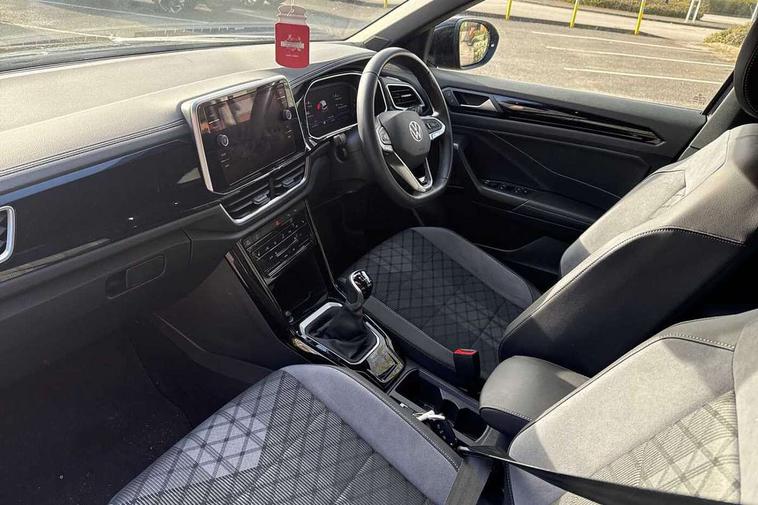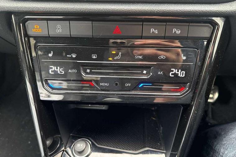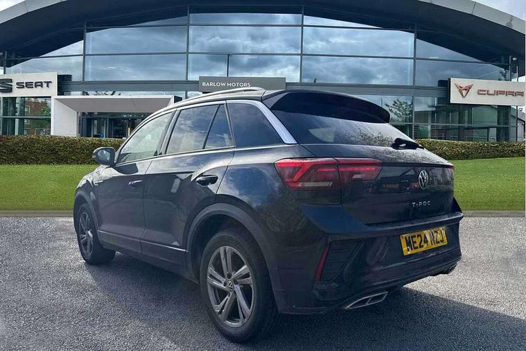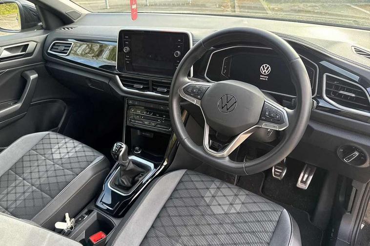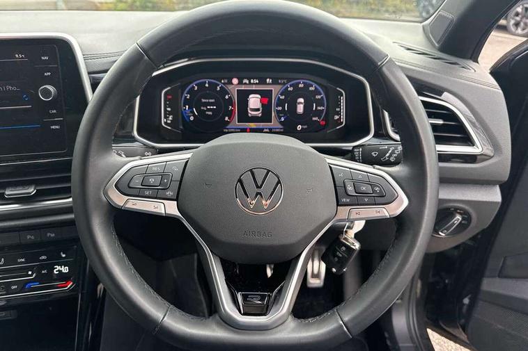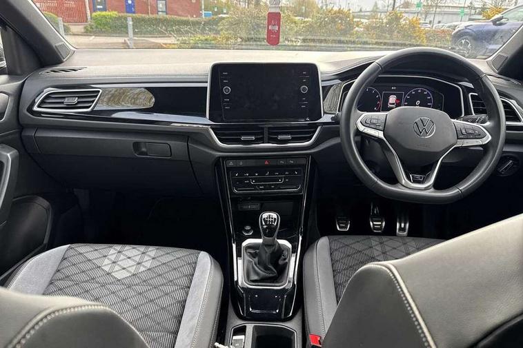 10.25" Digital cockpit pro, Advanced driver attention and drowsiness monitor, Emergency call service, Lane keeping system Lane Assist, Mobile phone interface, Modified key software - reduce switch off time for key status change to Long no motion, Online services, Park assist including front and rear parking sensors, Service interval indicator, Tailgate/trunk lid release from outside, Think blue trainer driver tips and journey analysis, Warning sound and light for front seatbelts unfastened, Wireless app connect, Wireless Smartphone charger, Battery regeneration during braking, Start/stop function with battery regeneration, DAB Digital radio, Diversity antenna for FM reception, Front and rear 6 speakers, Music playback - MP3, WMA and AAC files, Premium USB cable in choice of either Apple or Android smartphone compatibility, SD card slot, Simultaneous pairing of 2 compatible mobile devices, Title and cover art display, We Connect and We Connect Plus functionality, Auto dimming interior rear view mirror, Automatic hazard lights activation under emergency braking, Automatic headlight control with LED separate daytime running lights with coming/leaving home function, Electrically adjustable and heated door mirrors, Extended roof spoiler, Exterior mirrors aspherical on driver side, convex on front passenger side, External USB type C socket and charging sockets, Front windscreen wiper with intermittent wipe and 4 position delay, Heated rear window, LED 3rd brake light, LED rear combination lamps, LED rear number plate lights, Power windows with comfort operation and circuit breaker, R-Line design body coloured bumpers, Rain sensor, Rear exhaust tailpipe, Rear fog light on one side and reversing lights on both sides, Rear side wing doors, Rear wash/wipe with intermittent wipe setting, Remote electrically foldable door mirrors, puddle lights and reverse activated passenger's door mirror, 12V power socket in centre console, 3 rear head restraints, 3 seat bench in 2nd row, 4 load lashing points in luggage compartment, Air care climatronic air conditoning system with active combination filter and 2-zone temperature control, Black roof lining, Chrome plated radiator grille inserts, air vent surrounds and light switch surrounds, Door and side trim panel with leatherette insert, Front + rear carpet mats, Front centre armrest, Front cupholders x 2, Front footwell illumination, Front reading light, Front scuff plates with R Line logo, Front seat back storage pockets, Glove compartment door with light, Instrument lighting, white adjustable panel illumination, Interior ambient lighting and surround lighting, Interior light delay, Isofix child seat preparation, Leather gearshift handle, Load-through provision with cup holder when folded down ('Unsplit rear seat bench, split folding backrest, with centre armrest), Luggage compartment lighting, Single front passenger seat, Stainless steel pedals, Storage compartment in left and right luggage area, Storage compartment in rear doors, Storage compartments in driver and front passenger doors, Sunvisors with illuminated vanity mirrors, Variable boot floor, height adjustable and removable, Driver assistance pack without proactive passenger protection - T-Roc, 3 point height adj front seatbelts + pretensioners, 3 point seatbelts in outer rear with ECE label, ABS, Child locks on rear doors, City emergency braking and pedestrian monitoring, Driver and front passenger airbag with front passenger airbag deactivation, Driver and front passenger safety-optimised head restraints, Drivers seatbelt reminder, Electronic parking brake, Electronic Stability Control (ESC) inc EDL (Electronic Differential Lock) and ASR (Traction Control), Front and rear passengers curtain airbag system including front side airbags, Hill start assist, Predictive pedestrian protection, Rear disc brakes, Two tone horn, Tyre pressure loss indicator, Volkswagen roadside assistance, Trims for alloy wheels,