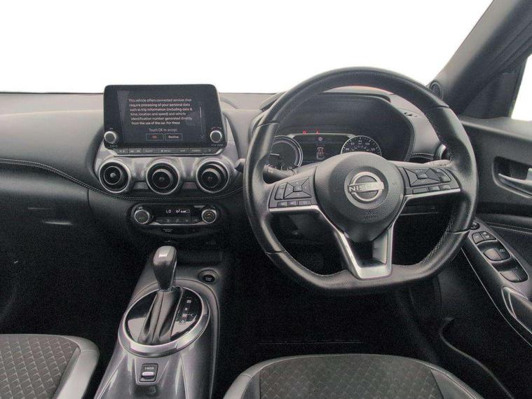 7" full colour TFT screen combimeter, Apple CarPlay and Google Android auto, Drive modes select (Eco, normal and sport), e-Pedal step, Emergency and breakdown call, EV mode selector, Front parking sensor, Intelligent lane intervention, Lane departure warning system, Nissan connect 8" touch screen entertainment system, Nissan connect nav with TomTom traffic, Nissan connect services and Wifi connection, Outside temperature sensor, Power Steering, Rear parking sensor, Traffic sign recognition, Trip computer, Voice recognition, Gasoline particulate filter, 6 speakers, Bluetooth system, USB, Aux-in and 12V socket, DAB Digital radio, Rear console USB port, Auto dimming interior rear view mirror, Auto headlights, Automatic hazard signal with emergency stop signal, Body colour bumpers, Body colour door handles, Electrically adjustable door mirrors with integrated indicators, Follow me home headlights, Front and rear electric window with one touch driver window, Heated and auto folding door mirrors, High beam assist, LED daytime running lights, LED headlamps, LED rear fog lamp, LED rear lamps, Rain sensor windscreen wipers, Rear privacy glass, Rear side wing doors, Rear wiper, Three blink turn signal, 3 height adjustable rear headrests, 3 seat bench in 2nd row, 60/40 split folding rear seat, Automatic climate control, Card holder on driver sunvisor, Cloth upholstery with black and metallic grey syntech leather inserts, Driver and passenger sliding and reclining seats, Driver side rear coat hanger, Driver/passenger sunvisors and vanity mirrors, Front and rear cabin lights, Front armrest, Front door pockets with bottle holders, Front head restraints, Front/rear passenger grab handles, Grey synthetic leather kneepad, Height adjustable driver's seat, Internal chrome door handles, Leather gearshift knob, Leather steering wheel, Luggage board, Luggage space lighting, Monoform sporty seats, Multifunction steering wheel, Rear door bottle holders, Single front passenger seat, Steering wheel mounted gearshift paddles, Telescopic steering wheel adjustment, Two cupholders in front centre console, Two rear isofix child seat anchorage points with top tether, Welcome light and console tray ambient lighting, ABS with EBD and brake assist, Active ride control, Active Trace Control, Driver and passenger airbags, Driver and passenger side airbags, Electric handbrake with auto hold function, Electronic Stability Programme (ESP), Front and rear curtain airbags, Height adjustable seatbelts, Hill start assist, Intelligent emergency braking with pedestrian and cyclist recognition, Rear door child safety locks, Seatbelt reminder for driver/front passenger and rear seats, Single tone horn, Three 3 point rear seatbelts, Traction control, Tyre pressure monitoring system, VDC Dynamic Vehicle Control, Ventilated rear brake discs, Alarm, Immobiliser, Intelligent key and start push button with walk away lock and approach unlock functions, Remote central locking,