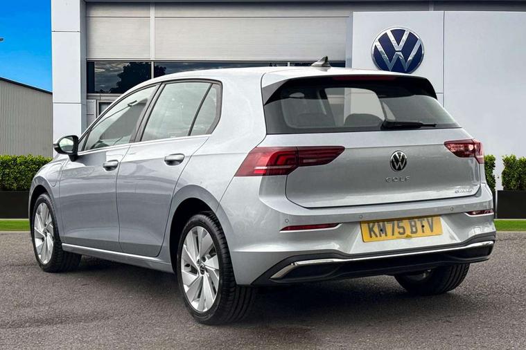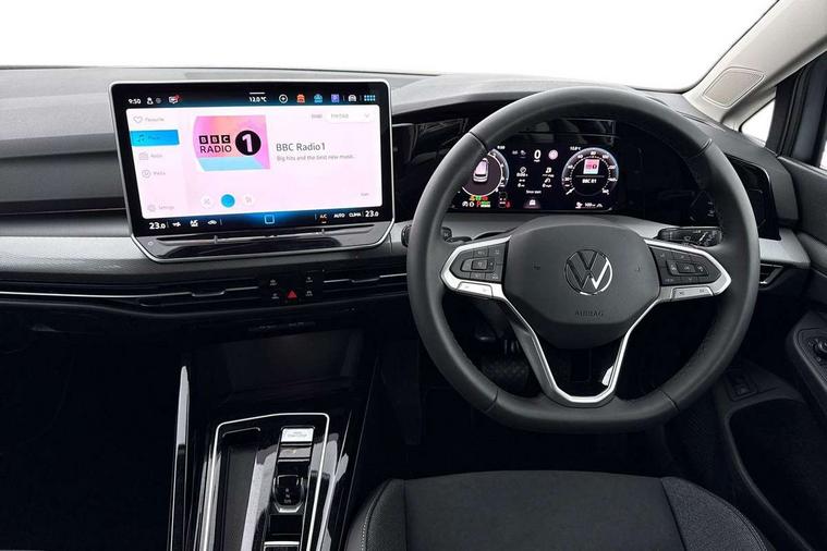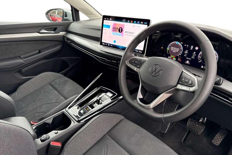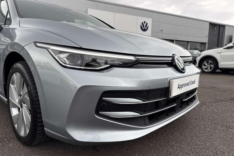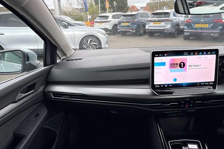 Activated carbon canister, Adaptive cruise control (ACC), Advanced driver attention and drowsiness monitor, Dynamic road sign display, E-Sim card for online connectivity, eCall emergency call system, Multi-color Digital cockpit pro, selection of different info profile possible, Multifunction front facing camera for distance control, Navigation system, Oncoming vehicle braking when turning including swerve support, Side assist blind spot lane change system, rear traffic alert and exit warning system, Speed limiter, Speedo, rev counter, electronic odometer, trip, service interval display, exterior temperature and fuel gauge, Traffic jam assist, Voice enhancer and voice control, Warning signal and warning light for front and rear seatbelts not fastened, We connect plus preparation, We connect preparation, Wireless app connect, Charging cable Mode 2 Type 2 (10A), Charging cable mode 3, type 2 32 A, Hybrid propulsion system, Start-stop system with battery regeneration (recuperation - energy recovery during braking), XDS electronic differential lock for improved traction and handling, 2 USB C ports in front, 2 USB charging sockets on the centre console in the rear charging capacity upto 45W, 6 Speakers - 4 in front and 2 in rear with central speaker, Digital radio reception (DAB), Diversity antenna for FM reception, Gaming platform via car app, Infotainment system with 12.9" display, Mobile phone interface with inductive charging feature, 3rd brake light, Automatic headlamp activation with Coming home and Leaving home feature, Body colour bumpers, Body colour door handles, Body colour door mirrors, Chrome trimmed front air intake surrounds, Chrome trims on the side window bottom, Exterior mirrors convex on the left and aspherical on the right, Front and rear electric windows, Heat insulating windshield made of laminated glass, LED separate daytime running light, Rear exhaust tailpipe, Rear fog light on one side and reversing lights on both sides, Rear side wing doors, Rear windscreen washer and wiper with interval delay, Remote electrically foldable door mirrors, puddle lights and reverse activated passenger's door mirror, Welcome light with surround lighting, 12V socket in front centre console, 12V socket in luggage compartment, 3 rear head restraints, 3 seat bench in 2nd row, Air care climatronic 3 Zone automatic climate control with rear air conditioning control panel, Ambient lighting with 30 colour including LED light unit in front footwell with selectable light colour, Chrome plated radiator grille inserts, air vent surrounds and light switch surrounds, Front + rear black carpet mats, Front centre armrest, ISOFIX anchors for child seats on outer rear bench seats and on front passanger seat compatible for i-Size, Luggage compartment lighting, Plastic gear knob, Rear cupholder and loadthough, Single front passenger seat, Soul black instrument panel, Split folding backrest with centre armrest and unsplit rear seat bench, Standard pedal cluster, Storm grey roof lining, Sun visors with illuminated vanity mirrors, Driver assistance pack - Golf Estate/Hatchback Auto, 3 point height adj front seatbelts + pretensioners, 3 rear three point seatbelts, ABS, Autonomous emergency braking front assist with pedestrian and cyclist monitoring, Child locks on rear doors, Driver and front passenger airbag with front passenger airbag deactivation, Electronic parking brake with auto hold, ESC (Electronic Stability Control), Extended pedestrian protection measures, Hill start assist, Rear disc brakes, Two tone horn, Tyre pressure loss indicator, Volkswagen roadside assistance, Anti theft wheel bolts, Preparation for alcohol interlock, New brushed dark metal decorative inserts for dashboard and front door panels, Tool kit for tyre mobility set, Tyre mobility kit Includes 12V compressor and tyre sealant,
