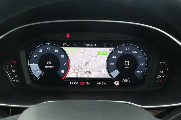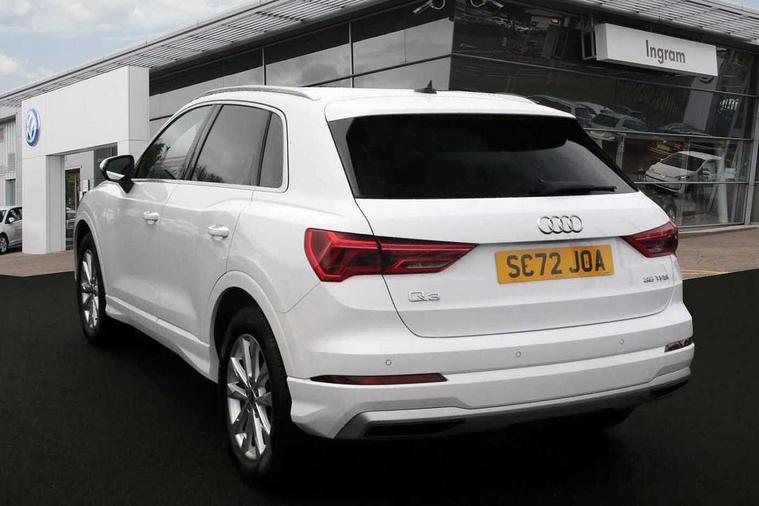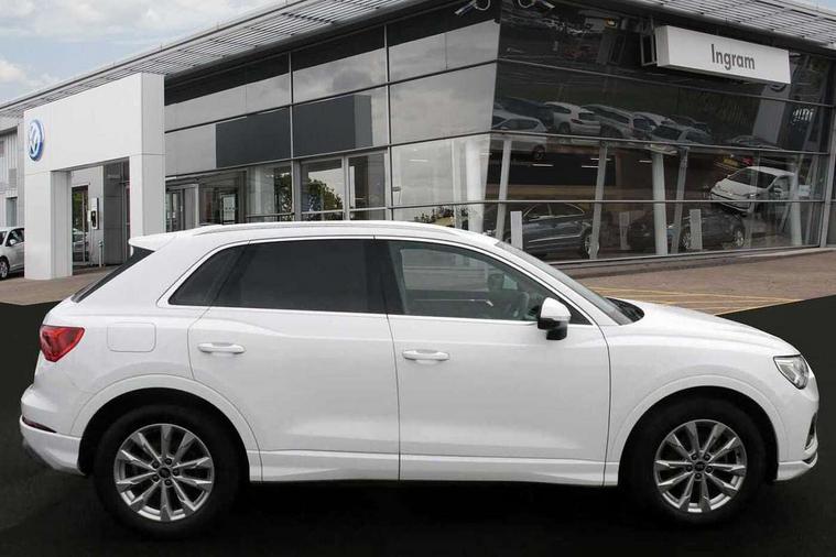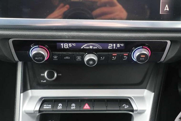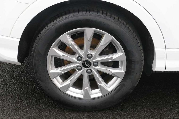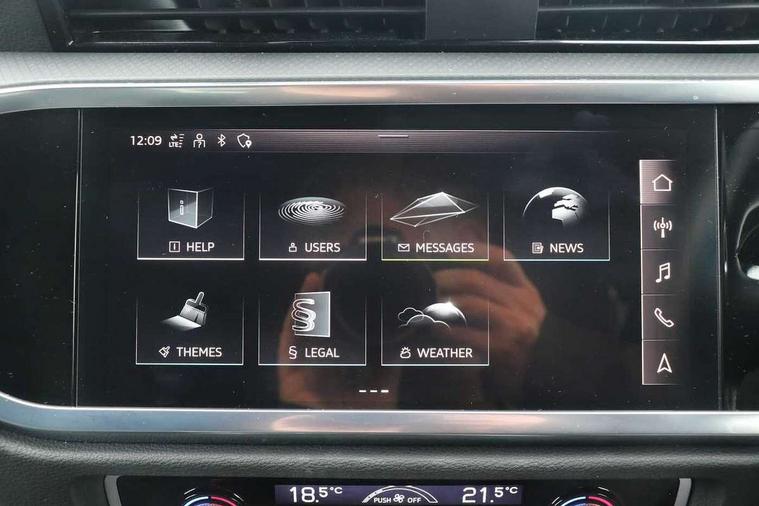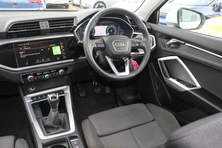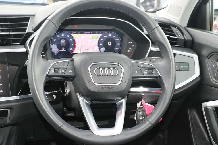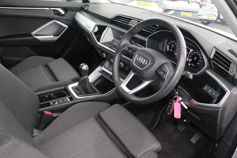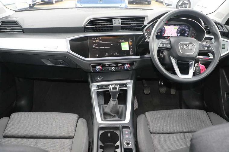 360 degree view camera, Amazon alexa Integration, Audi connect safety and service, Audi drive select, Audi lane departure warning, Audi Virtual Cockpit - 10.25" display, Bluetooth interface, Camera based traffic sign recognition, Cruise control + speed limiter, Distraction and Fatigue warning, Legal emergency call, MMI Navigation Plus with high resolution 10.1 inch touchscreen colour display, Parking system plus, Phonebox light with wireless charging, Power operated tailgate, Progressive steering, Service interval indicator, Smartphone interface includes wireless Apple carplay/Android Auto, Start stop system with recuperation, Voice control system with natural language interaction, Standard suspension, 2 USB-C ports with charge and data functions, DAB digital radio module, SONOS premium sound system, Acoustic windscreen, Aluminium roof rails, Aluminium window trim, Anthracite black radiator grille, Auto dimming door mirrors, Auto dimming frameless rear view mirror, Electrically folding, adjustable and heated door mirrors with integrated LED side indicators and kerb view function for passenger side, Front and rear bumpers, wheel arch trims and side sill trims in contrasting Manhattan grey paint finish, Front and rear electric windows, Front fog lights, Front side air inlets in matt selenite silver, Front spoiler in matt selenite silver, Grille vertical bars in aluminium silver/Matt, High gloss black finish B and C pillars, LED third brake light, Matrix LED headlights with LED daytime running lights, Panoramic glass sunroof, Rain and light sensors, Rear diffuser strip in matt selenite silver, Rear side wing doors, Rear wiper, Variable front intermittent wipers, 12V socket in rear centre console, 3 seat bench in 2nd row, 3 spoke multi-function leather steering wheel, 40:20:40 folding with manual adjustment for 60:40 forwards/backwards position and backrest angle, Black carpet mats, Door sill trims with aluminium inlay, Dual zone electronic climate control, Electric lumbar support, Electrically adjustable front seats, Front and rear floor mats, Front and rear headrests, Front centre armrest, Heated front seats, Height and reach adjustable steering wheel, ISOFIX child seat mounting for front passenger with airbag deactivation and outer rear seat including top tether attachment point for outer rear seats, Luggage compartment sill protection in stainless steel, Lunar silver cloth headlining, Single front passenger seat, Non smoking pack - Q3, 3x3 point rear seatbelts, 6 airbags - Driver, front passenger, curtain and side windows, Audi pre-sense front with pedestrain and cyclist recognition, Electrically operated child locks on rear doors, Electromechanical parking brake, Electronic stabilisation control including ABS, ASR and EDL, Front seatbelt reminder, Hill descent control, Hill hold assist, Pre sense basic, Seatbelt monitoring, Tyre pressure warning, Warning triangle and first aid kit, Advanced key, Anti theft wheel bolts, Immobiliser, Remote central locking, Thatcham approved category 1 anti theft alarm, Aluminium look interior elements, Detail dashboard around MMI touch colour display in glass look, black with surround in aluminium look, Micrometallic silver inlay,