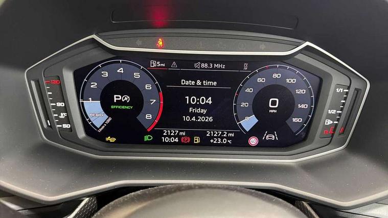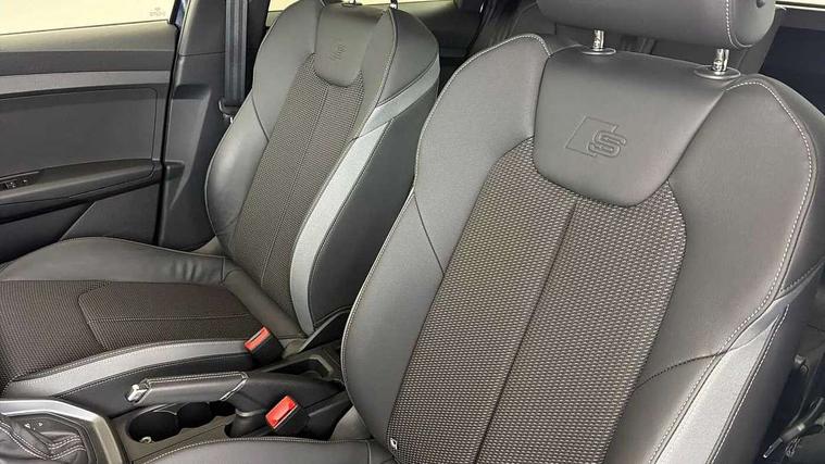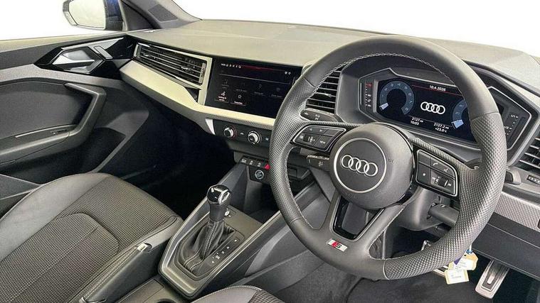 10.25" Digital instrument cluster display classis style instrument dials + speed, odometer, time, outside temperature, telephone menu + fuel level warning, Advanced driver attention and drowsiness monitor, Audi connect emergency call and service, Audi drive select, Audi remote connect and control, Audi smartphone interface, Bluetooth interface, Camera based traffic sign recognition, Cruise control, Driver's information system, Electromechanical power steering, Lane departure warning system, Rear parking sensor, Service interval indicator, Speed limiter, Start stop system with recuperation, Voice control system, Washer fluid level indicator, Sports suspension, 2 x USB type C connection points, 6 loudspeakers, DAB Digital radio, MMI radio plus with 10.1" colour MMI display screen and MMI touch, Auto dimming rear view mirror, Body coloured door mirrors, Door sill trims with aluminium inlays and S line logo in front, Electric front and rear windows, Electrically adjustable, heated, folding door mirrors with integrated LED side indicator, Front side air inlets in grained matt black and C frame in anthracite black, Headlight cleaning system, Heat insulating glass windscreen and side windows, Heated rear windscreen, High level LED brake light, LED daytime running lights, LED headlights with range control LED rear lights + dynamic rear indicators, Light and rain sensors, Privacy glass, Radiator grille and rear diffuser in matt anthracite black, Radiator protective grille frame in matt aluminium silver, Rear fog lights, Rear side wing doors, Rear wiper, S line badges on front wings, Side front spoiler lips in grained matt black, 12V socket in centre console with two cup holders, 3 rear seats with headrests, 3 seat bench in 2nd row, 3 spoke leather multi-function plus steering wheel features S badging and grips in perforated leather with contrast stitching, 40:60 Split folding rear seat or fully collapsed, Black cloth headlining, Front and rear velour black floor mats with contrast stitching in fine silver, Front head restraints, Front passenger seat, Height and reach adjustable steering wheel, Interior lighting includes roof module, front and rear reading lights and right luggage compartment lighting, ISOFIX child seat mounting for front passenger and outer rear seats including top tether attachment point of outer rear seats, Leather gear knob with aluminium trim, Leather handbrake grip, Manual air conditioning, Manual height adjustable for driver and front passenger seat, Manually adjustable lumbar support in front seats, Stainless steel pedals, Ambient lighting package - A1, Luggage compartment pack - A1, S line exterior styling pack - A1 Sportback, 3x3 point rear seatbelts, Audi pre-sense front with pedestrain and cyclist recognition, Brake assist function, Driver and front passenger airbag with front side and head airbags, Electronic Stability Control including ABS, EBD, ASR and EDL, Front passenger airbag deactivation switch, Hill hold assist, Manual rear child locks, Seatbelt height adjustment for front seats, Seatbelt monitoring, Tyre pressure loss indicator, Warning triangle and first aid kit, Anti theft alarm, Anti theft wheel bolts, Immobiliser, Remote control key with safelock, Aluminium trim for control switches, air vents and digital instrument cluster, Black dashboard, Silver grey inlays polygon structure in diamond paint finish, Structured grey accent surfaces insert of air vents, interior door handle recesses and centre console in quartz paint finish,