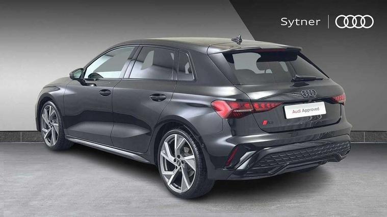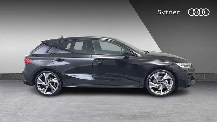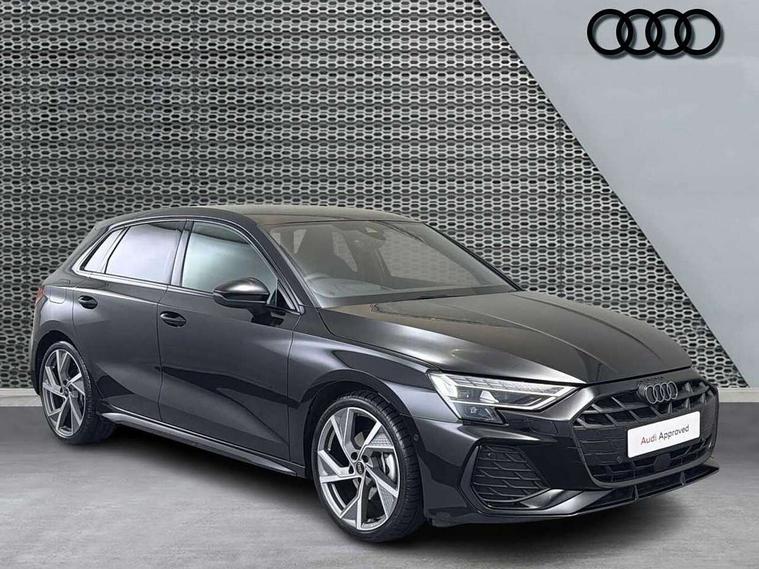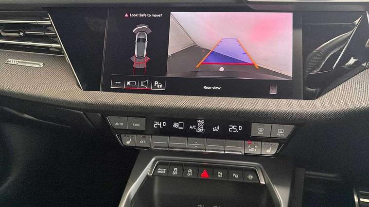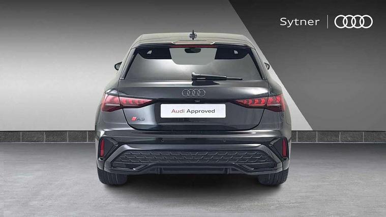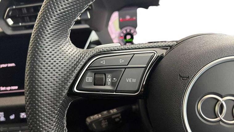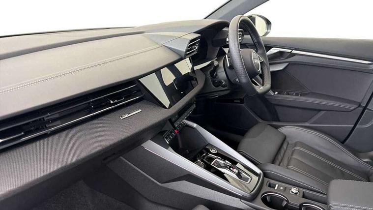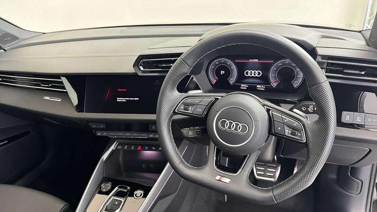 Adjustable speed limiter, Audi drive select, Audi smartphone interface with app store includes wireless Apple carplay, Android auto and Amazon alexa integration, Audi virtual cockpit plus - 12.3" full HD resolution dynamic digital instrument cluster, Automatic start/stop system with recuperation, Bluetooth interface, Camera based traffic sign recognition, Collision avoidance assistant, Cruise control, Distraction and Fatigue warning, e-Call (emergency call), Electromechanical power speed sensitive steering, Lane departure warning system, MMI Navigation Plus with high resolution 10.1" colour touch screen display, Park Assist with parking system Plus, Service indicator, Tailgate, Trip computer, Voice control system with natural language interaction, Sports suspension, Audi Phonebox light with wireless charging, Audi sound system - 10 loudspeakers including centre loudspeaker and subwoofer, DAB Digital radio, USB ports with charging function in the rear, Acoustic glass windscreen, Anthracite grey Audi rings (front and rear), Audi beam uses LEDs to project the Audi logo onto the ground as you exit your A3, Auto dimming frameless rear view mirror, Black accents front and rear bumpers, Black accents in the area of the Audi single frame grille, Black accents window trims strips, Electrically adjustable/heated/folding/auto dimming door mirrors with integrated LED indications + kerb view function for passenger side, Exterior model badging, Front electric windows, Heat insulating glass windscreen, Illuminated door sills with aluminium inserts at the front with S logo, LED 3rd brake light, LED daytime running lights, LED headlights with LED rear lights and dynamic rear indicators, Light and rain sensors, Privacy glass - dark tinted rear window, rear door and side windows, Rear electric windows, Rear side wing doors, Rear wiper, S roof spoiler, 12V socket and storage compartment in front centre console, 3 seat bench in 2nd row, 3 spoke flat bottomed leather multifunction sport steering wheel with gear shift paddles, 3-zone deluxe automatic air conditioning, 4 way electrically adjustable lumbar support for driver and front passenger, 40/20/40 split folding rear seat bench, Black cloth headlining, Front and rear centre armrest in artificial leather, Front and rear headrests, Front/rear floor mats, Heated front seats, Height and reach adjustable steering wheel, Manual boot compartment lid, Manually adjustable front seats, S badging on the steering wheel, Seat side bolsters, Single front passenger seat, Stainless steel pedals and front footrest in black, Twin leather upholstery with front sports seats S embossed logo, Aluminium interior elements pack - A3 Sportback, Multi-coloured LED interior lighting package - A3 Black Edition, 3x3 point rear seat belts, Driver and front passenger airbag with passenger airbag deactivation, Electronic Stabilisation Control (ESC) including ABS, ASR and EDL, First aid kit with warning triangle and 2 safety vests, Front side airbags with head airbags and interaction airbag, Hill hold assist, Pre-sense front with pedestrian and cyclist detection, Seatbelt monitoring, Tyre pressure loss indicator, Anti theft alarm, Anti-theft wheel bolts, Electronically operated child locks, Immobiliser, Remote control central locking, Inlays in black Impressum woven textile,