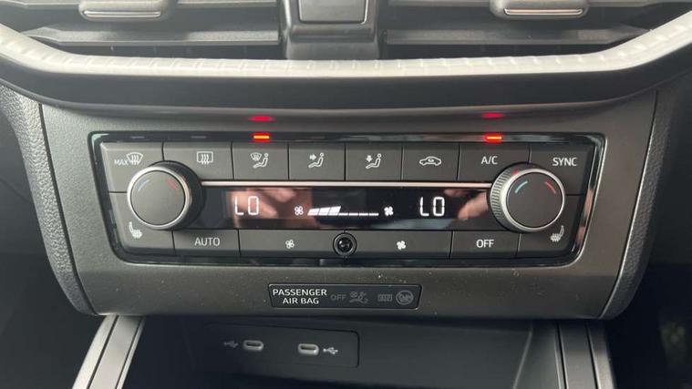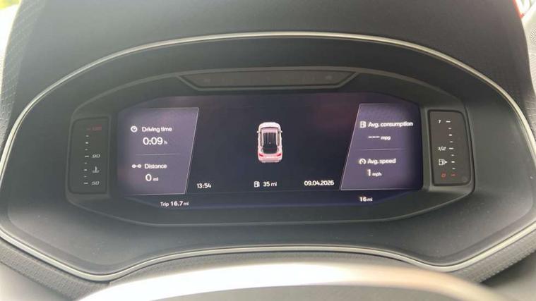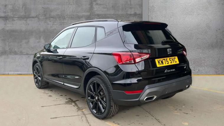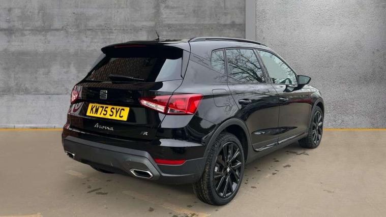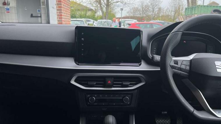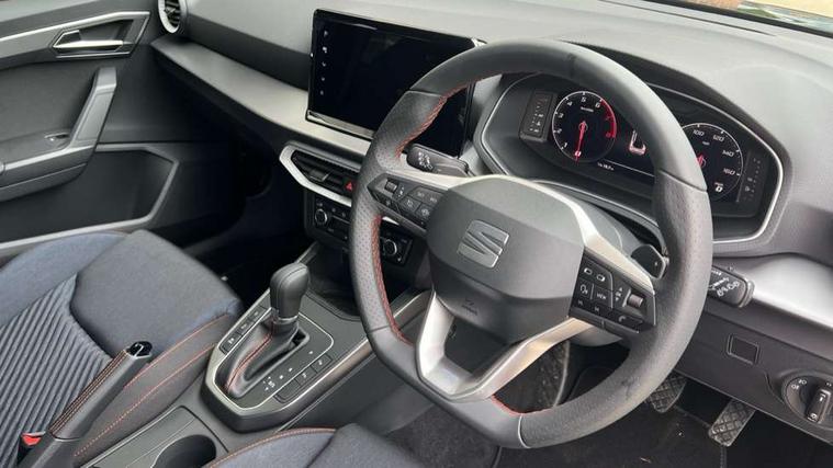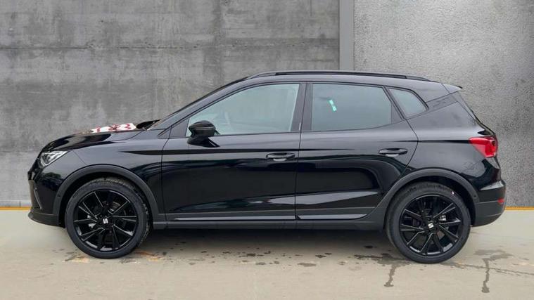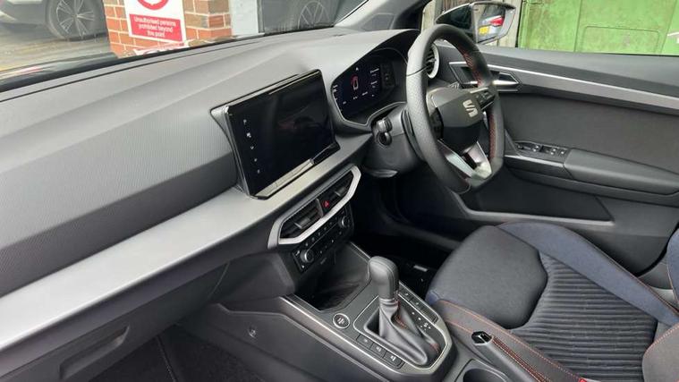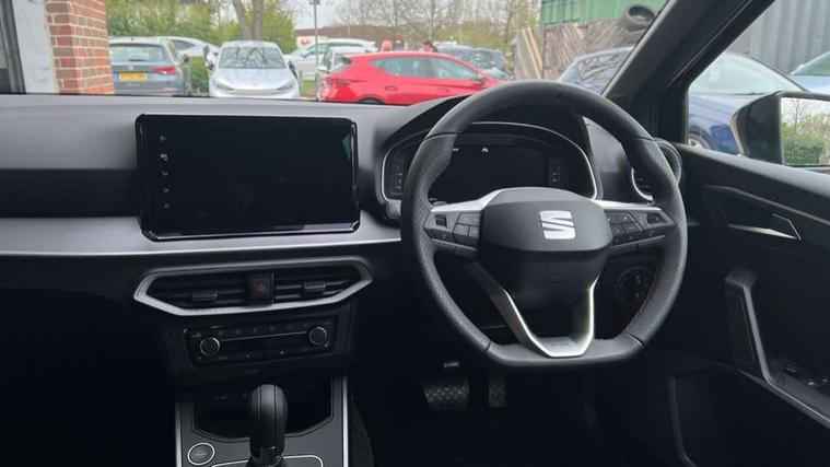 'Lights On' Reminder warning buzzer, 10" Digital cockpit, Digital clock, E-call, Electric speed sensitive power steering, Full link smartphone integration with mirror link, wireless apple carplay, Google android auto + USB Type C cable for apple and android devices, Lane keeping system, Low fuel warning light, Outside temperature display, Park assist system, Rear view camera, RPM counter, SEAT Drive profile - Four different models normal-sport-eco-individual, steering response, throttle response and gear shifts mode, Trip computer, Wireless phone charger, 9.2" colour touchscreen with navigation system, voice control and USB port (type c), Bluetooth interface for hands free and audio streaming, DAB digital radio and AM/FM radio, Steering wheel mounted audio controls, Anti theft roof antenna, Auto dimming interior rear view mirror, Automatic activation of hazard warning lights, Black roof rails and window surrounds, Black side skirts, Body coloured bumpers, Body coloured door handle inserts, Dark tinted rear windows, Electric front/rear windows, Electrically adjustable, heated and folding door mirrors, Front fog lights with cornering function and rear fog light, FULL LED automatic headlights with dynamic headlight range control, coming and leaving home, LED daytime running lights, Lasered lettering on B pillar, LED rear tail lights and licence plate lights, Protective side mouldings, Rain sensing wipers, Rear side wing doors, Rear spoiler, Rear window wash/wipe, Roof colour door mirrors, Third brake light, Twin exhaust pipe styling hidden exhaust pipe, Visible VIN plate, 2 cupholders, 3 seat bench in 2nd row, 60/40 split folding rear seat, Aircare filter, Black interior roof, Double boot floor, Driver sunvisor with covered mirror + card holder, Dual zone climate control, Front courtesy light with front reading lights, Front seat back storage pockets, Gear shift indicator, Grey interior air vents, Heated front seats, Height adjustable front seats, Height/reach adjustable steering column, Illuminated air vent surrounds, Illuminated boot, Instrument lighting with brightness control, Interior ambient lighting, Interior light in footwell, central console and door panel, ISOFIX points in outer rear seats with top tether anchorage points, Microsuede cloth upholstery, Passenger sunvisor with vanity mirror, Perforated flat bottomed leather steering wheel/gear knob/handbrake with red stitching and FR logo, Potentiometer, Single front passenger seat, Sports cloth bucket seats, Steering wheel mounted gearshift paddles, Two front and three rear height adjustable headrests, Interior chrome pack - Arona, Safe and driving pack (S) - Arona, Safety and driving pack (M) - Arona, ABS, Active front headrests, Child locks on rear doors, Driver and front passenger airbags with front passenger airbag de activation, front side and curtain airbags, Emergency Brake Assist (EBA) and front assist, Front and rear seatbelt reminder, Hill hold control, Multi-Collision braking, Tiredness recognition system, Traction control, Tyre pressure monitoring system, Alarm with back up horn with tow away protection, Deadlock, Electronic engine immobiliser, KESSY Keyless entry and go, Locking wheel bolts, Remote central locking, Titan black dashboard, 18" Black alloy wheels,
