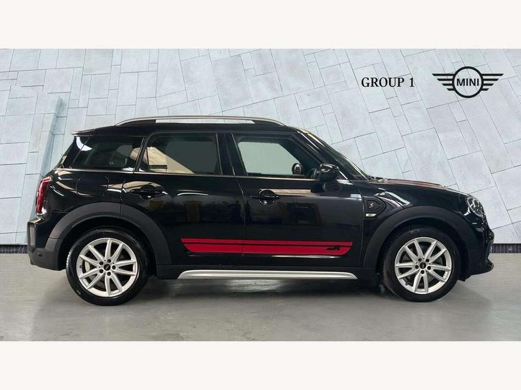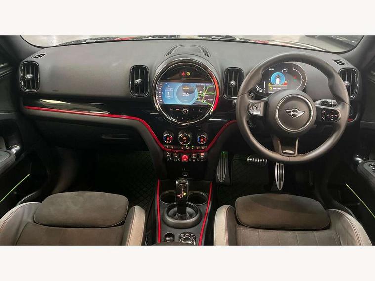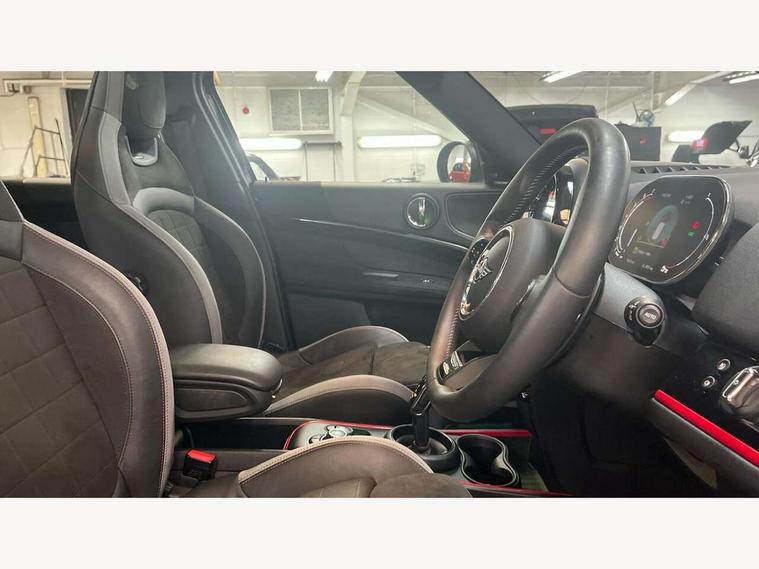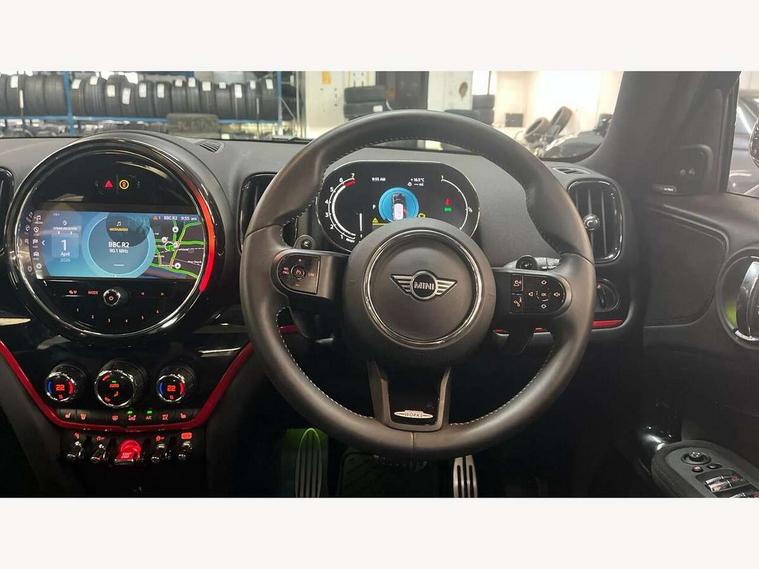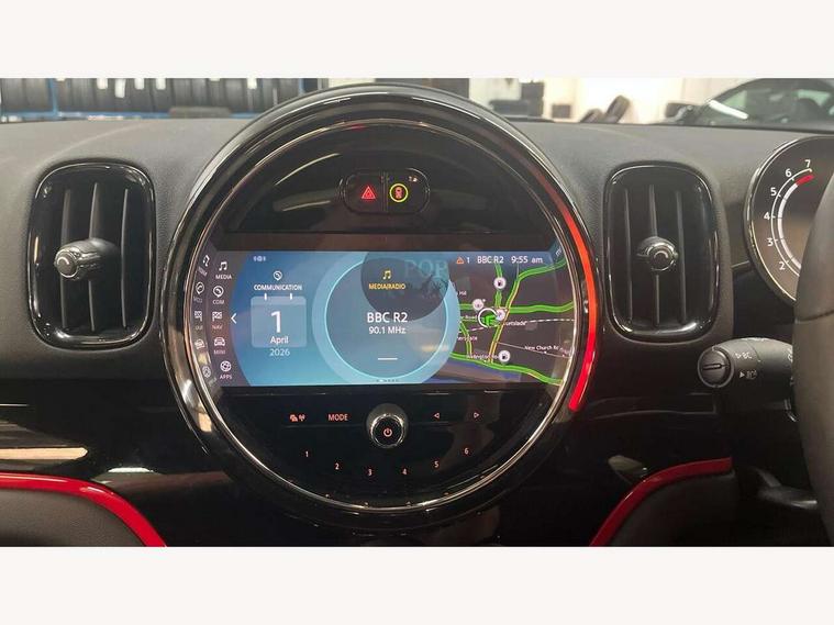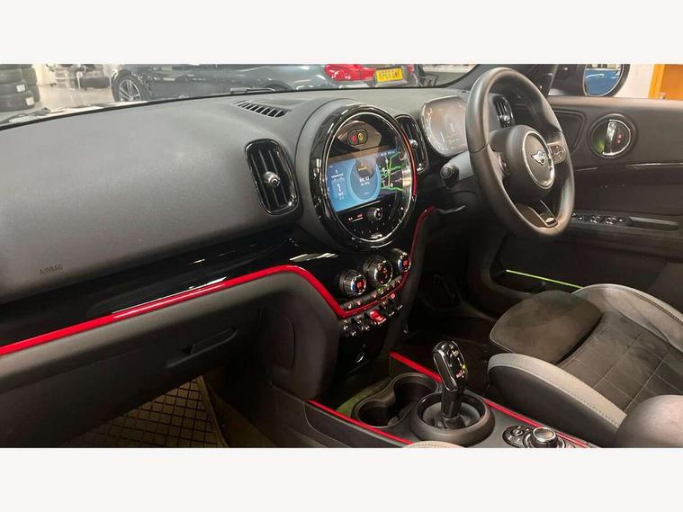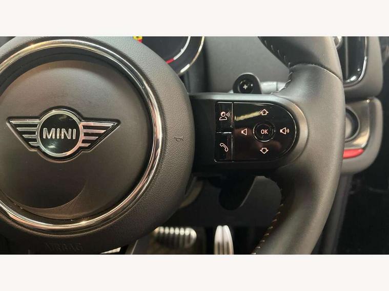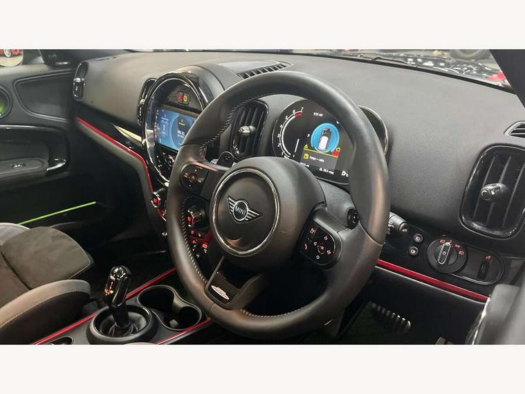 Active Guard incl speed limiting and lane departure functions with auto steering, and front collision warning with brake intervention, Automatic start/stop function with brake energy recuperation, Compatible mobile phone bluetooth with audio streaming, Cruise control with brake assist, Electro-mechanical speed dependant steering assistance, Instrument cluster, MINI Driving Modes - centre toggle switch to control driving setting (sport, mid and green), Mini E-call, On board computer, Rear parking distance control, 51 Litre fuel tank, Double Vanos system, Fully variable valve control, High precision injection, Performance Control, Sport automatic transmission with steering wheel paddles, FM tuner and DAB digital radio, 3rd brake light, Bonnet scoop, Chrome fuel filler cap, Day time driving lights, Dynamic brake lights, Electric windows, Heated rear window, Heated windscreen washer jets, John Cooper Works - aerodynamic kit (front and rear apron, spoiler), front and rear sport bumpers and part-painted side sills with door sill finishers, John Cooper Works Logo, LED fog lights, LED Headlights, Metal door sill strips with Cooper S imprint, Model logo, Model logo on Tailgate, Rain sensor with auto headlights, Rear fog lights, Rear side wing doors, Rear window wiper, Side scuttle panel with integrated indicator, Split rear doors, Sun/heat protection glass, White indicator lenses, 12V socket in centre console, 3 seat bench in 2nd row, 360L luggage compartment capacity, 4 lashing eyes in luggage compartment, 40:20:40 split folding rear seats, Anthracite headlining with grab handles and clothes hooks, Chrome interior highlights, Colour line - Carbon black, Cupholders, English handbook, Floor mats, Front headrests, Glove compartment, Height and length steering column adjustment, Interior lighting with 12 basic colours selectable via toggle switch in roof, Isofix rear child seat preparation, LED reading lights, vanity mirror lights, front foot well light and spotlight on front seats, Manual air conditioning, Mini John Cooper Works leather gearshift lever and handbrake gaiters, Multifunction steering wheel, Nappa leather steering wheel with MINI Yours logo, Rear headrests, Single front passenger seat, Stainless steel pedals and foot rest, Storage compartments in doors, Sunvisors with vanity mirrors, Excitement pack - Countryman, Navigation pack - Countryman, Piano black exterior pack - Countryman Cooper S/SD/SE/Boardwalk, 2 tone horn, 3 point seatbelts on all seats, 6 Airbags - front, side, head and seat belt tensioners, Anti-lock braking system (ABS), DSC - Dynamic Stability Control, Electronic handbrake, Front and rear disc brakes, Hill start assist, Manual rear child locks, Tyre pressure monitoring system, Alarm system with tilt sensor, monitoring doors, bonnet interior and tailgate, Auto drive away locking, Deadlocking function, Electronic vehicle immobiliser, Locking wheel bolts, Start/stop toggle with keyless go, Piano black JCW interior trim, Tool kit,