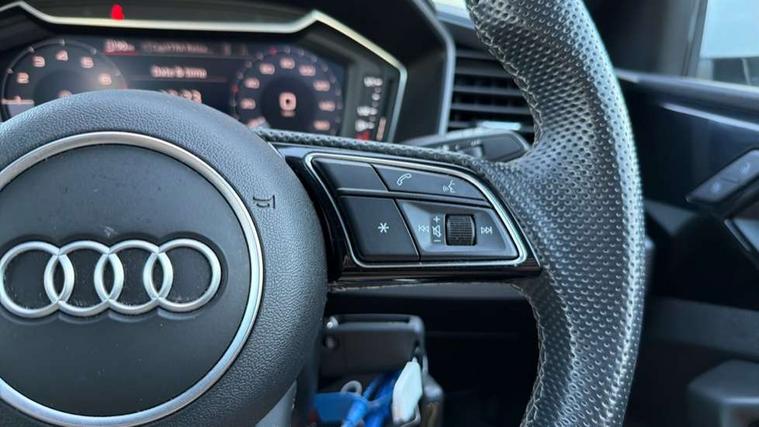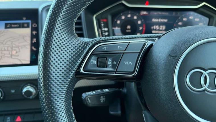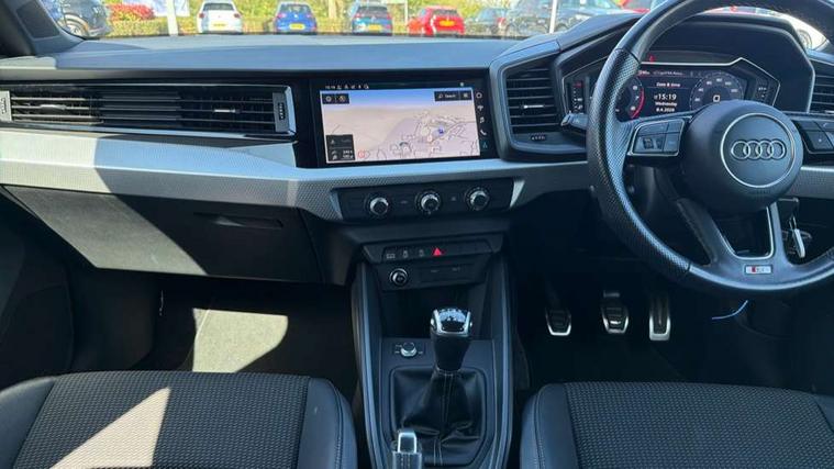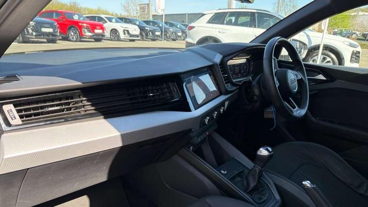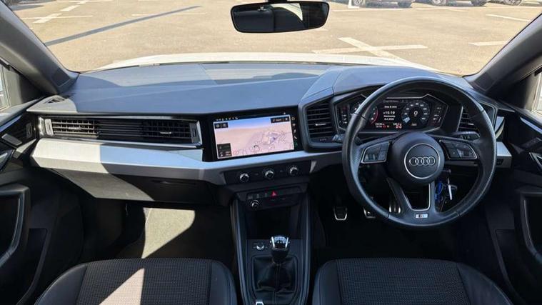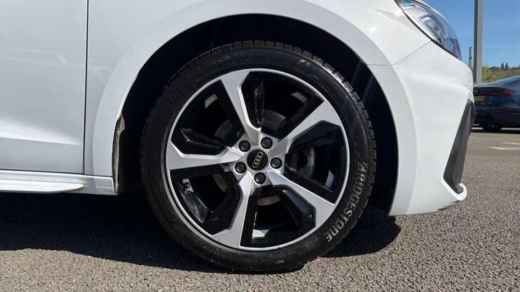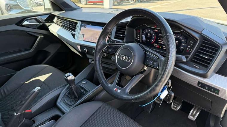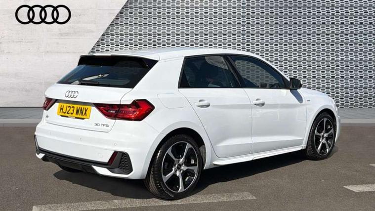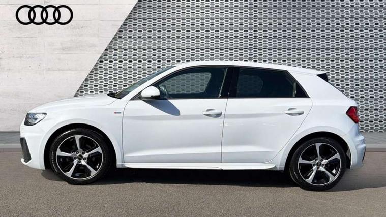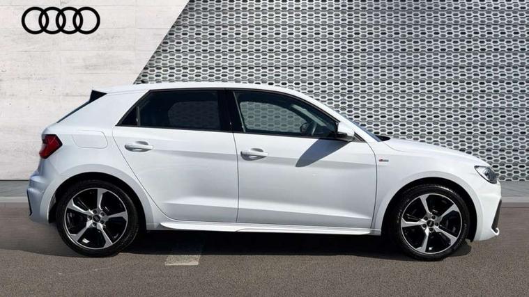 10.25" Digital instrument cluster display classis style instrument dials + speed, odometer, time, outside temperature, telephone menu + fuel level warning, Audi drive select - power steering assistance + engine, Audi smartphone interface with connect compatible smartphone via USB directly MMI display + Nav, music, third party apps controlled via MMI controller, Automatic start/stop system, Bluetooth interface, Cruise control, Driver's information system, Electromechanical power steering, Emergency e-call, Emergency services call system, Lane departure warning system, Service interval indicator, Speed limiter, Voice control system, Washer fluid level indicator, Sports suspension, 1 x SDXC card reader, 2 x USB type C connection points, DAB Digital radio, MMI radio plus with 8.8" colour MMI display screen and MMI touch, Auto dimming rear view mirror, Body coloured door mirrors, Door sills with aluminium inlays and S Line logo, Electric front and rear windows, Electrically adjustable, heated, folding door mirrors with integrated LED side indicator, Front side air inlets in grained matt black and C frame in anthracite black, Heat insulating glass windscreen and side windows, Heated rear windscreen, High level LED brake light, LED headlights with LED rear lights + dynamic rear indicators + headlight adjustment and high beam, turning light + LED daytime running lights, Radiator grille and rear diffuser in matt anthracite black, Radiator protective grille frame in matt aluminium silver, Rain and light sensors, Rear fog lights, Rear side wing doors, Rear wing door, Rear wiper, S line badges on front wings, Side front spoiler lips in grained matt black, 12V socket in centre console with two cup holders, 3 rear seats with headrests, 3 seat bench in 2nd row, 3 spoke leather multi-function plus steering wheel features S badging and grips in perforated leather with contrast stitching, 40:60 Split folding rear seat or folded fully, Black cloth headlining, Driver and passenger seat with manual height adjust with forward and backwards adjustment, Front and rear black floor mats with contrast stitching in fine silver, Front head restraints, Front passenger seat, Height and reach adjustable steering wheel, ISOFIX child seat mounting for front passenger and outer rear seats including top tether attachment point of outer rear seats, Leather gear knob with aluminium trim, Luggage compartment light with front and rear reading lights, Manually adjustable lumbar support in front seats, Stainless steel pedals, LED interior lighting pack - A1, Luggage compartment pack - A1, S line exterior styling pack - A1 Sportback, 3x3 point rear seatbelts, Audi pre-sense front with pedestrain and cyclist recognition, Brake assist function, Driver and front passenger airbag with front side and head airbags, Electronic Stability Control including ABS, EBD, ASR and EDL, Front passenger airbag deactivation switch, Hill hold assist, Manual rear child locks, Seatbelt height adjustment for front seats, Seatbelt monitoring, Tyre pressure warning light, Warning triangle and first aid kit, Anti theft alarm, Anti theft wheel bolts and loose wheel warning, Immobiliser, Remote central locking with 2 foldaway keys, Aluminium trim for control switches, air vents and digital instrument cluster, Silver grey inlays polygon structure in diamond paint finish, Structured grey accent areas including air vents, door handle recesses and centre console in quartz paint finish,