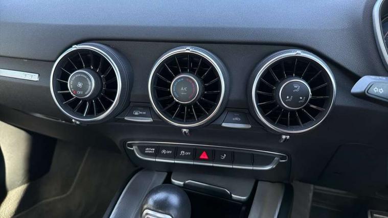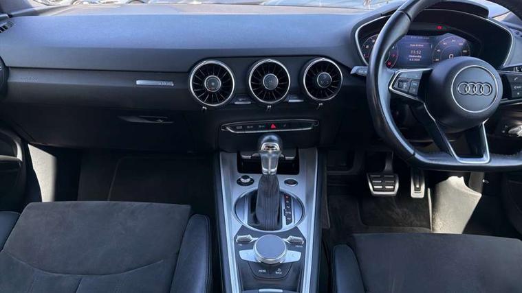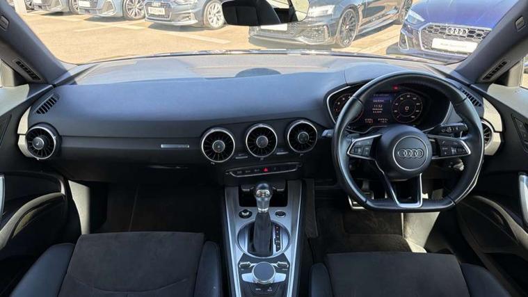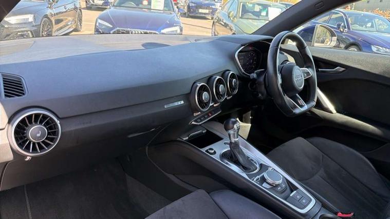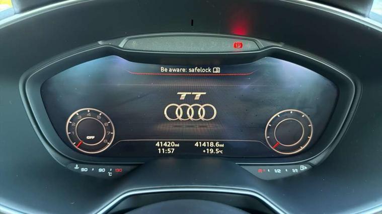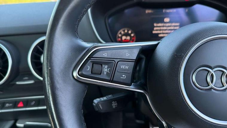 Audi drive select with 4 Pre configured modes, Audi smartphone interface, Audi virtual cockpit - 12.3" high-resolution LCD display with fully customisable instrument cluster, Cruise control + speed limiter, MMI touch panel, Mobile phone preparation with bluetooth interface, Progressive power assisted steering, Service interval indicator, Start/Stop system with energy recuperation, TP memo, Sports suspension, AM/FM radio, Bluetooth audio streaming, DAB Digital radio, MMI Radio with CD player and SD/XC card slot, Auto dimming rear view mirror, Body colour bumpers, Body colour electrically adjustable and heated door mirrors with built in LED side indicators, Electric folding door mirrors, Electric front windows, Front fog lights, Green tinted heat insulating glass, Light and rain sensors, Retractable rear boot spoiler, Sunband for windscreen, Xenon headlights with LED daytime running lights with automatic headline range control + LED rear lights, brake lights and rear indicators, 12V socket, 3 spoke flat bottomed high multi-function leather sport steering wheel with gearshift paddles, Alcantara/Leather upholstery includes seat centre panels, door trim inserts in black Alcantara with side bolsters, head restraints in black leather, Aluminium door sill trims, Front centre armrest, Front sports seats, Heated front seats, Height adjustable driver's seat, Height adjustable front head restraints, Height/reach adjust steering wheel, ISOFIX child seat mounting for front passenger seat with airbag deactivation, Rear head restraints, Rear top tether child seat ISOFIX attachment, Split folding rear seat, Non smoking pack - TT/TT RS, 3 point front seat belts, ABS, ASR traction control, Curtain airbags, Driver and front passenger airbag with front passenger airbag deactivation, EDL traction control, Electromechanical parking brake, ESP, First aid kit, Front side airbags, Head airbags, Hill hold assist, Seatbelt warning, Tyre pressure loss indicator, Warning triangle, Anti theft alarm, Anti theft wheel bolts, Immobiliser, Keyless Go, Remote central locking, Aluminium design inlays, Tool kit, Tyre repair kit,