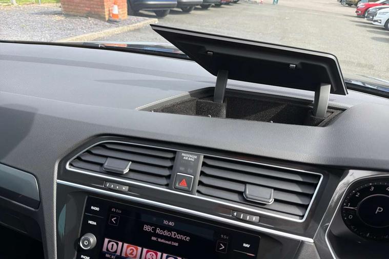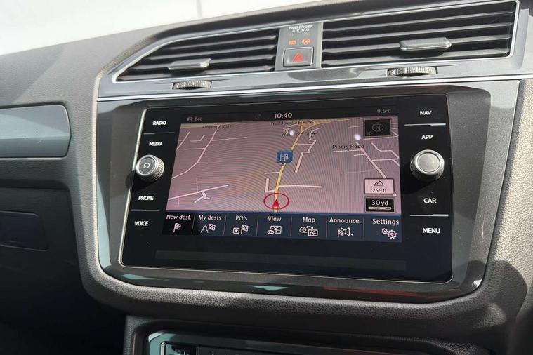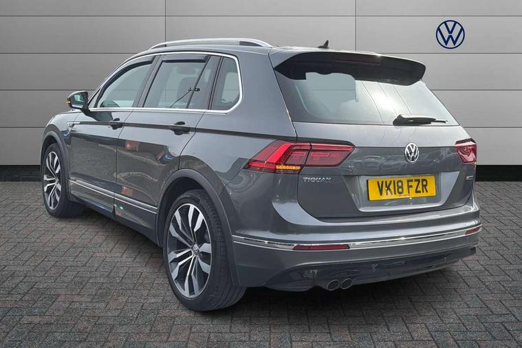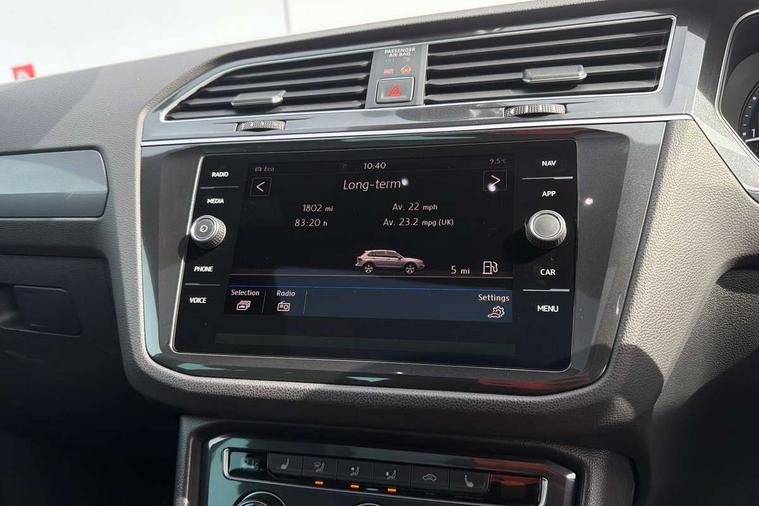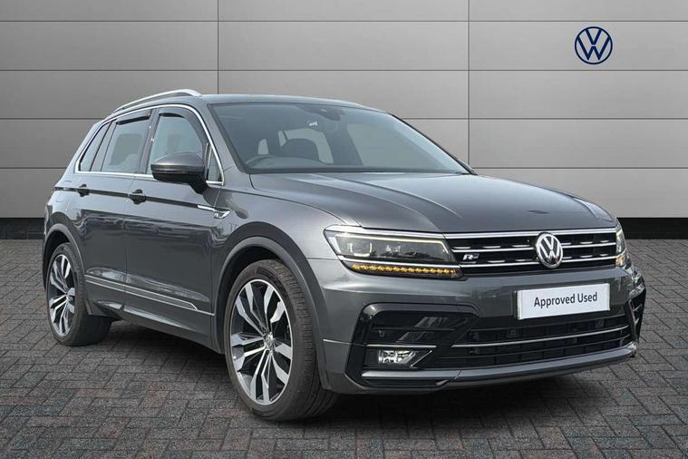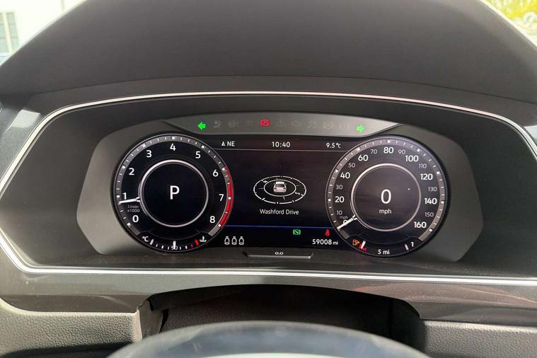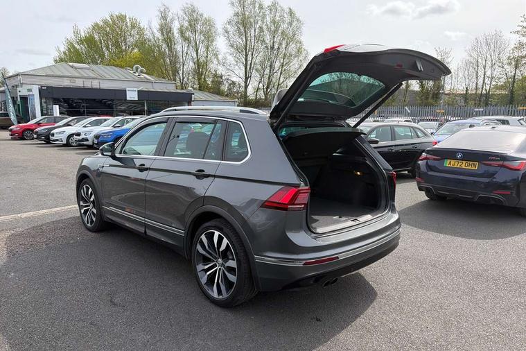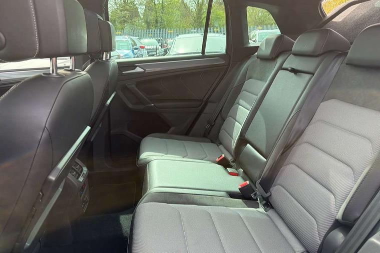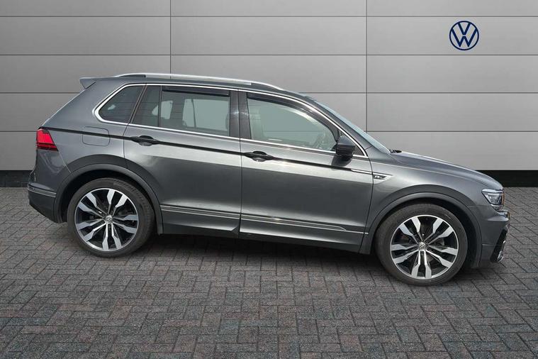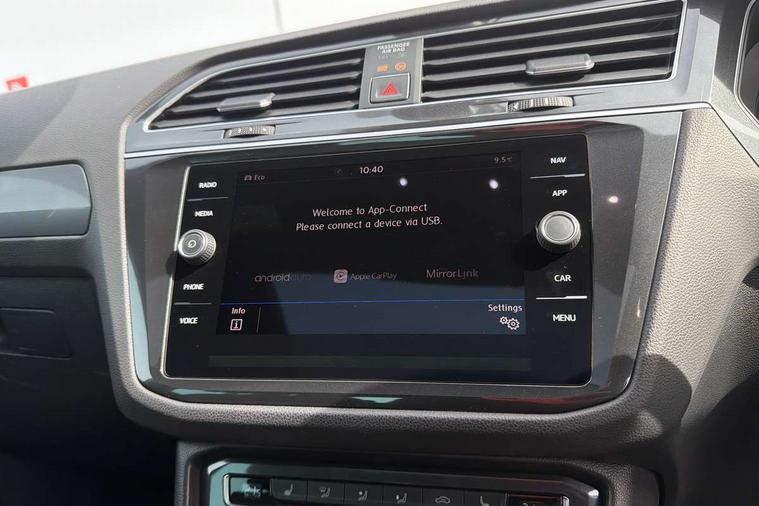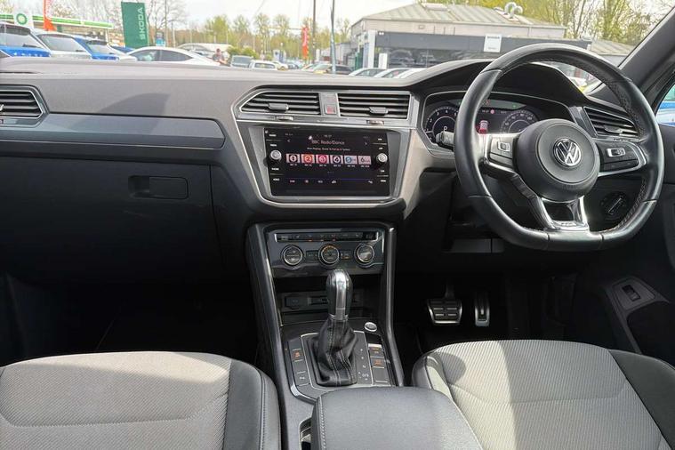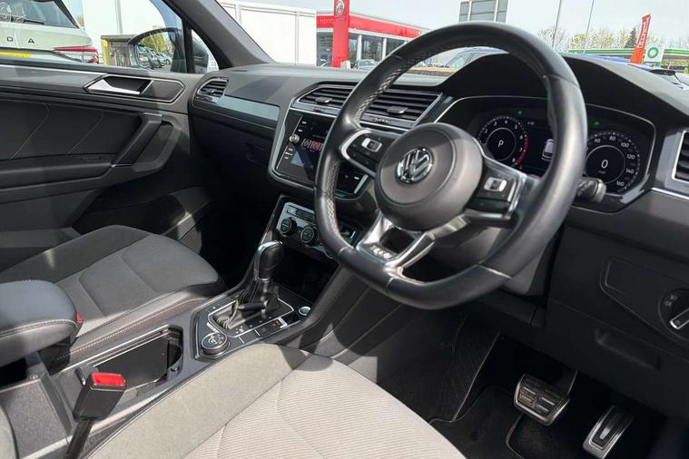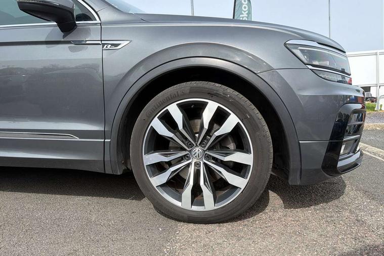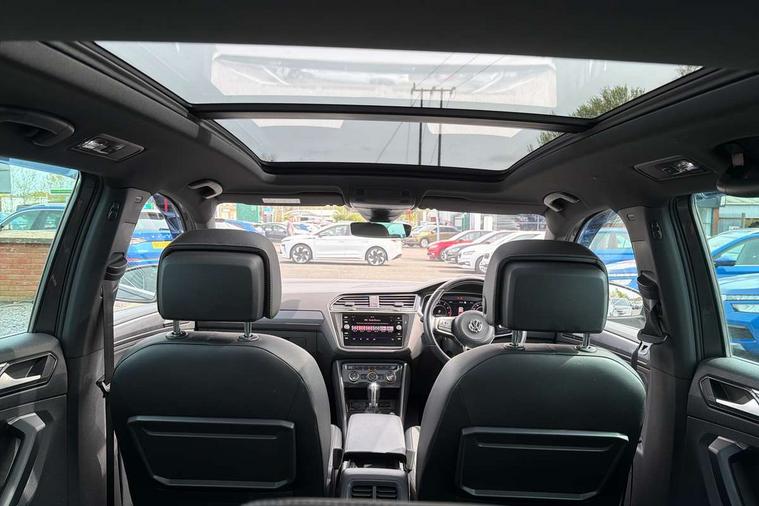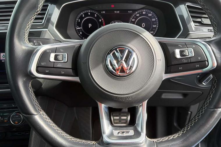 Active information display, Adaptive cruise control, App-Connect, Bluetooth phone integration system, Distance control assist, Drive mode selector, Driver profile selection, Fatigue detection system, Instrument cluster, Lane assist, Low washer fluid warning light, Outside temperature display, Progressive power assisted steering, Service interval indicator, Speed limiter, Warning lights, XDS electronic differential lock, 2x USB sockets in front, Aux-in socket, DAB Digital radio, MP3 compatible single CD player, SD card slot, Auto dimming interior mirror, Automatic activation of hazard warning lights, Body colour door handles, Body colour door mirrors, Body colour rear spoiler, Body colour side skirt, Body coloured bumpers, Chrome side window surrounds, Chrome trimmed radiator grille, Coming/leaving home lighting function, Dusk sensor + auto driving lights, Electric folding door mirrors, Electric heated + adjustable door mirrors, Electric panoramic sunroof with sunblind, Front and rear electric windows, Heated rear window, LED headlights with dynamic light assist daytime running lights and cornering front fog lights, LED rear lights, Piano black rear diffuser, R Line body kit, Rain sensor windscreen wipers, Rear windscreen washer and wiper with interval delay, Silver roof rails, Silver under body guard, Tinted windows (B pillar backwards), Twin trapezoid chrome exhaust pipes, Windscreen wipers/ intermittent wipe + 4 position delay, 12V Accessory socket in centre console, 3 rear headrests, 3 zone climate control, 4 load lashing points, 40:20:40 split folding rear seats, Bag hook in luggage compartment, Black headlining, Driver + front passenger lumbar support, Foldable passenger seatback, Front + rear carpet mats, Front centre armrest with 12v socket, Front centre armrest with storage + rear 2 air vents + cupholders, Front seatback folding tables, Height/reach adjust steering wheel, Illuminated driver/passenger vanity mirrors, Illuminated scuff plates, Interior light with delay, Isofix Preparation 2 Rear child seats, Leather gear knob, Leather multifunction steering wheel with paddle shift, Load through provision with 2 cupholders when folded, Lockable cooled glovebox, Luggage compartment lighting, Luggage compartment side storage, Map pockets on front seats, Passenger seat height adjuster, Rear cupholders, Removable luggage cover, Sliding/reclining rear seats, Stainless steel pedals, Storage compartment in driver's door, Storage compartment in passenger's door, Storage compartment in rear doors, Storage tray on dashboard, Sunglasses storage, Variable boot floor, Ambient lighting pack - Tiguan, 3 rear 3 point seatbelts, ABS+EBD+Brake assist, Active bonnet, Active pedestrian safety system, Curtain airbags, Driver/Front Passenger airbags, Driver/Passenger whiplash optimised head restraints, Drivers knee airbag, DTC - Drag torque control, Electronic parking brake with auto hold, ESP with EDL + ASR, First aid kit, Front assist including city emergency braking, Front side airbags, Head airbag system, Height adjustable front 3 point seatbelts + pretensioners, Hill hold control, Passenger airbag deactivate switch, Passenger knee airbag, Pre crash system, Rear side airbags, Seatbelt warning lamp and buzzer, Two tone horn, Warning triangle, Alarm with interior protection, Electronic engine immobiliser, Remote central locking with 2 remote folding keys, Aluminium decorative inserts, Chrome door trim inserts, 20" Suzuka alloy wheels + anti theft wheel bolts, Steel space saver spare wheel,