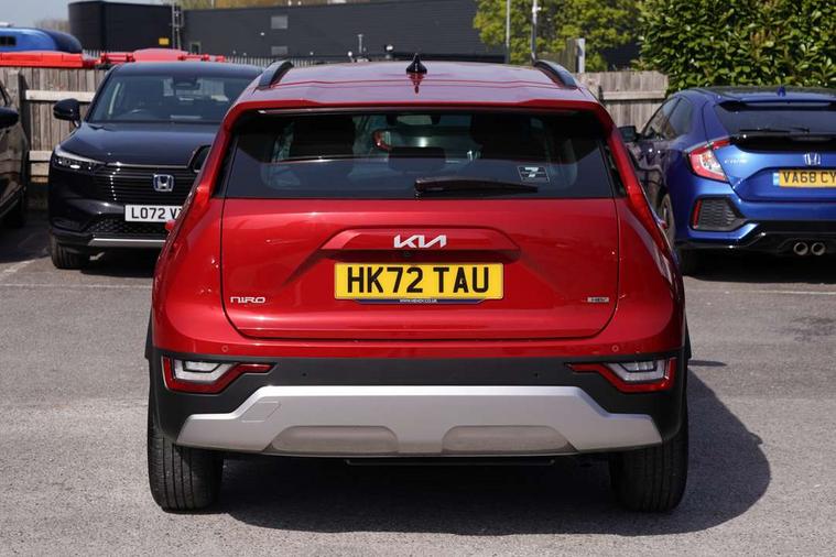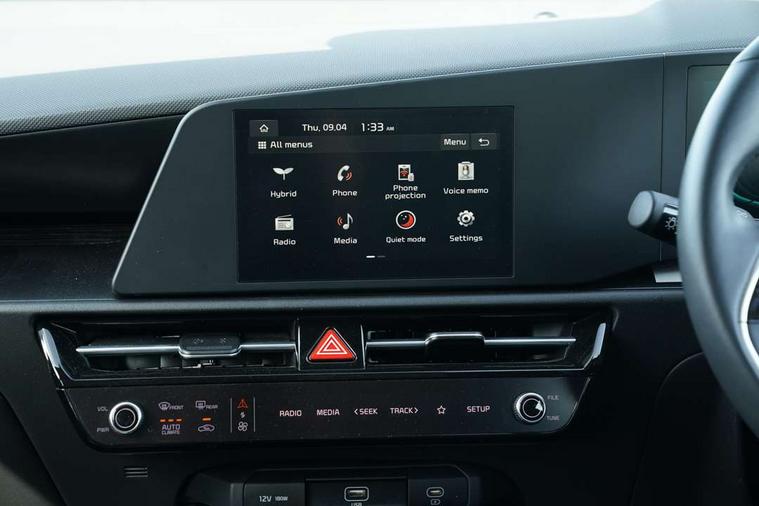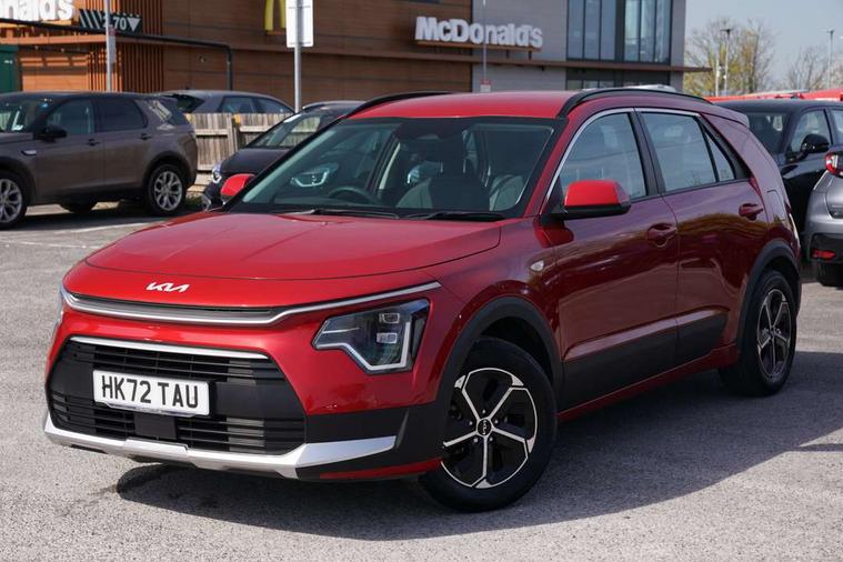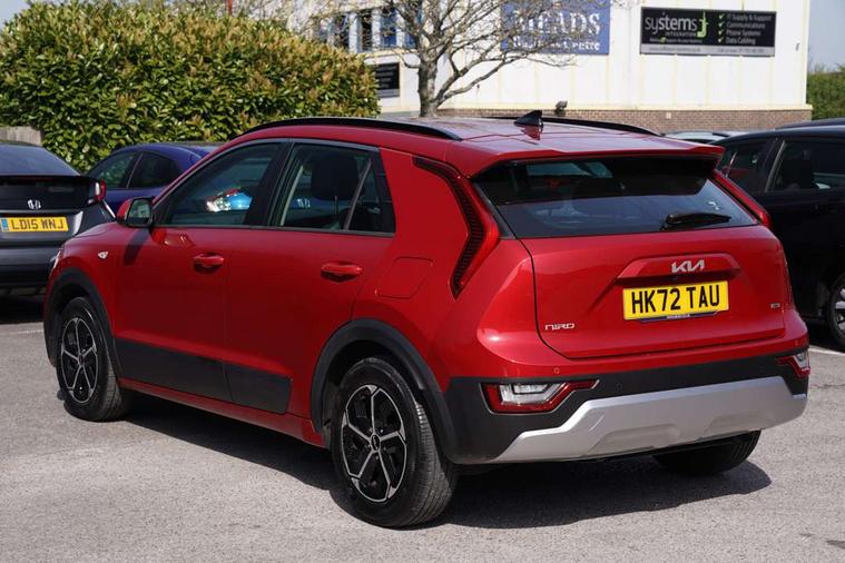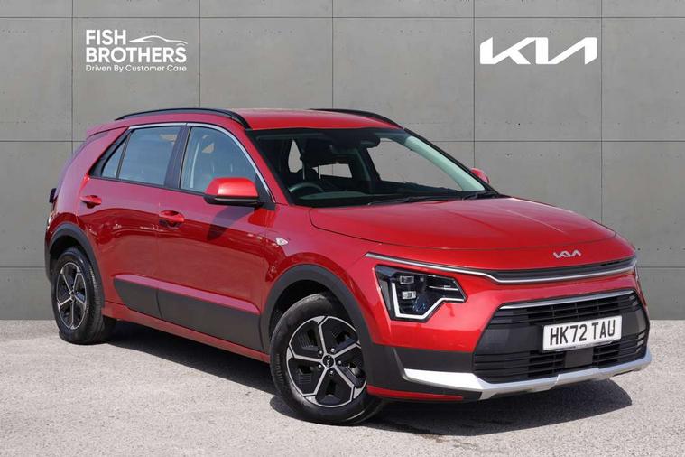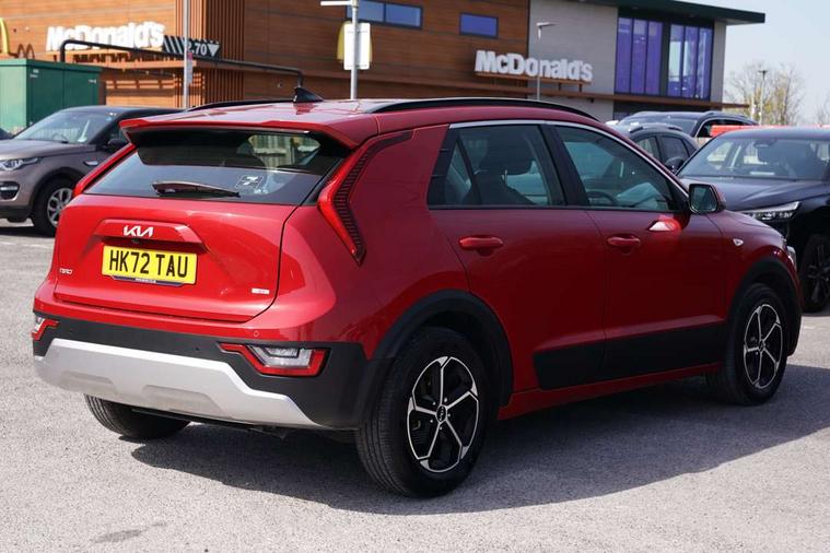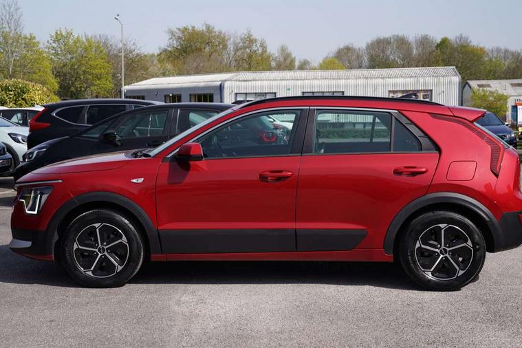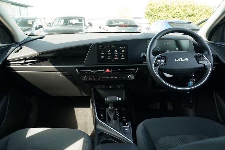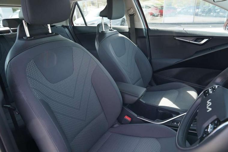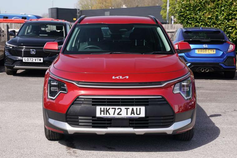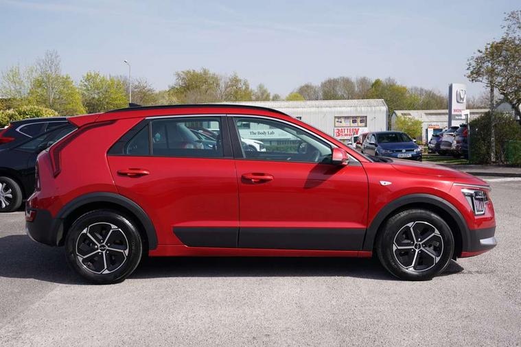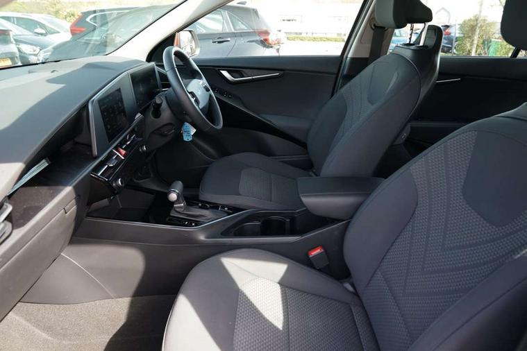 4.2" supervision colour cluster display, 8" touch screen, Adaptive smart cruise control function (SCC) with stop and go, Apple car play/Android Auto with voice control, Drive mode select (Eco, sport), E-call, Emergency stop signalling system, Forward Collision-Avoidance Assist (FCA) 1.5 - City/Pedestrian/Cyclist/Junction turning, Lane Following Assist (LFA), Lane keep assist, Motor driven power steering, Rear parking sensors, Reversing camera with dynamic guide lines, Speed limit assist, Tailgate, Trip computer with distance/fuel consumption/average speed, Sports H-Matic Automatic, 'Shark fin' mobile antenna, 2 type C USB ports on front seats, 2 USB ports in centre console including 1 type C, 6 speakers, Bluetooth with music streaming, DAB Digital radio, Steering wheel mounted controls, Acoustic windshield, All round electric windows with drivers auto up/down function, Auto dimming rear view mirror, Automatic defog system, Automatic headlight control system, Black embossed cladding, Body colour bumpers, Body colour door mirrors, Body colour exterior door handles, Dual LED headlights (low and high projection), Electric heated door mirrors, Front and rear silver skid plates, Heated rear window with timer, LED daytime running lights, LED rear combination lights, LED third brake light, Manual folding door mirrors, Rain sensor, Rear fog lights, Rear side wing doors, Rear spoiler, Rear wiper, Roof rails, Solar glass rear windows and tailgate, Solar glass windscreen, Welcome and follow-me home light functionality, Windscreen Washer Level Warning, 12V socket in front, 12V socket in luggage compartment, 3 seat bench in 2nd row, 60/40 split/folding 2nd row of seats, All-round height adjustable headrests, Artificial leather centre console storage box, Artificial leather steering wheel, Bulb overhead console, 2nd row and luggage lamp, Centre console cupholder, Cloth upholstery, Driver seat manual adjustment, Driver/passenger sunvisors with illuminated vanity mirrors, Dual zone automatic air conditioning, Front and rear door storage, H-Matic gear selection, Illuminated glovebox, Interior door lock/unlock function, ISOFIX Child seat top tethers and anchor fixings, Luggage area load cover, Luggage board, Metal paint interior door handles, Passenger seat height adjuster, Rear armrest, Single front passenger seat, Tilt/telescopic adjustable steering wheel, Towing pack - Niro, 3 point seatbelts on all seats, ABS, Automatic unlocking of doors in case of impact, Centre side front airbags, Curtain and side airbags, Drivers knee airbag, Dual shell horn, Electric parking brake with auto hold function, Electronic stability control, Front passenger airbag deactivation, Height adjustable front seatbelts, Hill start assist control (HAC), Manual rear child locks, Rear seat alert system, Traction control, Tyre pressure monitoring system, Alarm system and engine immobiliser, Deadlocks, Locking wheel nuts, Remote central door locking with fold away key, Visible vehicle identification number, Warranty - 7 Years/ 100, 000 miles, Graphite paint centre fascia, 16" alloy wheels, Tyre mobility kit,